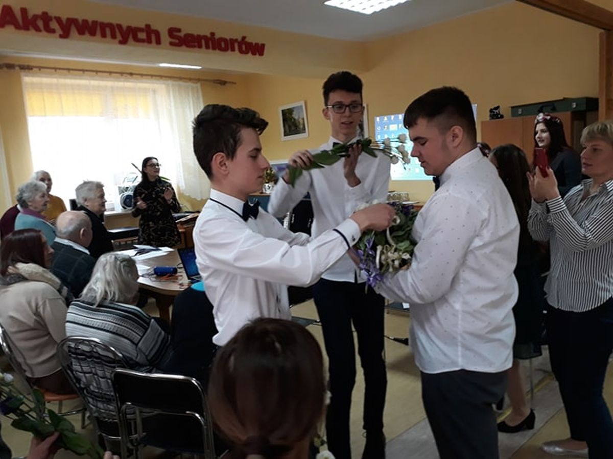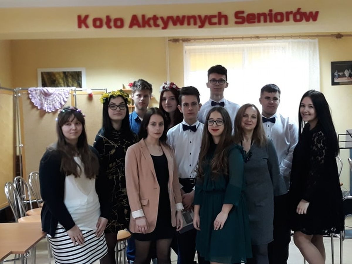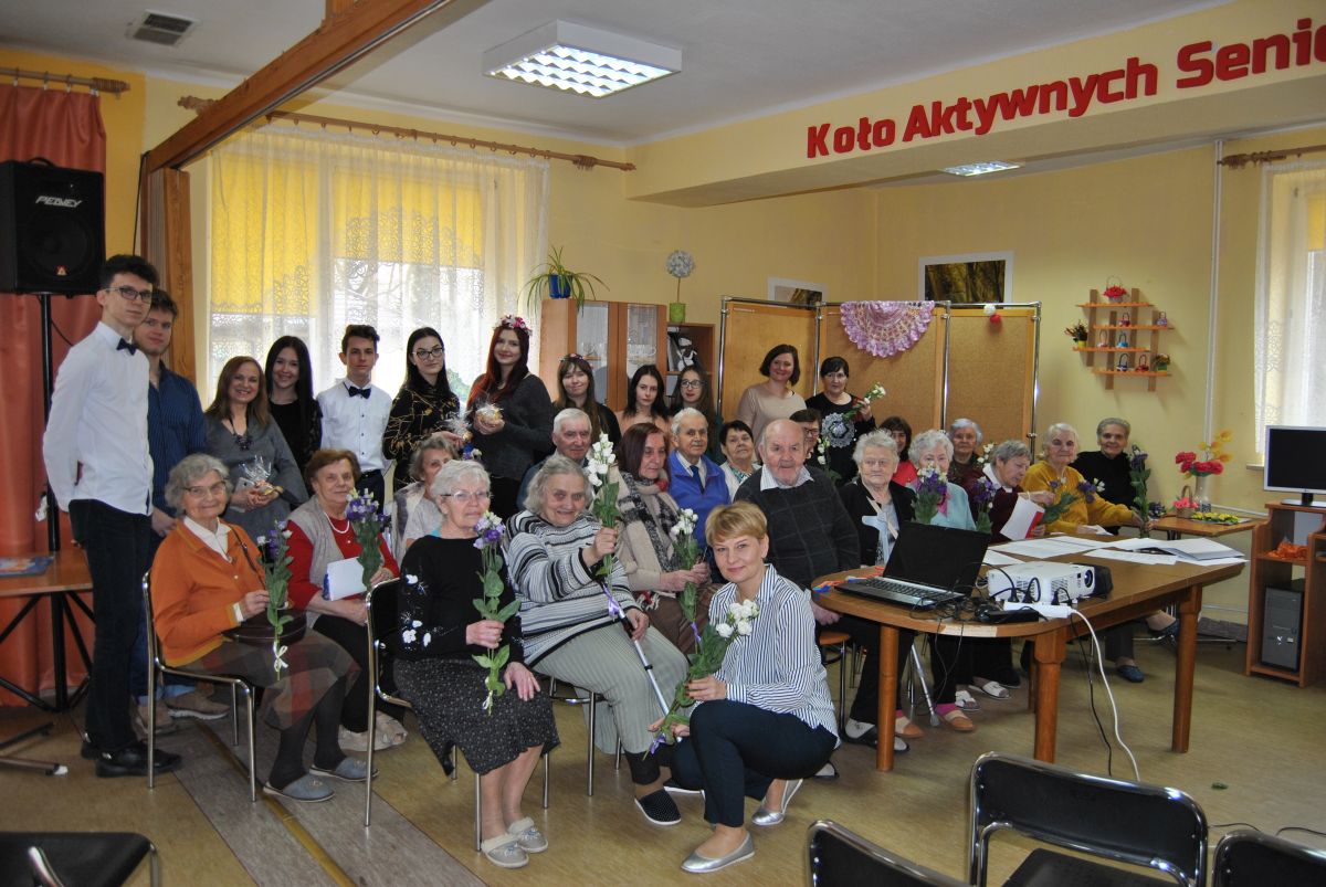9 marca z okazji Dnia Kobiet uczniowie z koła psychologicznego odwiedzili seniorów z Miejskiego Centrum Usług Socjalnych w Świdniku. Tematem spotkania było hasło : „Szanujmy wspomnienia”, które przeniosły uczestników w czas ich młodości. Uczniowie przygotowali dla seniorów dwa konkursy: krzyżówkę z hasłami związanymi z Dniem Kobiet oraz turniej „Jaka to melodia” z piosenkami obejmującymi okres od lat 30 do współczesności.