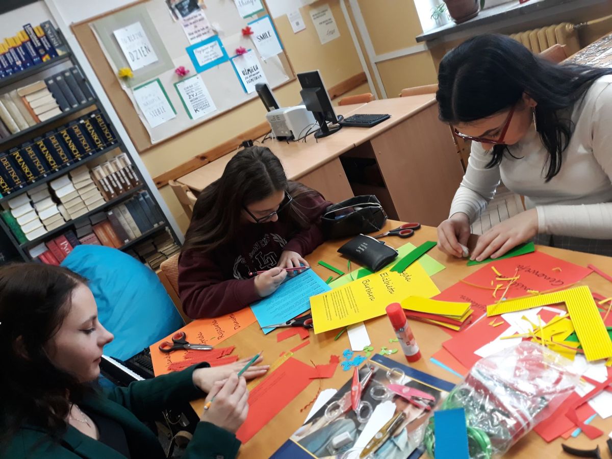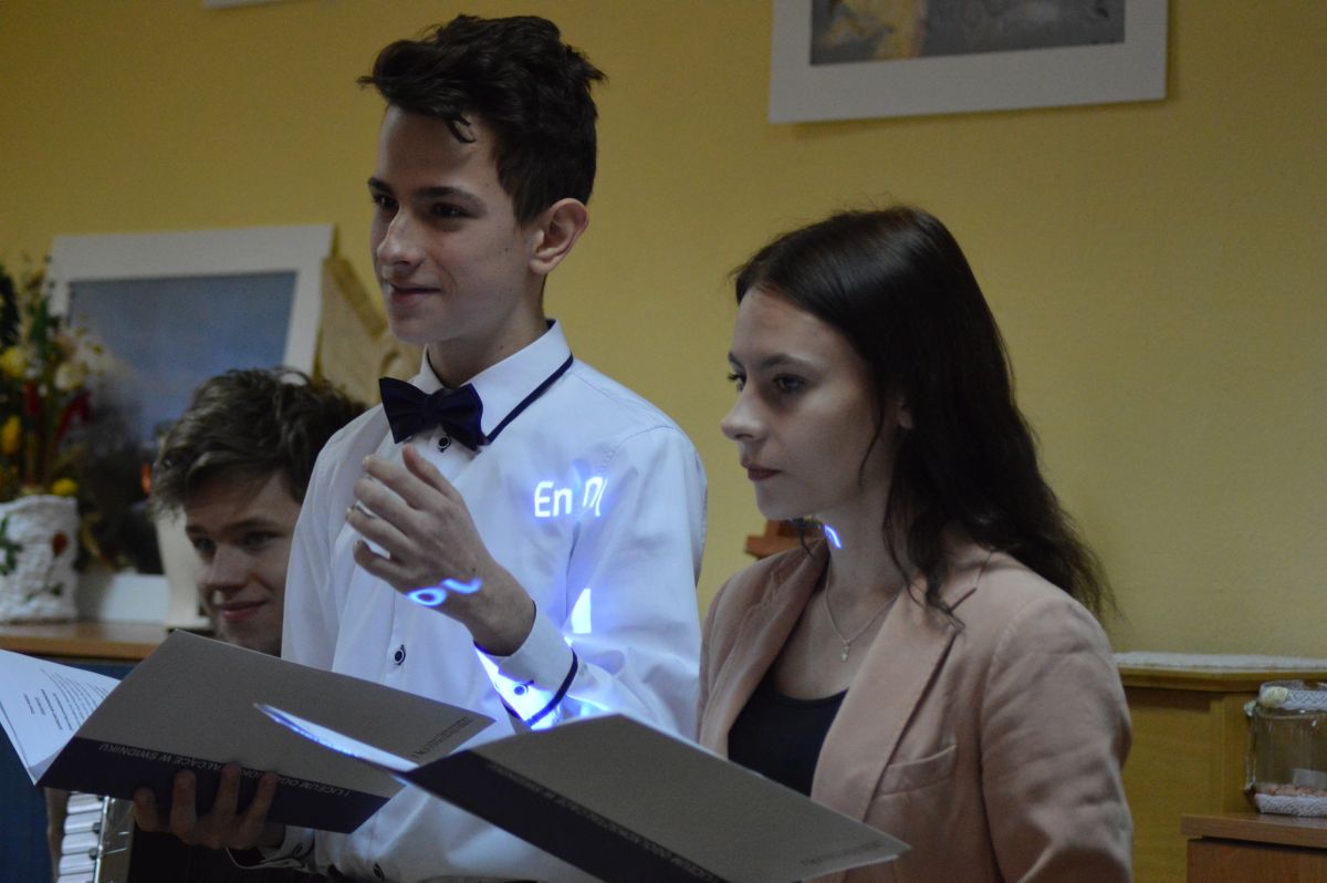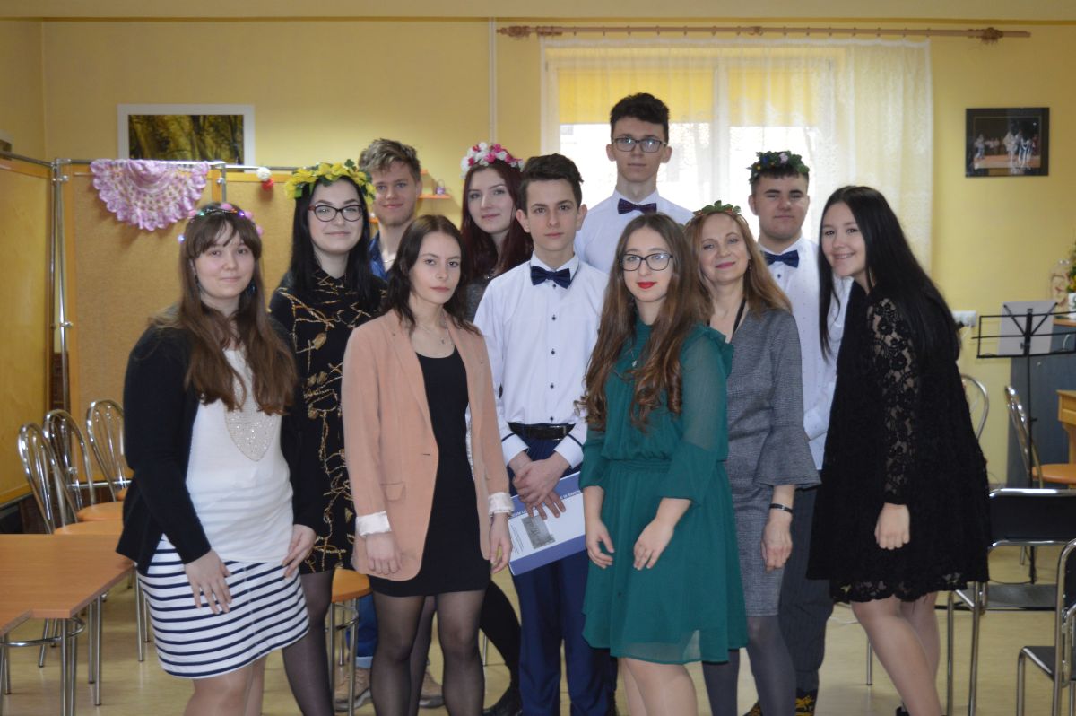 Spotkanie uświetniły piosenki w wykonaniu Laury Bogusz, Kasi Adamskiej i Oli Pawłowskiej a akompaniowali im: Kuba Broda na akordeonie oraz Laura Bogusz na ukulele. Na zakończenie tradycyjnie był słodki poczęstunek (domowe ciasto) przygotowany przez Anię Jemielnik, Gabrysię Łukaszuk, Olę Skainowską i Kubę Broda. Spotkanie prowadzili Krystian Kulawiuk i Gabrysia Łukaszuk a sprawami technicznymi zajęli się Szymon Więcławek oraz Kacper Pel. Panie zostały obdarowane pięknymi kwiatami oraz własnoręcznie wykonanymi spersonalizowanymi zakładkami do książek. Spotkanie dostarczyło zebranym dużo wzruszeń i radości. Opiekunem młodzieży była p. Kasia Paszko.