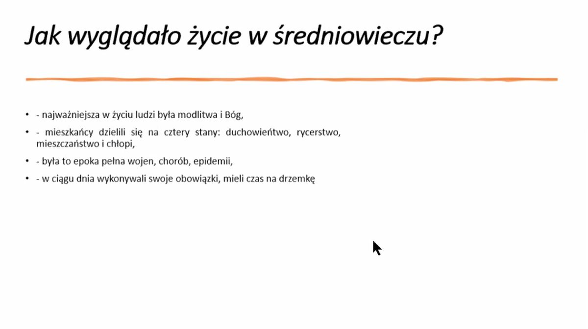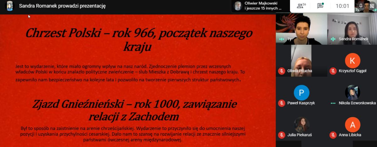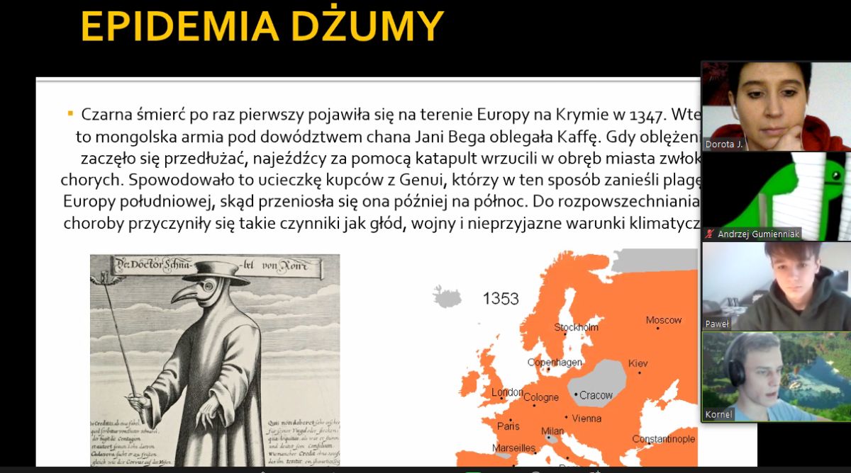 Młodzież z klas 1a i 1b pod opieką swojej nauczycielki p. D. Jaśkowskiej pracowała na lekcjach języka polskiego nad wstępem do średniowiecza poprzez metodę interaktywnego projektu. Projekt miał przybliżyć czasy dominacji Kościoła w Europie, pomóc zrozumieć codzienne troski zwykłych ludzi, poznać złożoność myśli filozoficznej. Uczniowie do opracowania mieli takie zagadnienia, jak życie codzienne w wiekach średnich, historia, ustrój feudalny, szkolnictwo, kultura, czy charakterystyka rycerstwa.