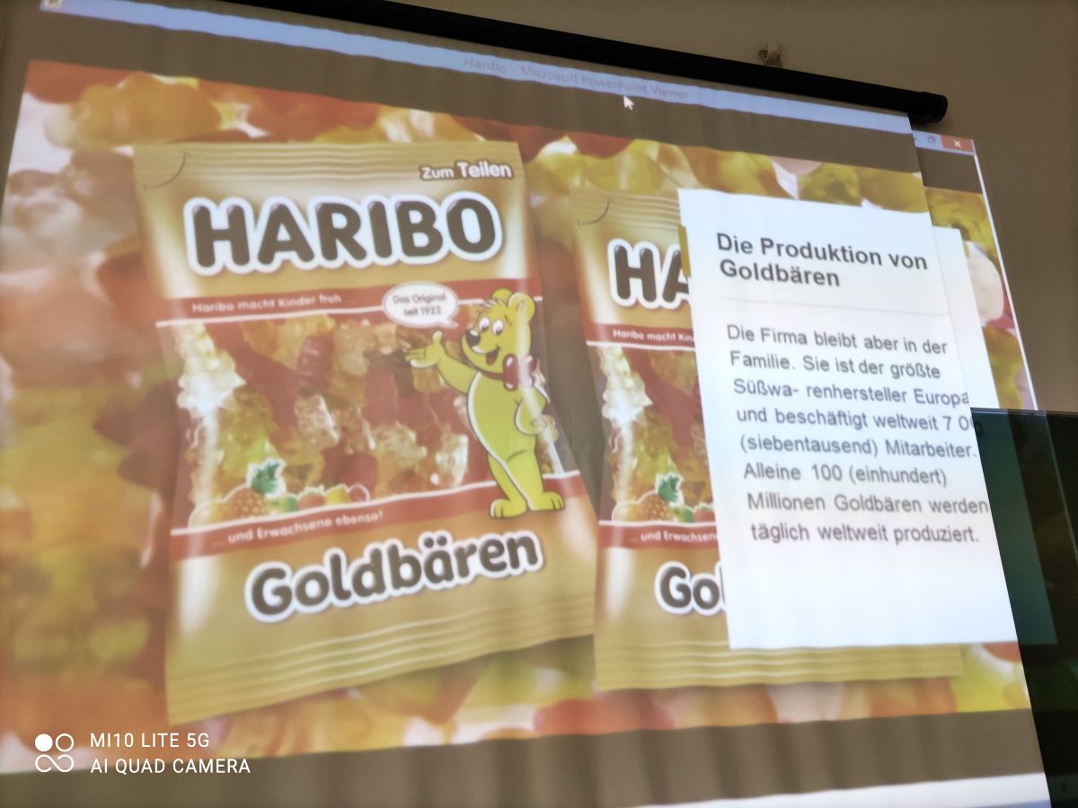 Wymyślił je cukiernik Hans Riegel, a nazwę swojego przedsiębiorstwa złożył z pierwszych liter swojego imienia, nazwiska oraz miasta, w którym się urodził – Bonn ( Ha-Ri-Bo). Były prezentacje, quizy, kahoot, nauka słówek, praca z tekstem oraz słodkie nagrody.