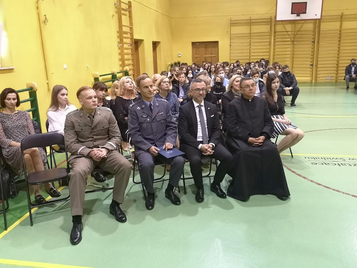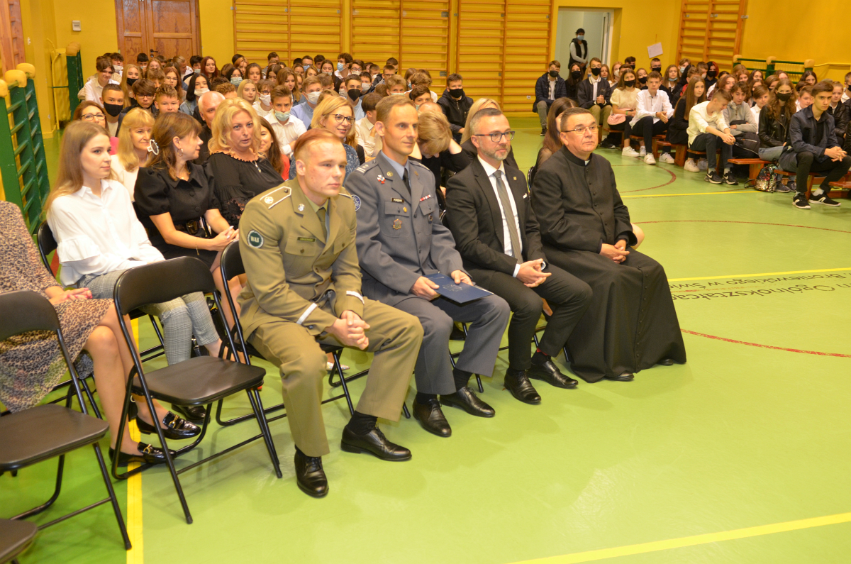 Rok szkolny 2021-2022 został zainaugurowany w trybie stacjonarnym. I to jest najważniejsza informacja z dnia dzisiejszego. 1 września dyrekcja i grono pedagogiczne powitali w murach „Bronka” uczniów. Gośćmi specjalnymi uroczystości byli Starosta Powiatu Świdnickiego p. Łukasz Reszka, proboszcz parafii pod wezwaniem Chrystusa Odkupiciela ksiądz Piotr Stańczak oraz reprezentujący Regionalne Centrum Informatyki w Krakowie podpułkownik Jerzy Porębiak i student wydziału cybernetyki Wojskowej Akademii Technicznej podchorąży Krasowowski.