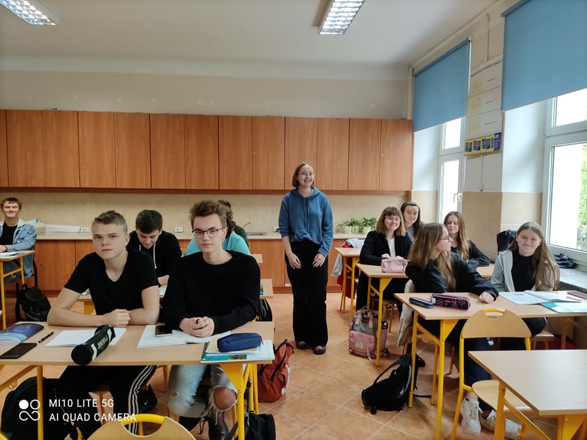 W miniony piątek, 24 września naszą szkołę odwiedziła wolontariuszka z Niemiec. Malin Szymlek przyjechała na pół roku do SP3, aby wspierać nauczanie języka niemieckiego jako native speaker. Opiekę nad nią sprawuje pani M. Stępień, nauczycielka naszego LO. Uczniowie klas trzecich mieli okazję sprawdzić swoje umiejętności językowe.