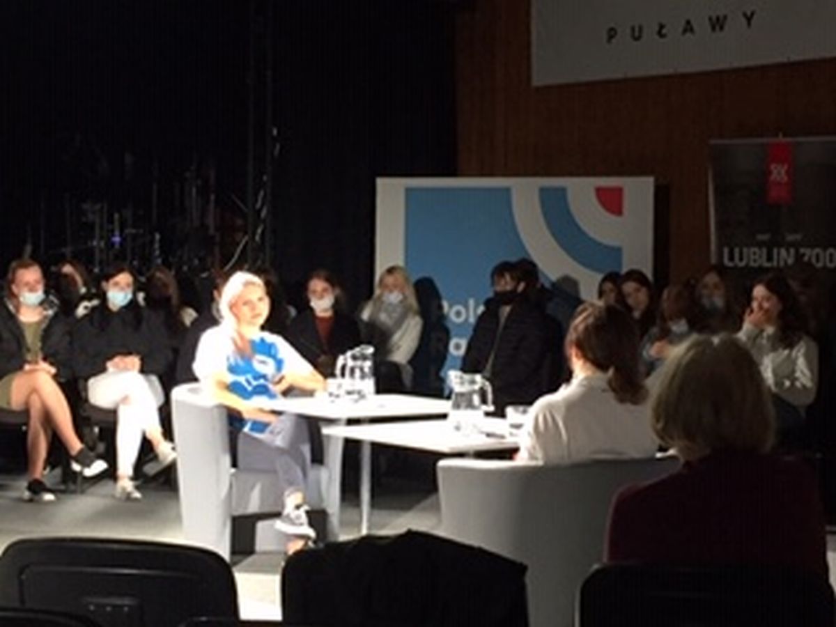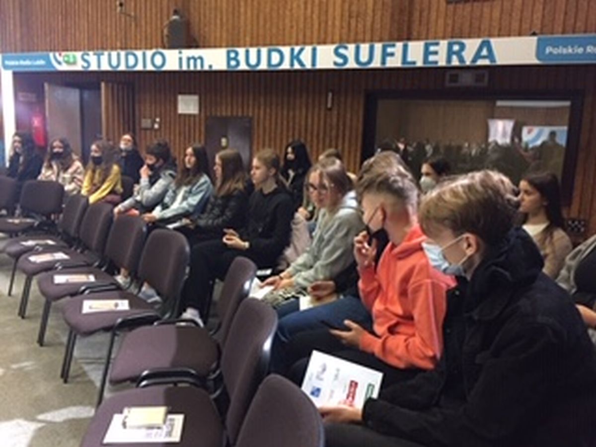 Uczniowie klasy Ib oraz część uczniów klas drugich, którzy wybrali język polski na poziomie rozszerzonym, spędzili pracowity dzień w Studiu im. Budki Suflera w Radiu Lublin. Młodzież uczestniczyła w warsztatach reportażu, które prowadziły p. Katarzyna Kobylarczyk oraz p. Dorota Brauntsch. Pierwsze z nich dotyczyły języka reportażu, jego specyfiki gatunkowej, inspiracji i źródeł. Dotykały także problemu współczesnych mediów czyli fake newsów i postprawdy. Stanowiły one także okazję do przyjrzenia się warsztatowi reporterskiemu p. Katarzyny Kobylarczyk, która jest laureatką dziennikarskich nagród Zielonej Gruszki i „Za różnorodnością, przeciw dyskryminacji”. Za książkę Strup. Hiszpania rozdrapuje rany otrzymała Nagrodę im. Ryszarda Kapuścińskiego za reportaż literacki oraz Kryształową Kartę Polskiego Reportażu.