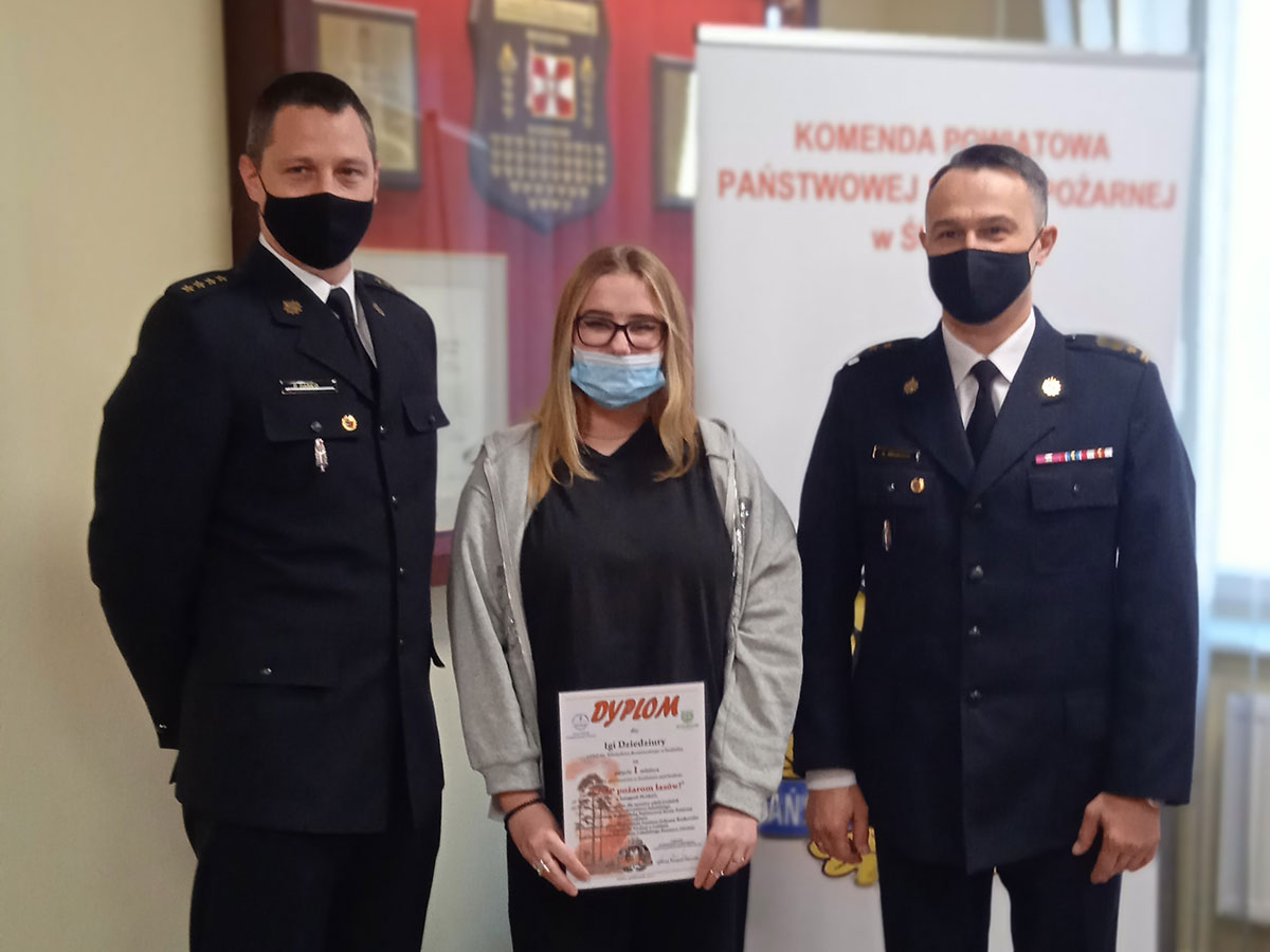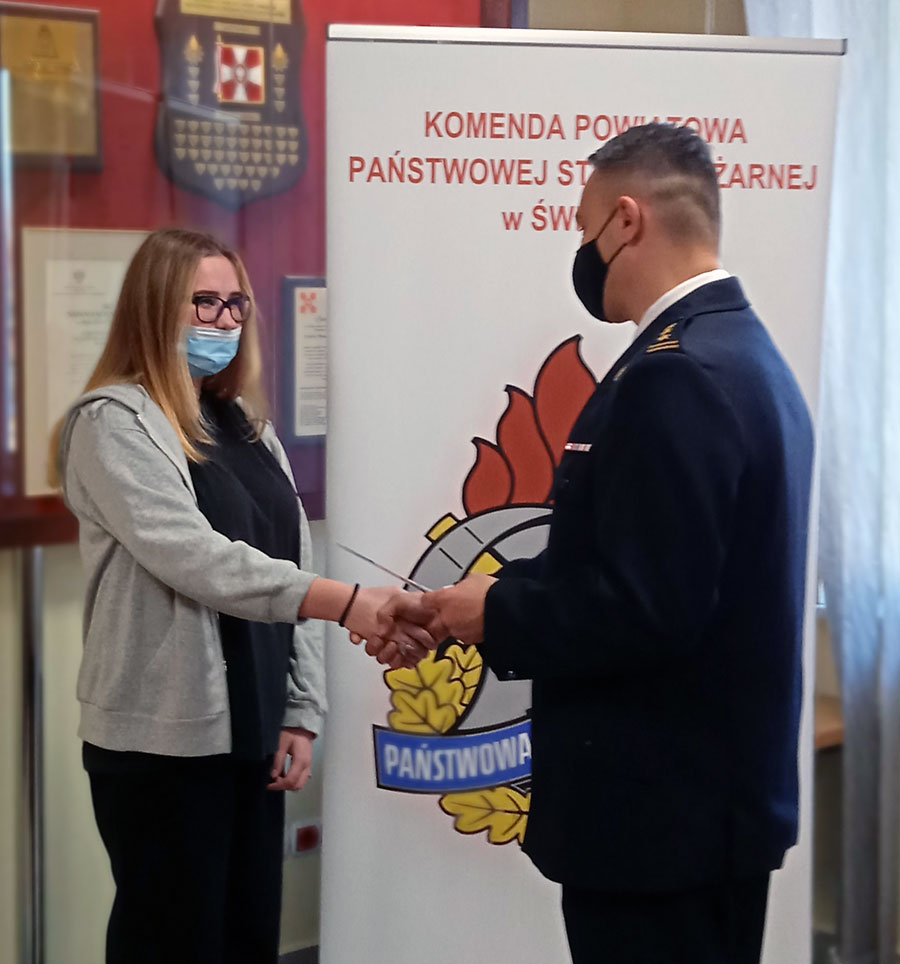 Laureatką I etapu została Iga Dziedziura i reprezentowała powiat świdnicki na etapie wojewódzkim. 10 listopada odbyło się przekazanie dyplomu, statuetki i innych nagród rzeczowych w Komendzie Powiatowej Straży Pożarnej w Świdniku przez Komendanta Powiatowego PSP w Świdniku st. bryg. mgr inż. Adama Niemczyka. Opiekunką uczennicy jest nauczycielka edukacji dla bezpieczeństwa p. Anna Starzec.