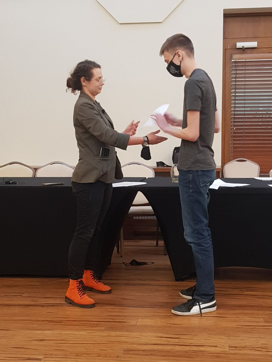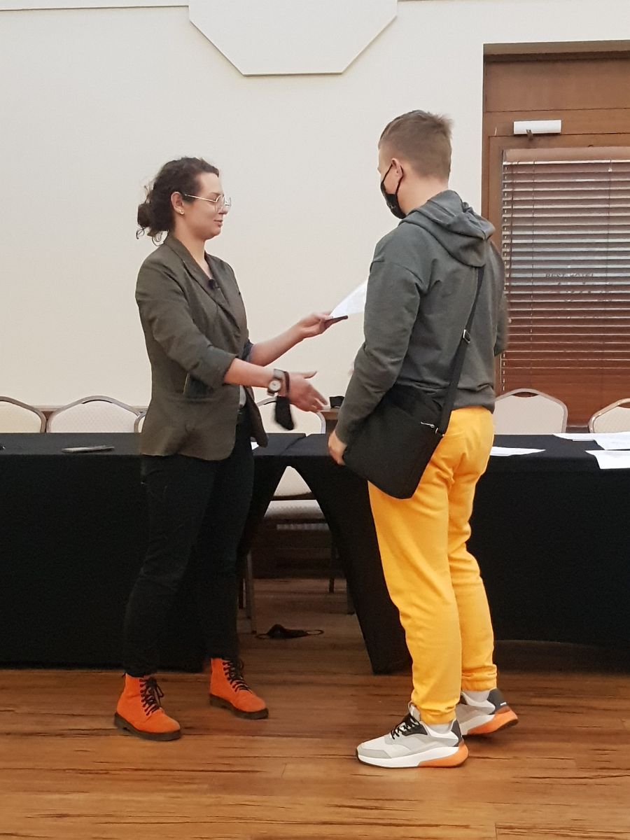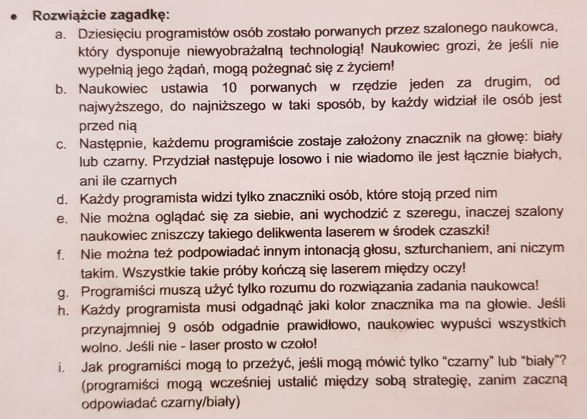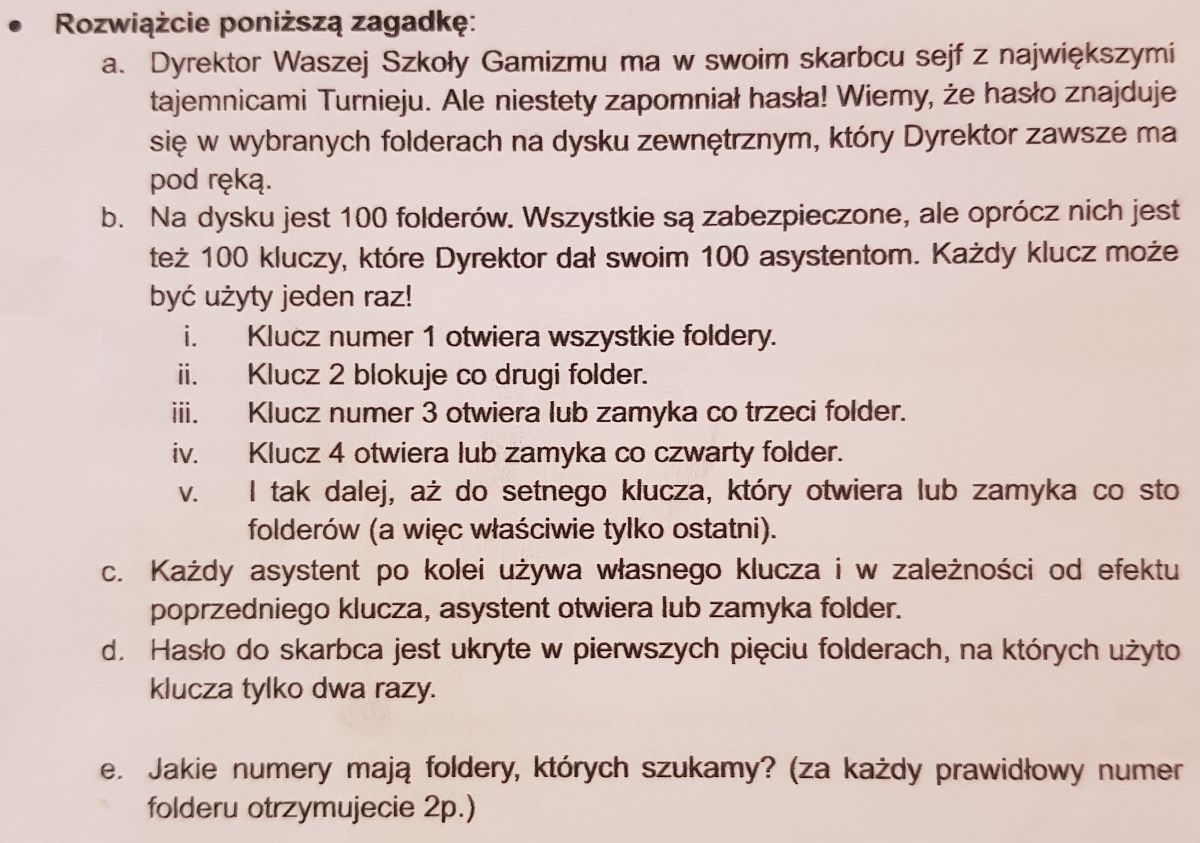 Kiedy już emocje opadły i wybiła godzina 13:05 rozpoczęły się warsztaty pracy w grupie, co było największym wyzwaniem, jakie dotąd spotkało naszych uczniów. Mieli jedną godzinę na rozwiązanie wielu zagadek matematycznych, logicznych, graficznych, sprawdzających ich wyobraźnie, intuicje oraz co najważniejsze, zdolność pracy w grupie. Zespół z "Bronka" pokazał niesamowitą klasę! Ze 100 punktów, które mogli zdobyć podczas ostatniej części zdobyli aż 88! Jest to niesamowity wynik biorąc pod uwagę trudność zagadek. Nasi uczniowie zdobyli 2 miejsce uzyskując ostatecznie 164 punkty! Dodajmy, że byli bardzo blisko miejsca pierwszego, zabrakło im zaledwie 5 punktów! Tym samym awansowali do trzeciego etapu i już 6 grudnia wyjeżdżają na 5 dniowe warsztaty z projektowania gier podczas których, oprócz zdobywania wiedzy, pracy nad swoją grą przygodową "Ardena", będą zdobywali kolejne punkty!