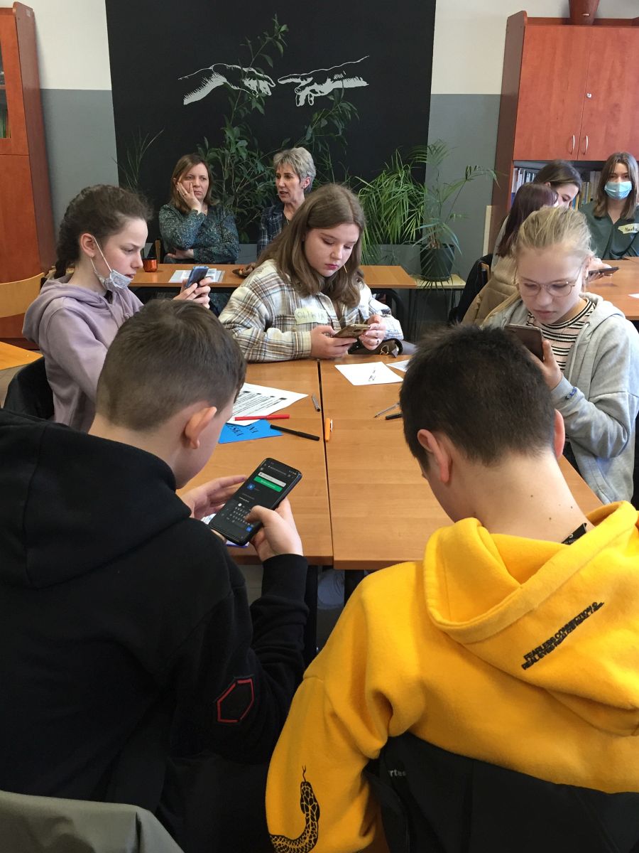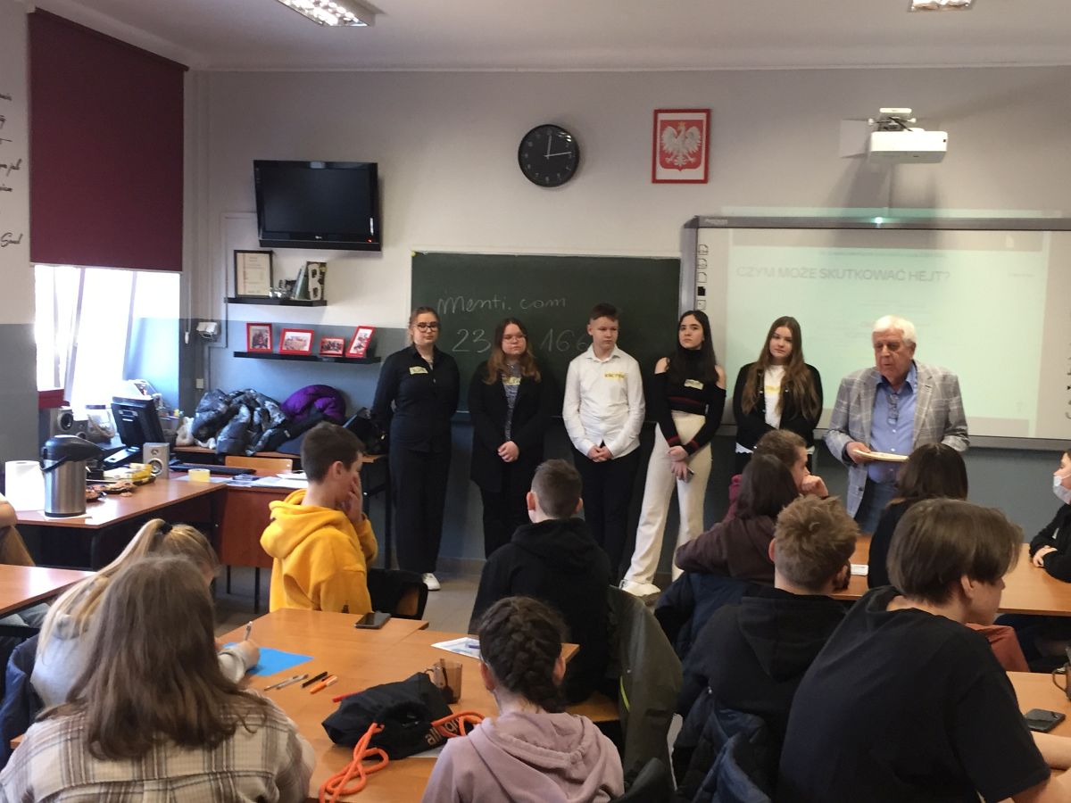 Uczniowie prowadzący warsztaty: Oliwia Blacha, Iga Dziedziura, Kacper Kowalczyk, Zuzanna Sola, Wiktoria Szymanek oraz Aleksandra Wójtowicz.