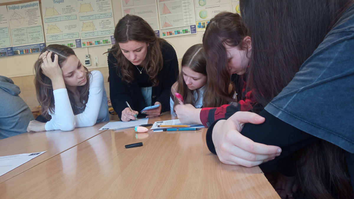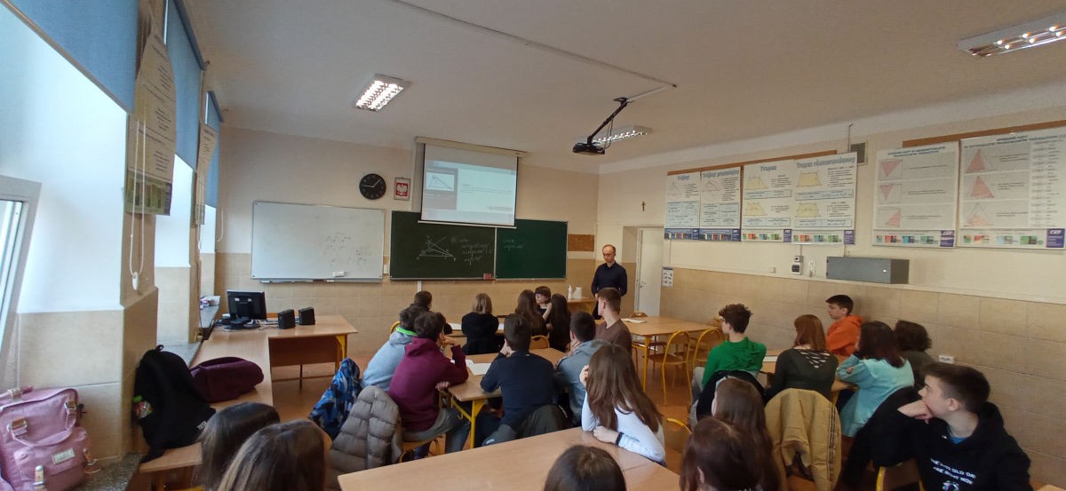 Na warsztatach skupiliśmy się na zagadnieniach związanych z dowodzeniem podzielności liczb, zastosowaniem własności trójkątów w rozwiązywaniu zadań z geometrii oraz rozwiązywaniu zadań tekstowych. Warsztaty wraz z nauczycielami p. M. Noskowicz i p. J. Jaśkowskim prowadzili uczniowie: Zuzanna Daca 3A3, Igor Jagiełło 3A3, Zuzanna Nóżka 3A3, Roksana Wrona 3A3, Szymon Więcławek 3A3, Natalia Gryta 3C3, Anna Pawlak 2A, Anna Libicka 2A, Karolina Kanclerz 2A, Julia Wiącek 2A, Maciej Maciocha 2A, Daniel Gębal 2A, Filip Klusek 2A.