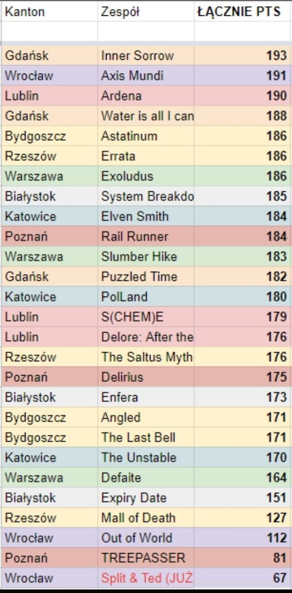 Na zakończenie wyjazdu drużyny brały udział w losowej grze. Musiały w ciemno rozdysponować 100 monet na 3 licytowane przedmioty, które wpływały na ogólną punktację. W jej wyniku nasz zespół otrzymał 5 pkt. W klasyfikacji generalnej wśród 27 zespołów Ardena znajduje się na trzecim miejscu.