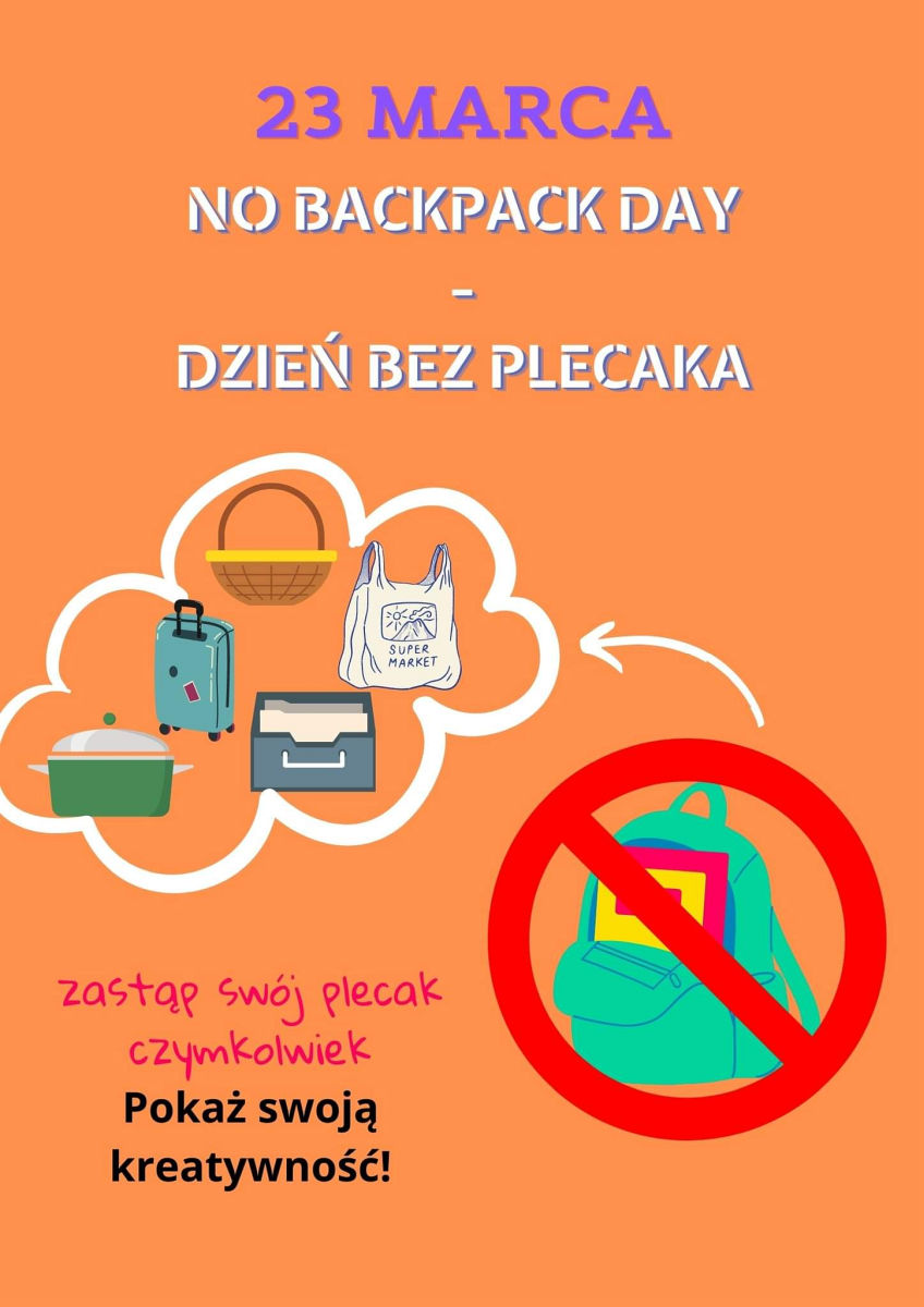 Dzień bez plecaka opanował także naszą szkołę. To kreatywne wyzwanie i zabawa, w której uczniowie i nauczyciele, przychodzą do szkoły jak zwykle, przynosząc ze sobą to co potrzebne na lekcjach, ale nie mogą używać plecaka ani torby. Musza wykazać się inwencją.