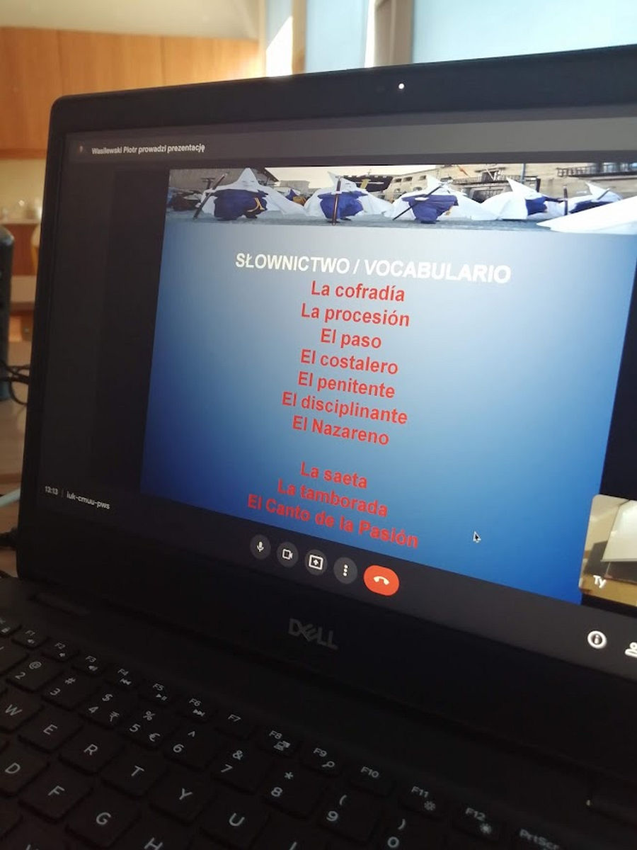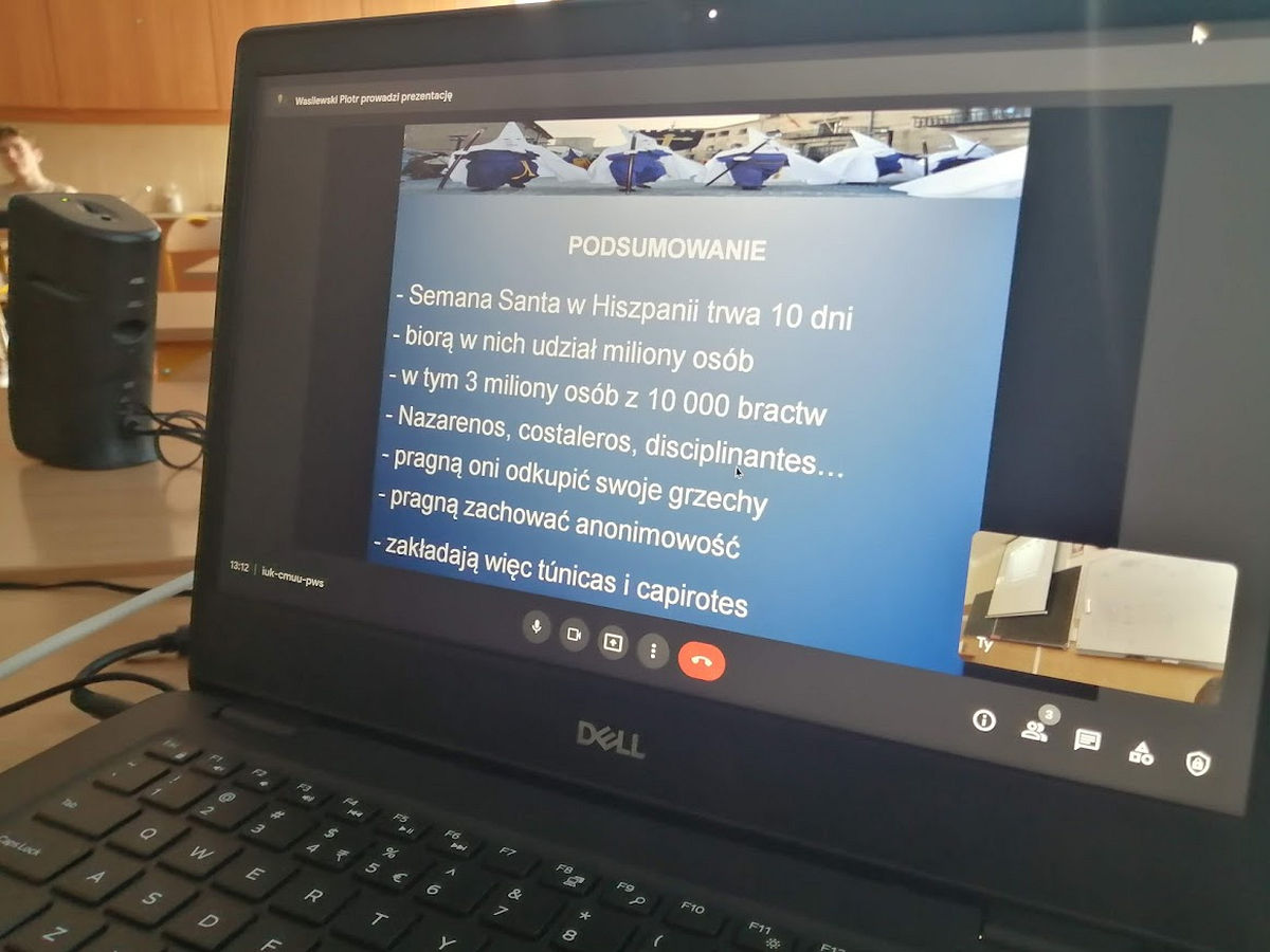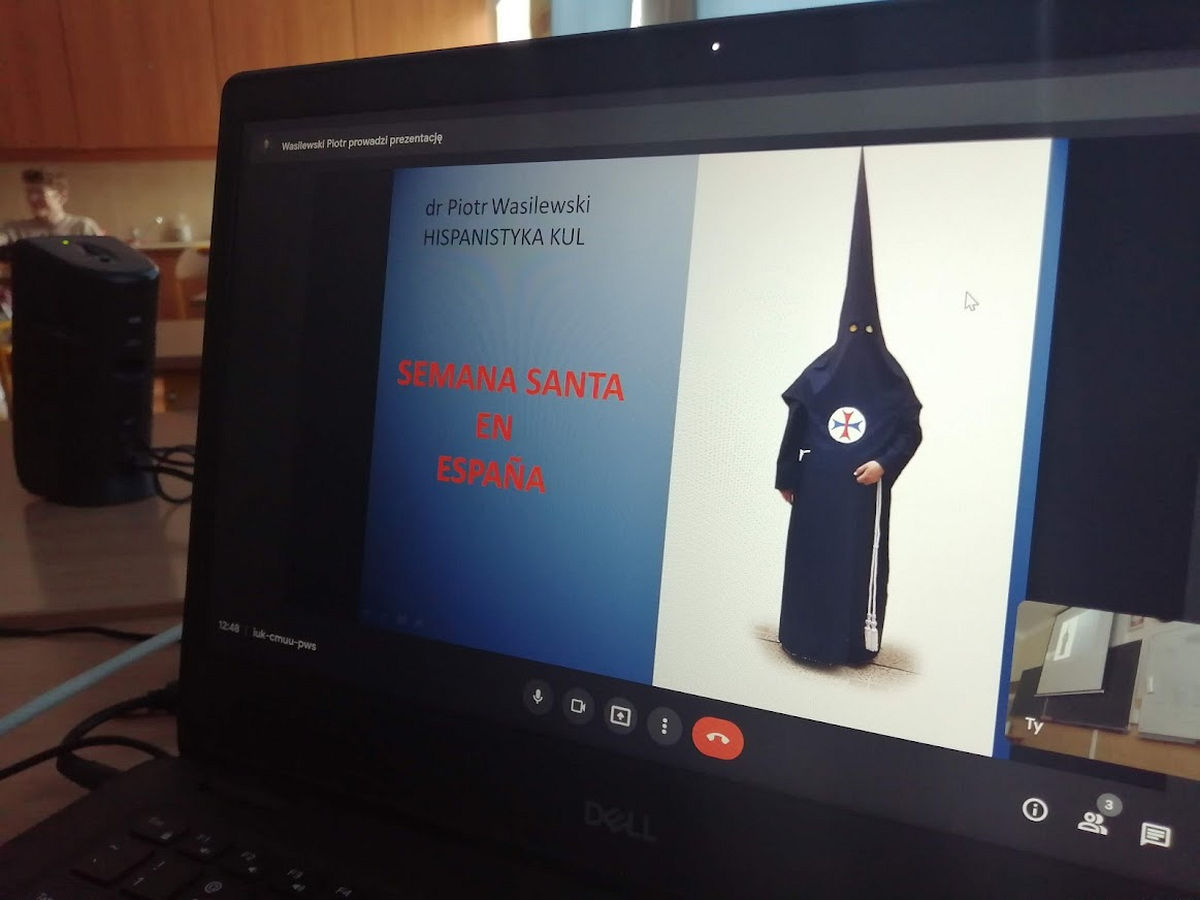22 kwietnia z ciekawą prezentacją na temat obchodów Wielkiego Tygodnia w Hiszpanii wirtualnie odwiedził nas dr Piotr Wasilewski, Wykładowca Akademicki KUL w Katedrze Akwizycji i Dydaktyki Języków. Barwne zdjęcia, interesujące filmy oraz informacje sprawiły, że na chwilę mogliśmy przenieść się do Hiszpanii i poczuć klimat patetycznych obchodów Semana Santa.