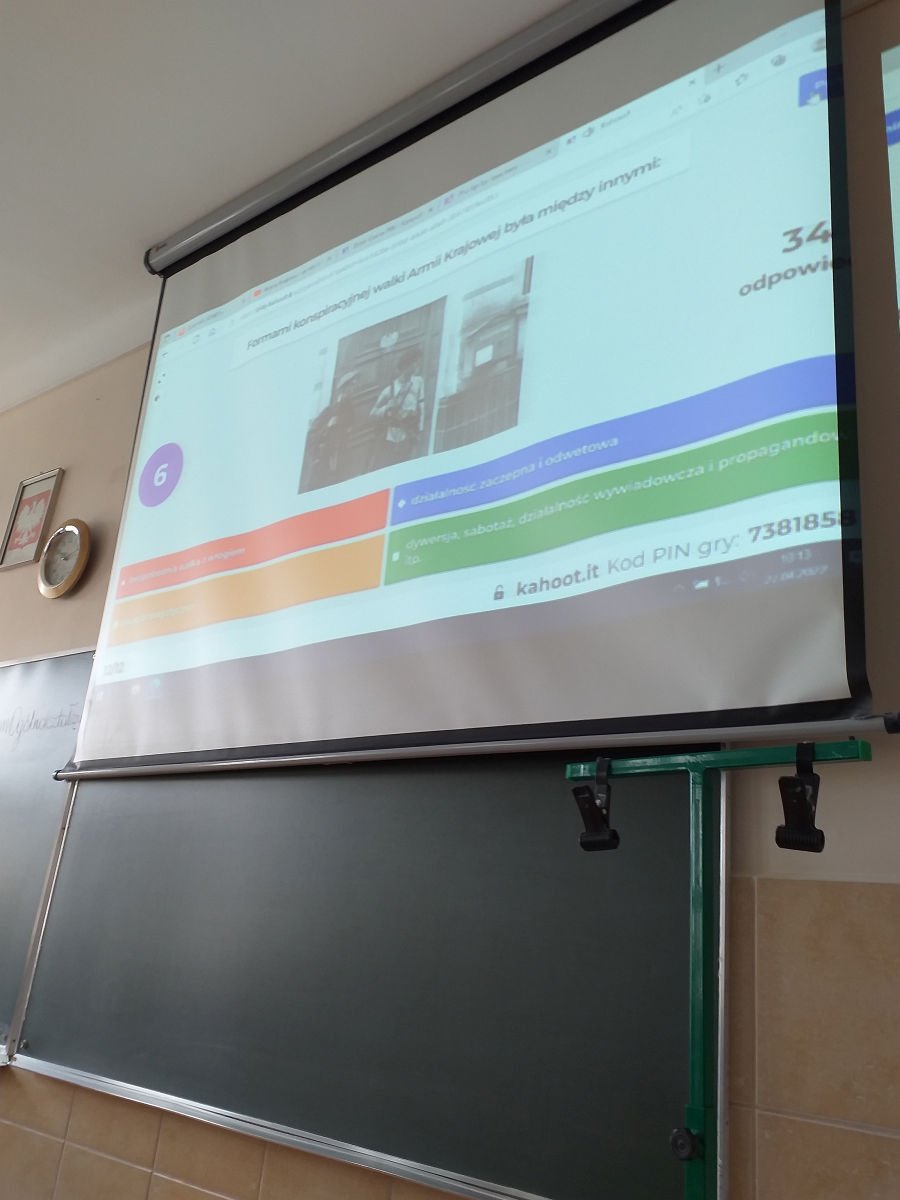 Z naszego zaproszenia skorzystali uczniowie z Trawnik, Oleśnik oraz SP 7 w Świdniku- którą reprezentowała klasa siódma. W drugiej części spotkania rozegrany został powiatowy konkurs internetowy dotyczący historii Armii Krajowej w związku z 80 rocznicą jej powstania. Konkurs został rozegrany w dwóch kategoriach wiekowych. W kategorii szkół podstawowych I miejsce zajęły ex aequo Emilia Okoń i Edyta Harasim z SP 7, drugie miejsce zajął Kacper Sierpień z SP z Trawnik. W kategorii uczniowie liceum I miejsce zajął Maciek Miszkurka, II Gabriela Stodulska, III Aleksandra Kwitek. Zwycięzcy poszczególnych kategorii otrzymali nagrody ufundowane przez Oddział Lubelski IPN. Bardzo dziękujemy pani dr Katarzynie Zawadce z IPN za zaszczycenie nas swoją obecnością i za poprowadzenie lekcji. Dziękujemy wszystkim gościom, którzy wzięli udział w naszych zajęciach i już teraz zapraszamy do udziału w kolejnym spotkaniu.
