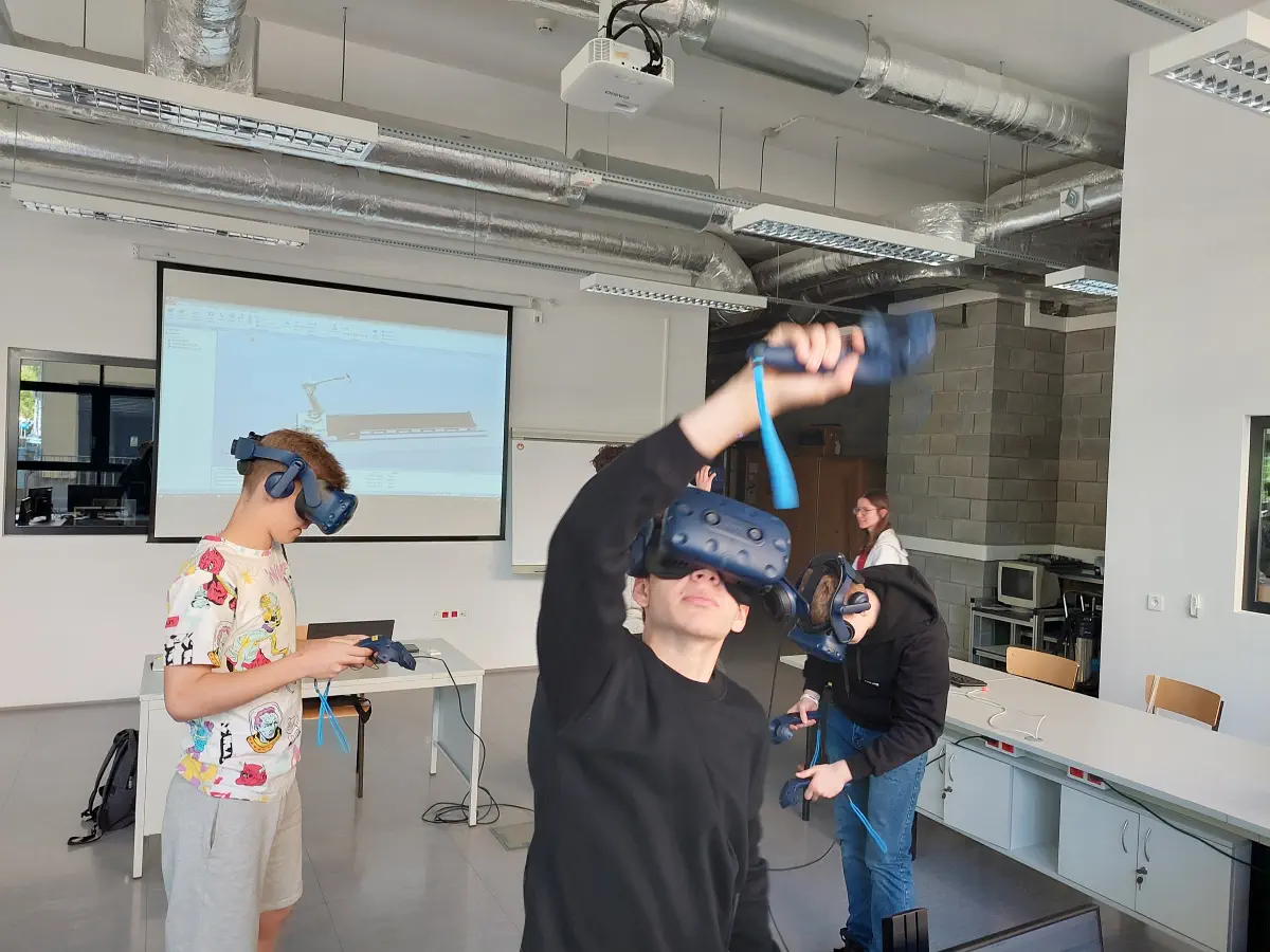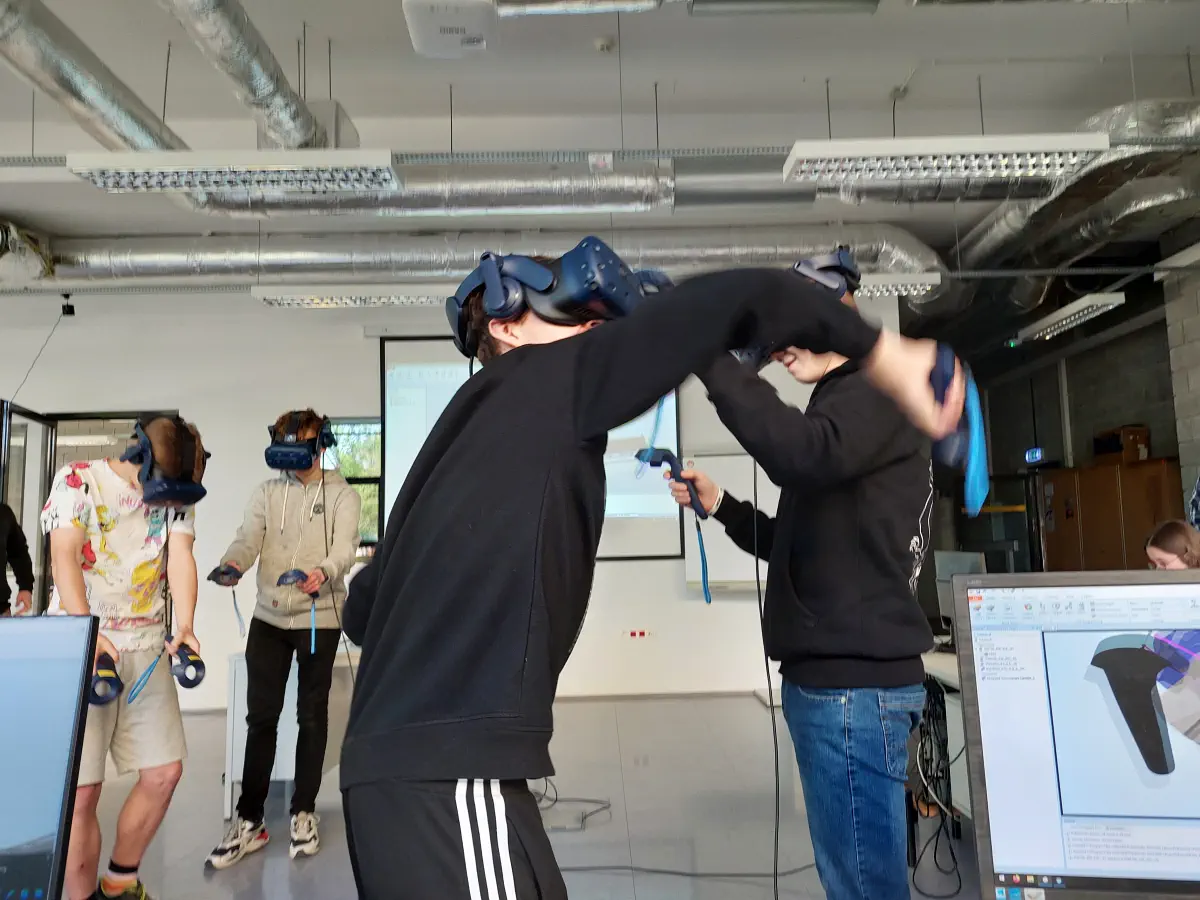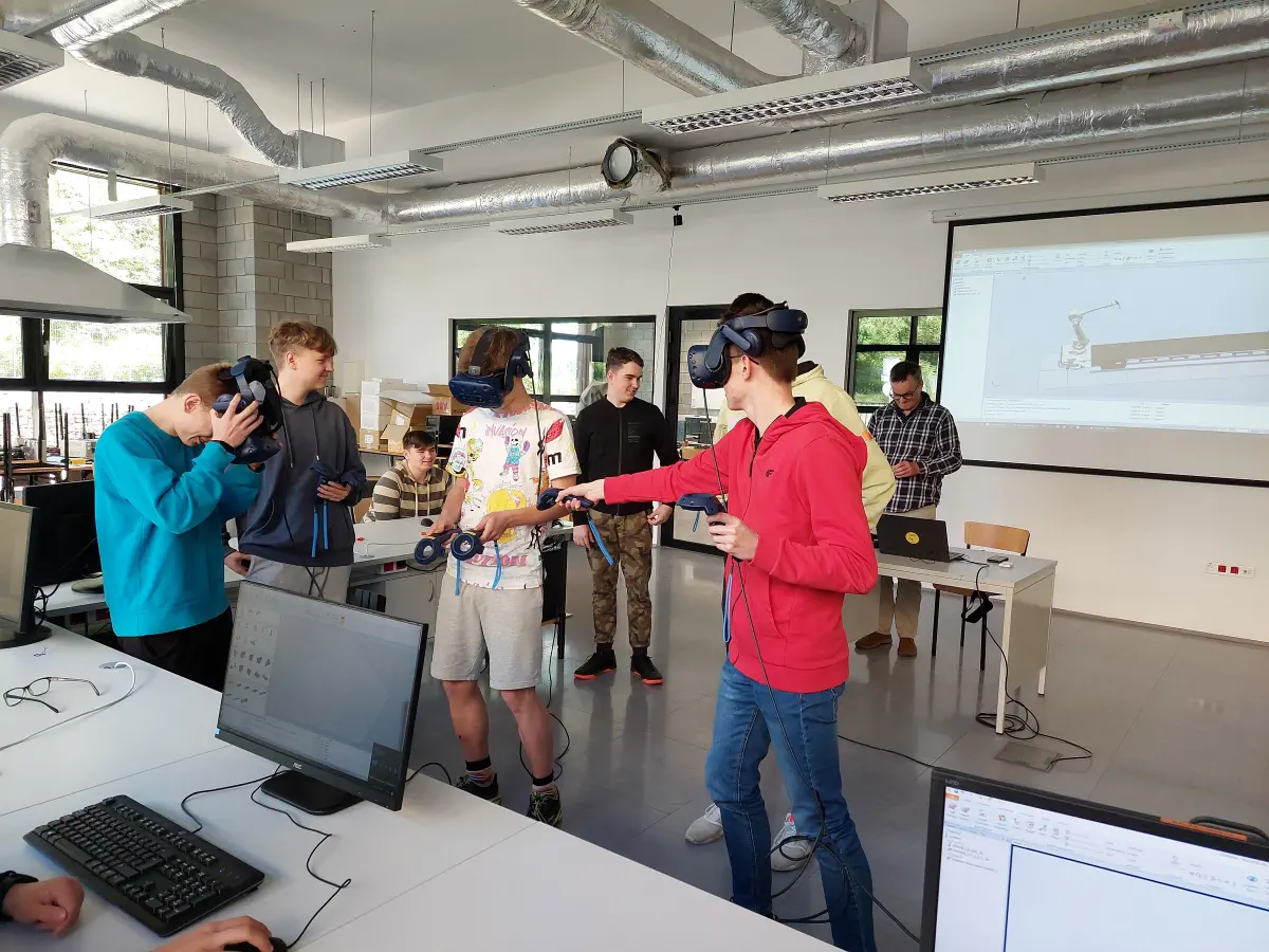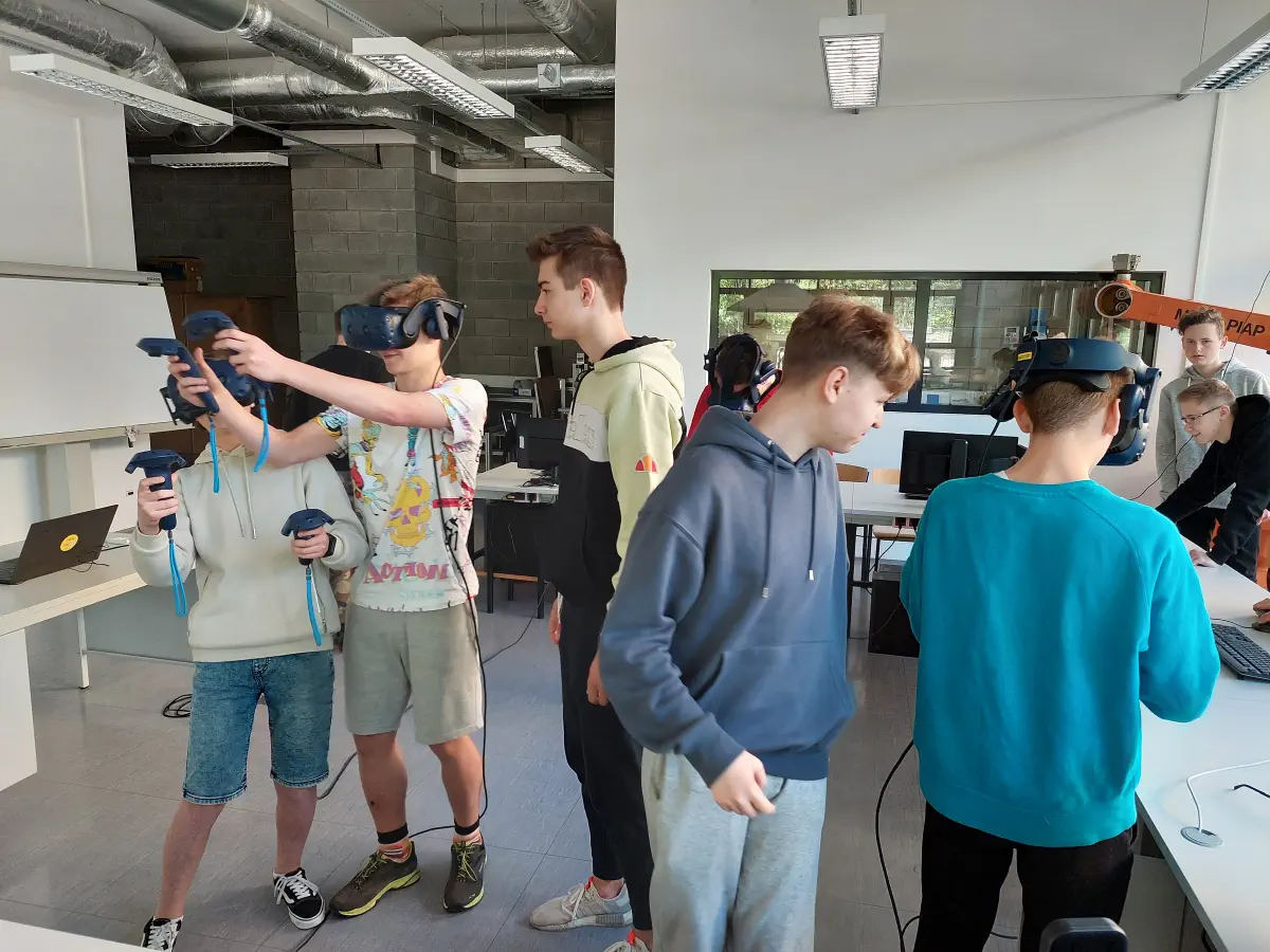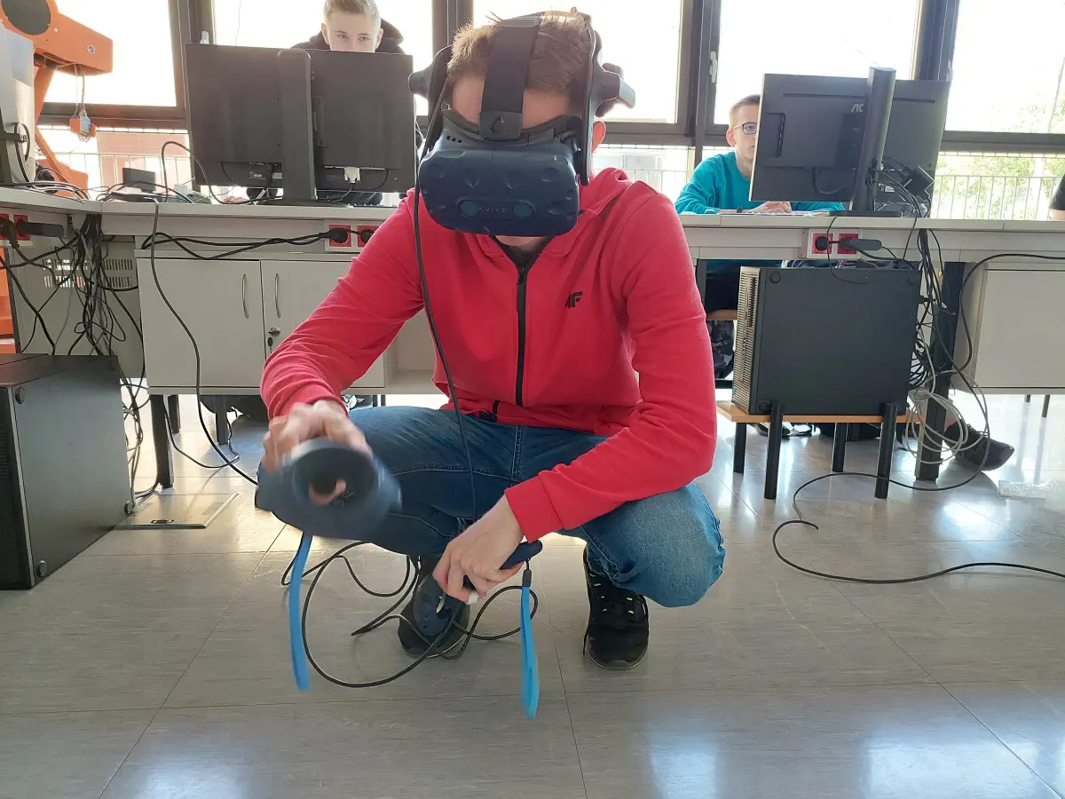 Podczas warsztatów licealiści zapoznali się z obsługą programu Robot Studio, a także mieli przyjemność obejrzenia swoich prac w goglach VR.