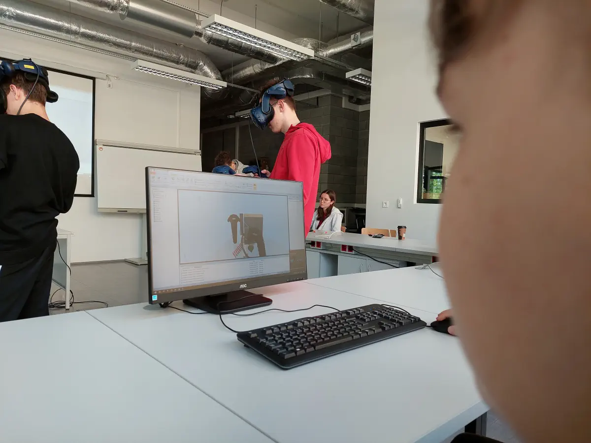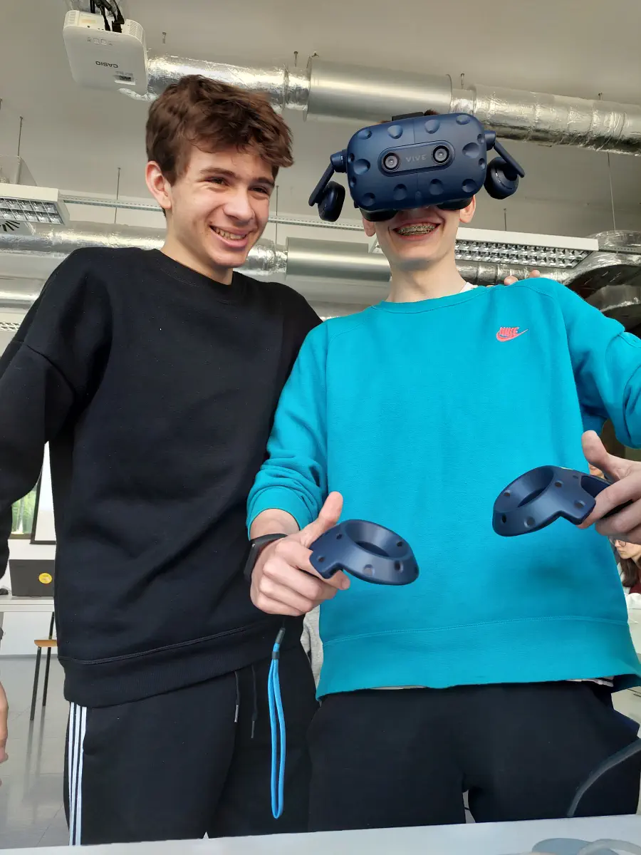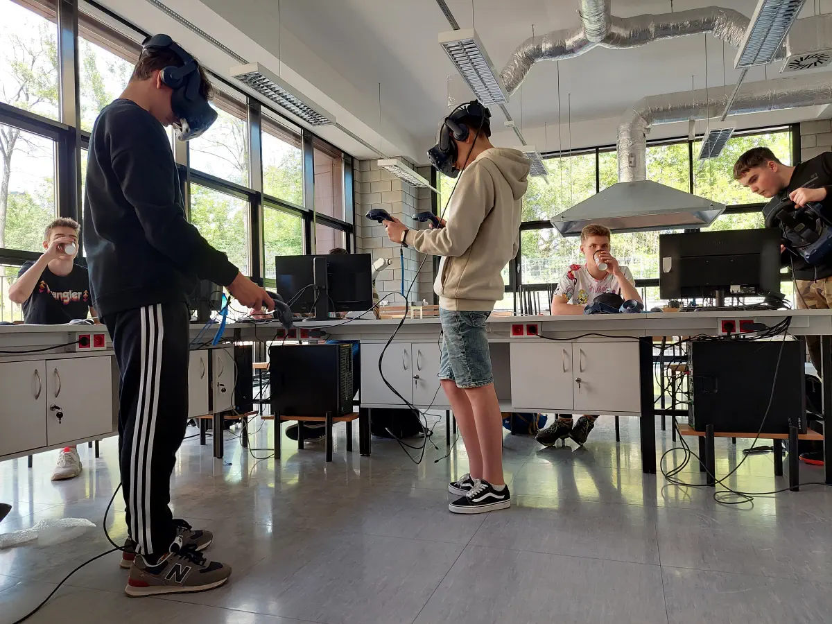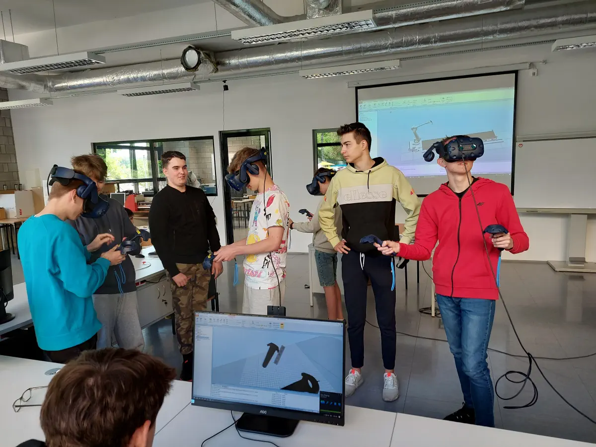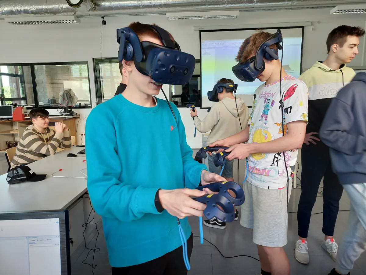 Podczas warsztatów licealiści zapoznali się z obsługą programu Robot Studio, a także mieli przyjemność obejrzenia swoich prac w goglach VR.
