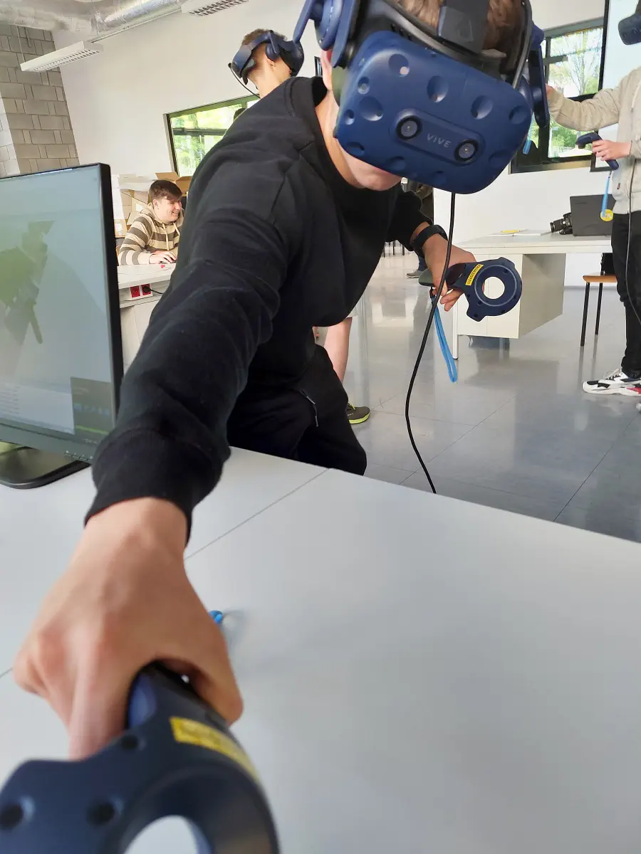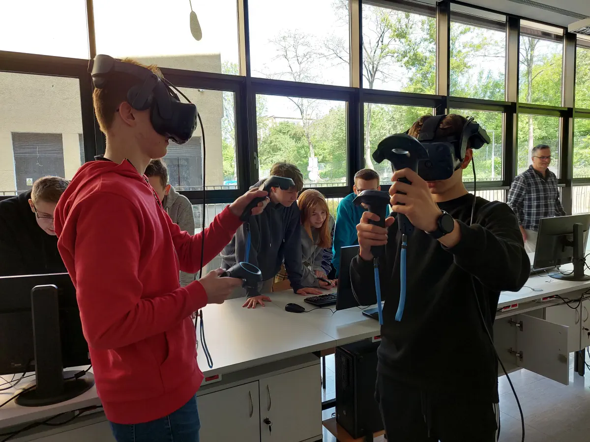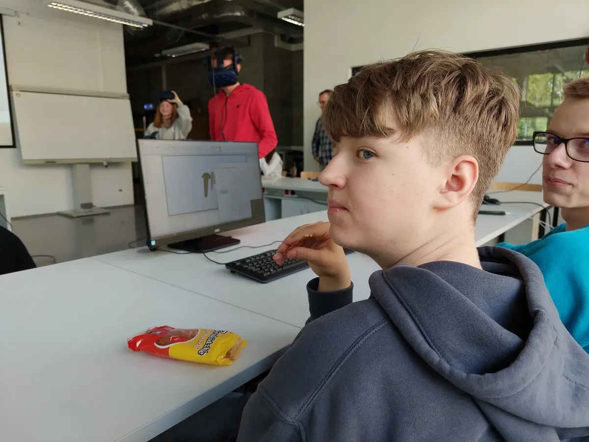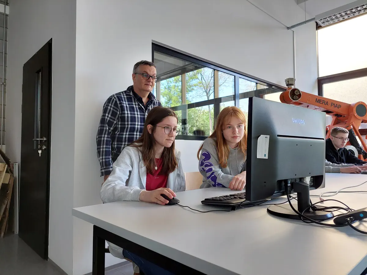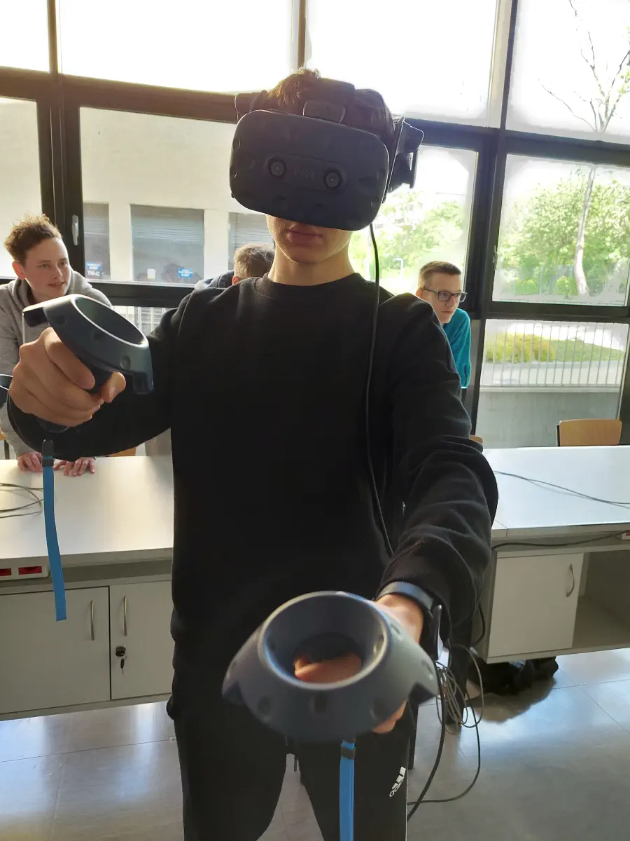 Podczas warsztatów licealiści zapoznali się z obsługą programu Robot Studio, a także mieli przyjemność obejrzenia swoich prac w goglach VR.