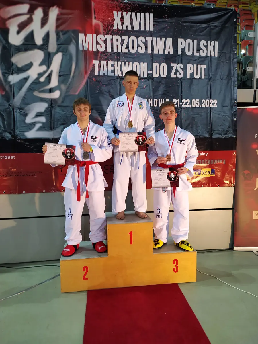 Z przyjemnością informujemy o kolejnych sukcesach Kuby Trześniaka. Na rozegranych w dniach 21-22 maja w Częstochowie mistrzostwach Polski w taekwon-do ZS PUT Kuba zdobył złoty medal w walkach semi-contact juniorów do 170 cm wzrostu, zdobywając tytuł mistrza Polski po raz czwarty z rzędu.
