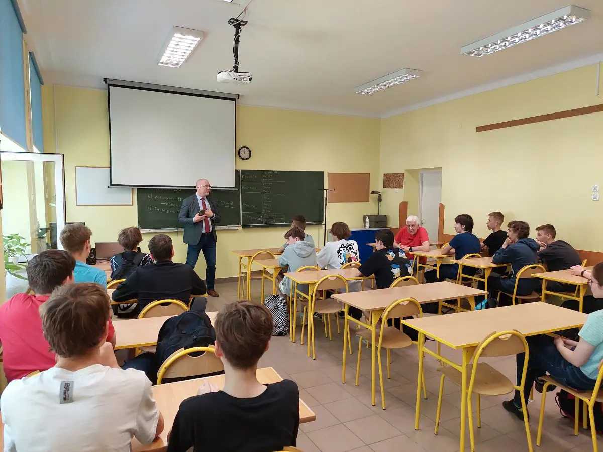 Tydzień wcześniej, 7 czerwca, uczniowie mieli okazję spotkać się z dr Robertem Janczewskim – wykładowcą Akademii Marynarki Wojennej w Gdyni, do której wybieramy się na początku lipca na obóz „Cyberbezpieczne” lato z Morskim Centrum Cyberbezpieczeństwa. Podczas spotkania młodzież dowiedziała się wielu kolejnych istotnych informacji na temat cyberbezpieczenstwa.