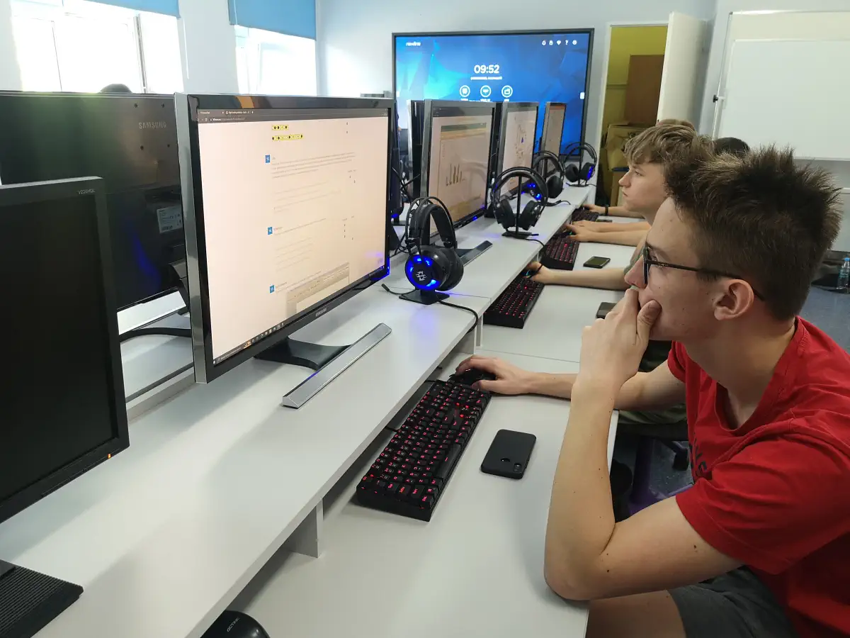 13 czerwca uczniów klasy 1i odwiedził minister Artur Soboń, starosta powiatu świdnickiego Łukasz Reszka oraz prezes zarządu Związku Cyfrowa Polska. W czasie spotkania odbyła się otwarta dla mediów sesja rozwiązywania testu kompetencji cyfrowych IT Fitness Test 2022 Grupy Wyszehradzkiej w Polsce. Test jest największym i najbardziej kompleksowym sprawdzianem kompetencji cyfrowych, który po raz pierwszy odbywa się jednocześnie na terenie czterech krajów: Czech, Polski, Słowacji i Węgier. Jego wyniki obrazują poziom umiejętności uczniów w obszarze IT. Test pozwala ocenić ich gotowość do dalszej nauki, a także podjęcia zatrudnienia. Nasi uczniowie uzyskali wynik: 64 proc., a najlepiej z testem poradził sobie Wiktor Juszczuk (92 proc. poprawnych odpowiedzi!).