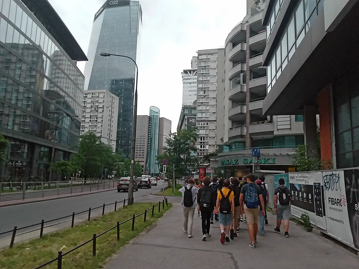 Uczniowie mimo deszczu pospacerowali uliczkami Warszawy.