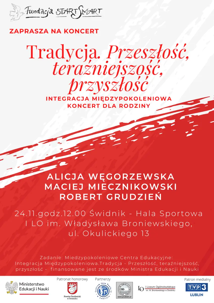Ideą koncertu jest łączenie pokoleń dlatego uczniom i nauczycielom I Liceum towarzyszyli goście: starosta powiatu świdnickiego Łukasz Reszka, szef oświaty powiatu świdnickiego Romuald Gumienniak, studenci Uniwersytetu III Wieku oraz seniorzy z Centrum Usług Społecznych, uczniowie Szkoły Mistrzostwa Sportowego oraz Specjalnego Ośrodka Szkolno-Wychowawczego w Świdniku, a także członkowie Młodzieżowej Rady Miasta. Z gwiazdami wystąpiła także Alicja Tarnowska, która wykonała utwór „Rozkwitały pąki białych róż”, a także recytowała „Hymn” Juliusza Słowackiego.