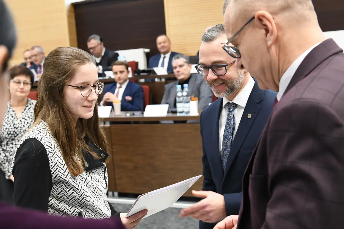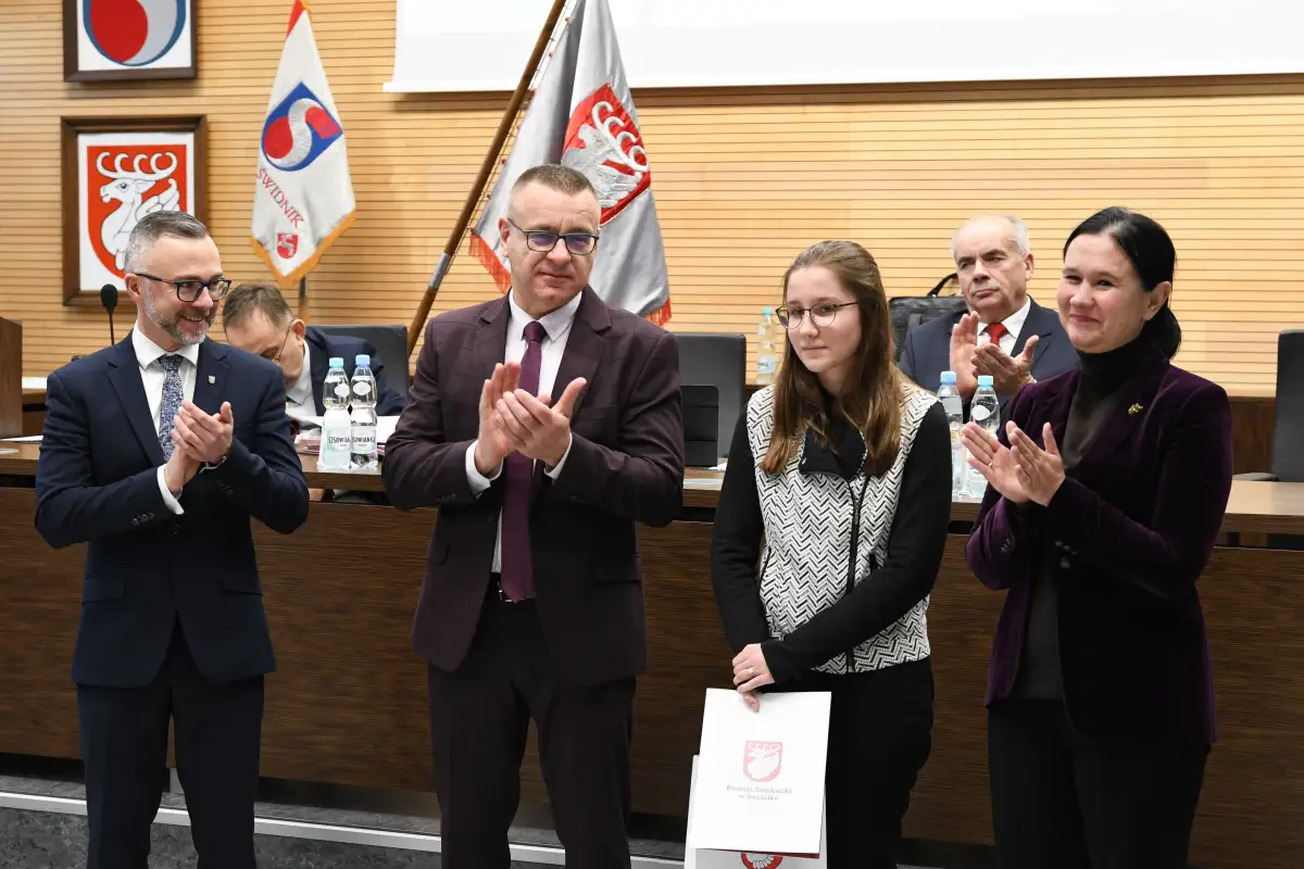 We wtorek na sesji Rady Powiatu w Świdniku starosta Łukasz Reszka wręczył stypendystom Ministra Edukacji listy gratulacyjne. Wśród wyróżnionych znalazła się Natalia Ostrzyżek, uczennica klasy drugiej CyberMil. Jej średnia ocen na świadectwie ukończenia klasy pierwszej wynosi 5,40, a frekwencja uczennicy jest bliska 100%.