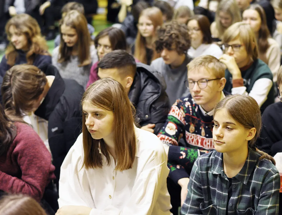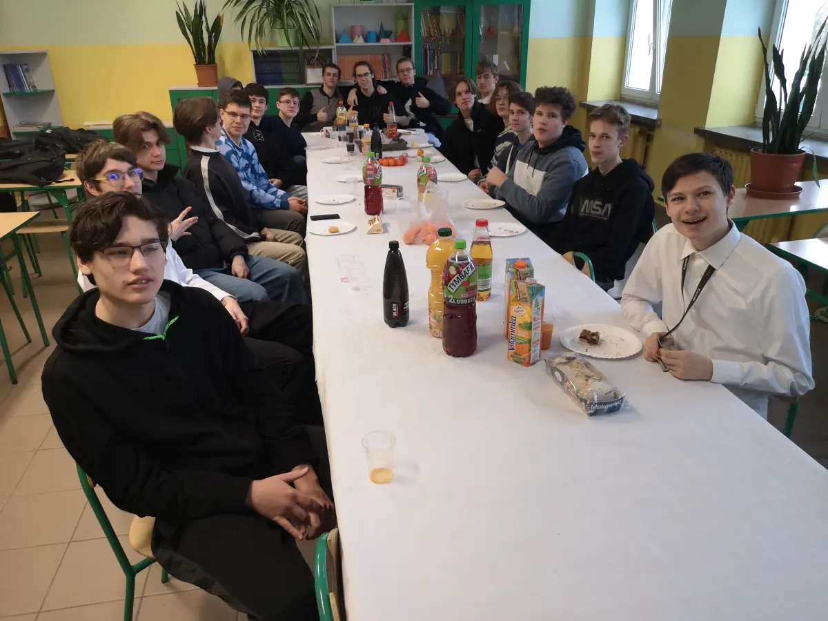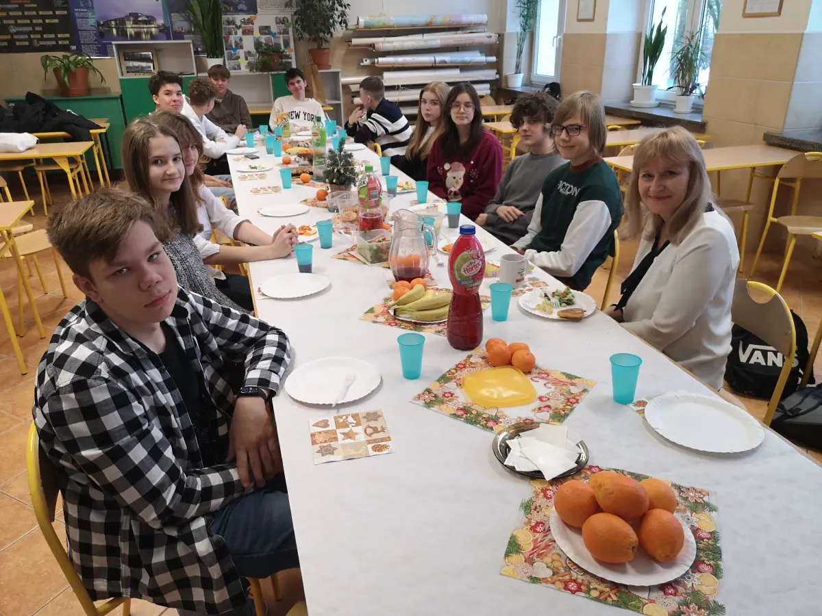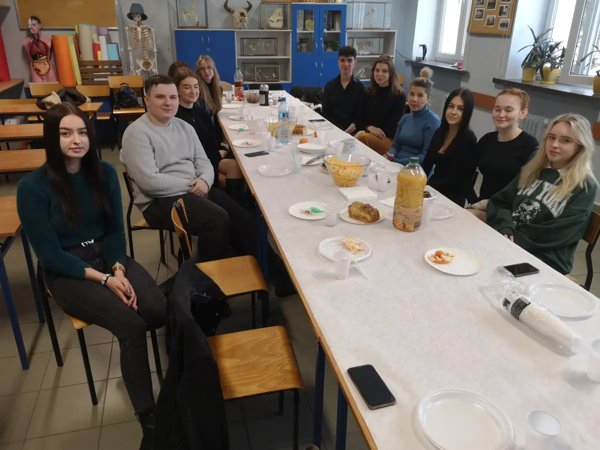 Na szkolnych stołach pojawiły się piękne obrusy, pachnące wigilią potrawy, a z sal popłynęły kolędy. W szkole zapanował ciepły, rodzinny nastrój. Po spotkaniach w klasach społeczność I Liceum zebrała się w hali, aby podzielić się opłatkiem.