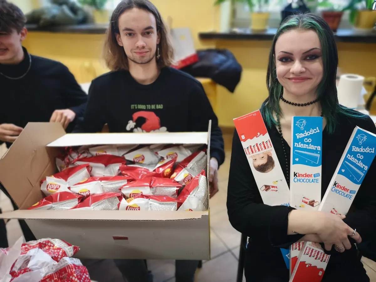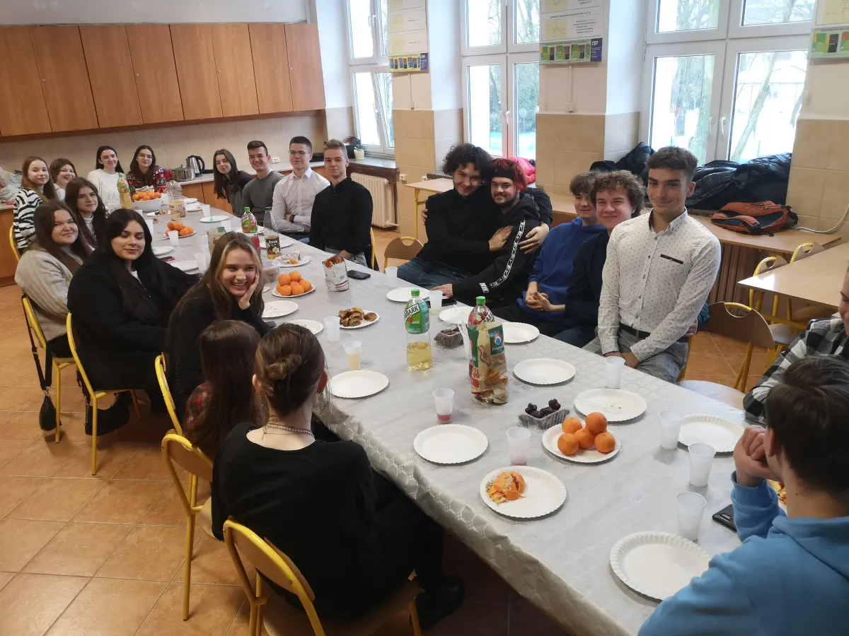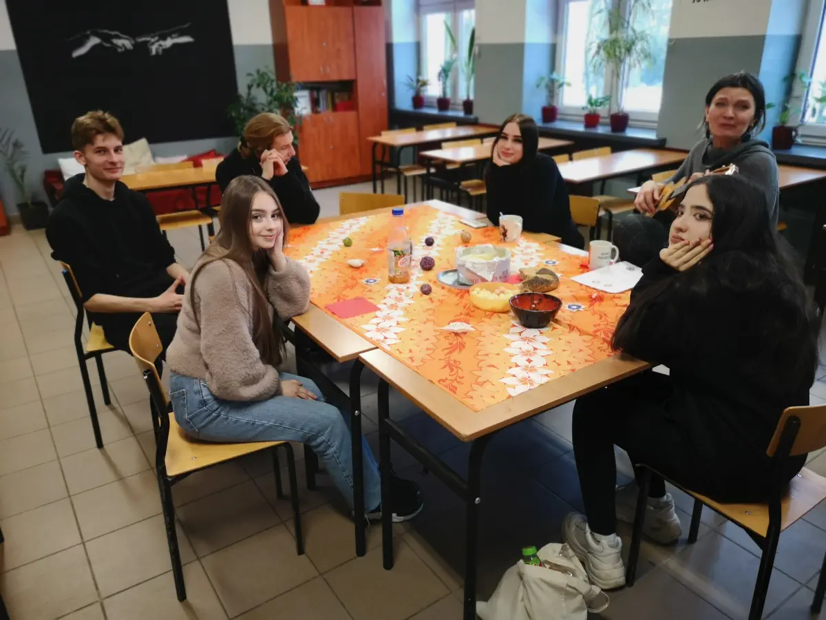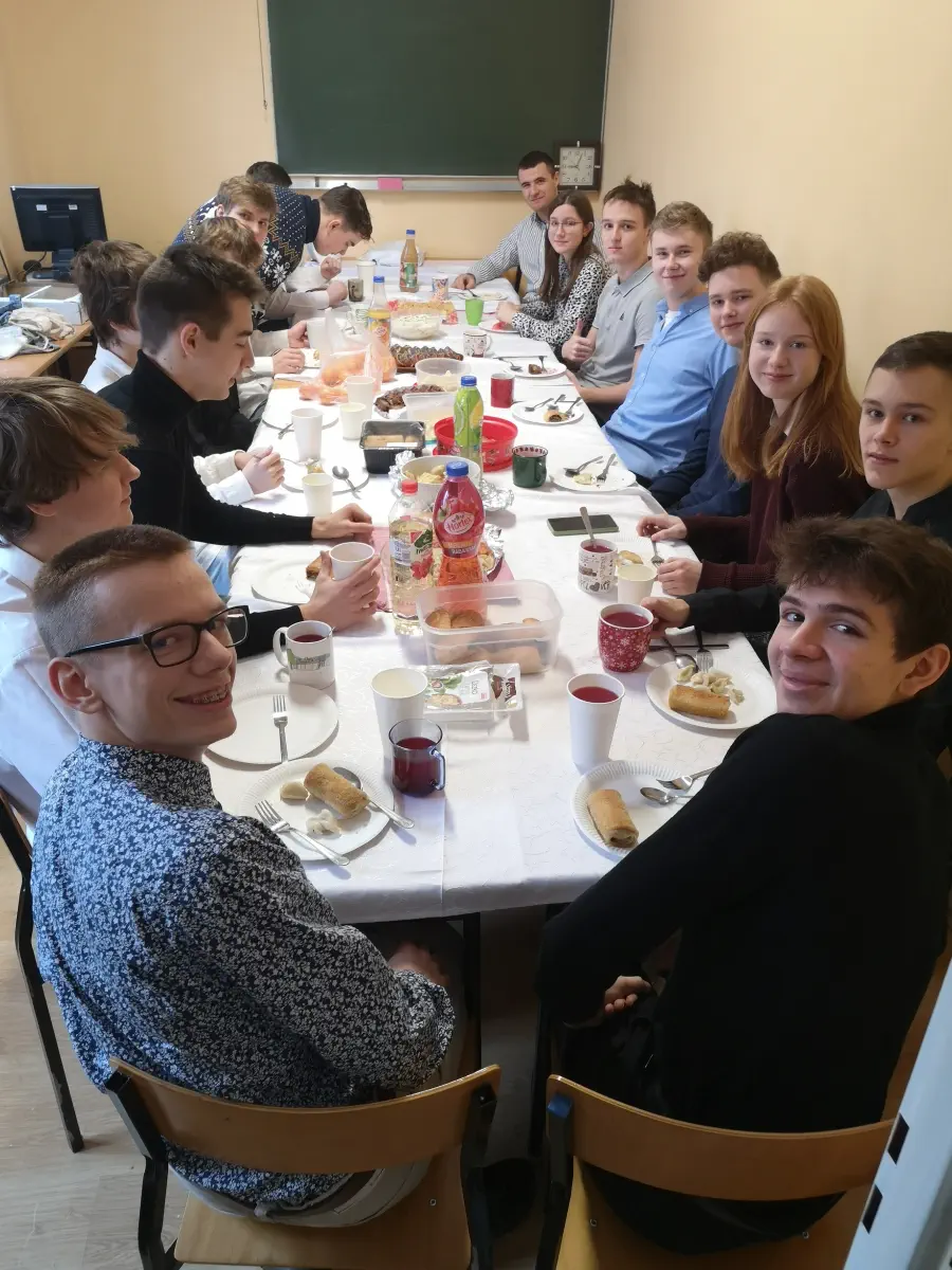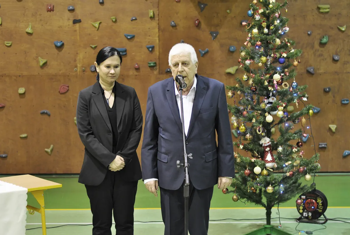 Na szkolnych stołach pojawiły się piękne obrusy, pachnące wigilią potrawy, a z sal popłynęły kolędy. W szkole zapanował ciepły, rodzinny nastrój. Po spotkaniach w klasach społeczność I Liceum zebrała się w hali, aby podzielić się opłatkiem.