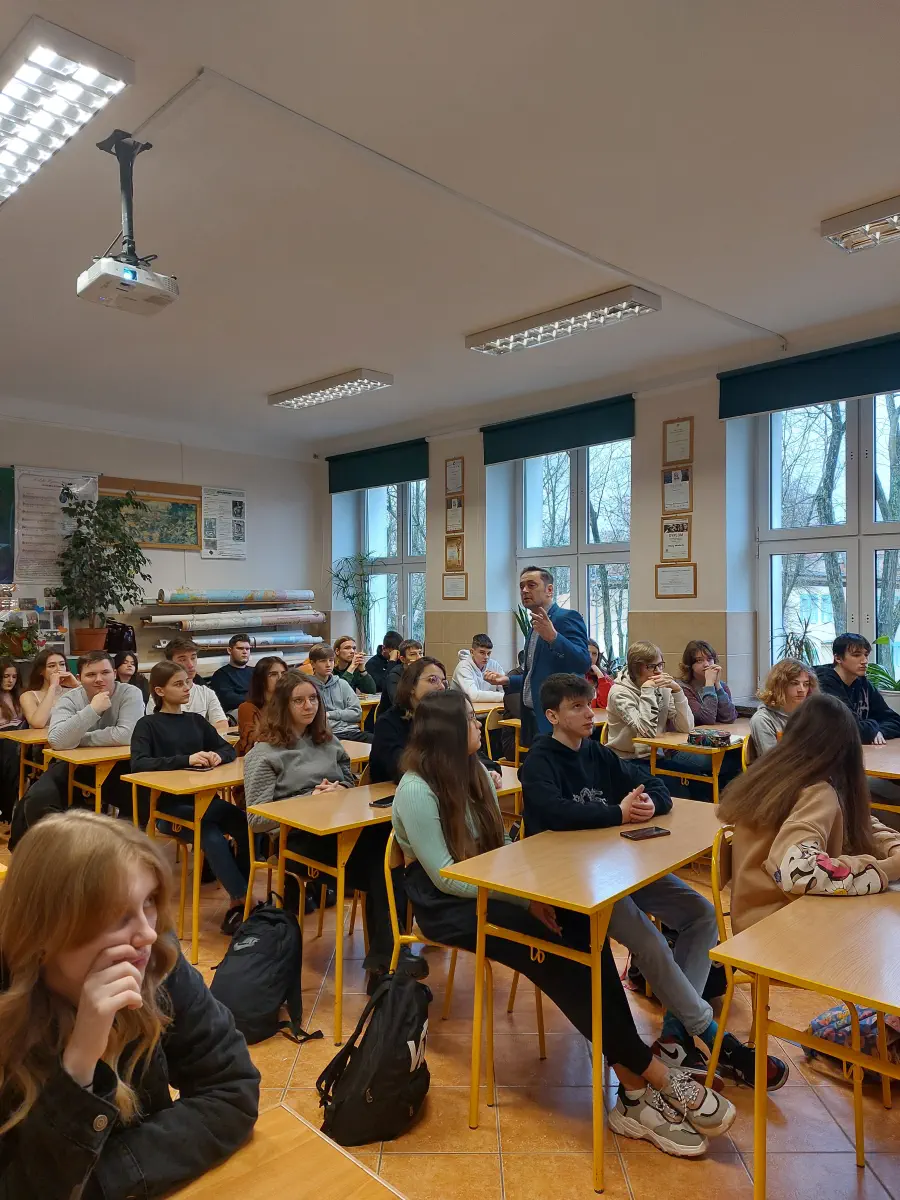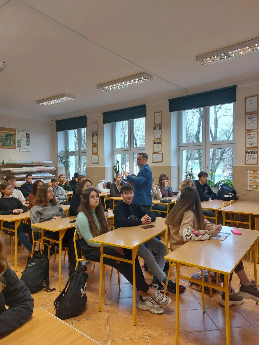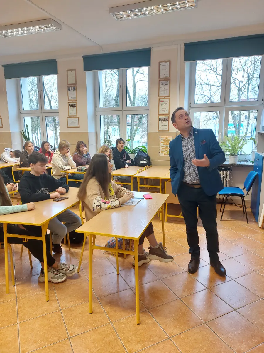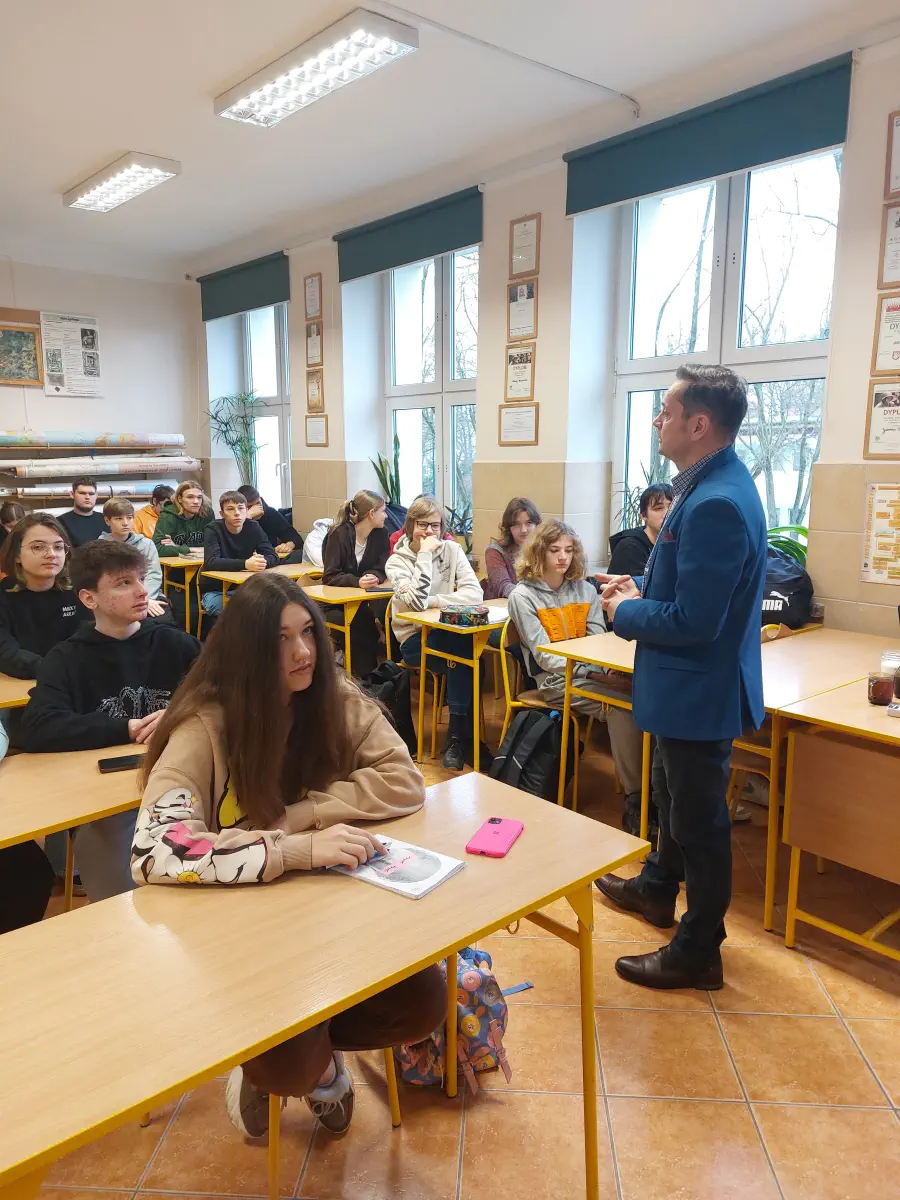 słuchacze wykładu nt. "Staropolskie tradycje kulinarne. Kuchnia staropolska. Kuchnia szlachecka" wygłoszonego w naszej szkole przez dr Arkadiusza Staniaka z Katolickiego Uniwersytetu Lubelskiego.