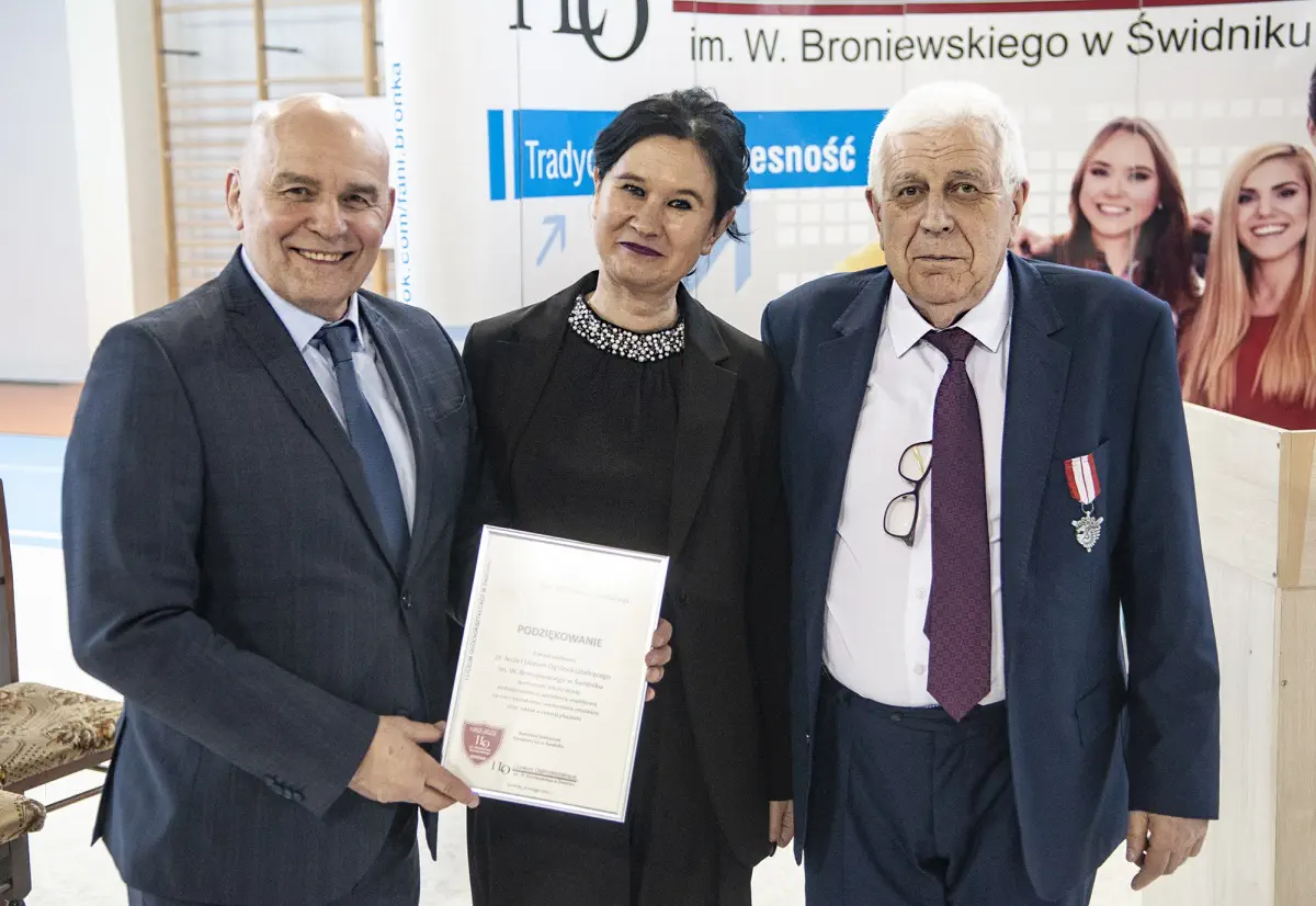 W sposób szczególny uhonorowany został wieloletni dyrektor ILO, p. S. Stefańczyk, który w tym roku obchodzi 50lecie pracy. Rada pedagogiczna wyróżniła go tytułem Zasłużonego dla ILO, zaś starosta powiatu świdnickiego p. Ł. Reszka wręczył odznaczenie Zasłużony dla Powiatu Świdnickiego. Niezwykle miłym akcentem było także wystąpienie uczniów pierwszej klasy pana Stefańczyka.
