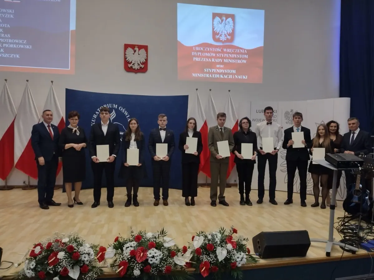W poniedziałek 20 lutego w Sali Błękitnej Lubelskiego Urzędu Wojewódzkiego w Lublinie odbyła się uroczystość wręczenia dyplomów Stypendystom Prezesa Rady Ministrów oraz Ministra Edukacji i Nauki. Wśród najlepszych znalazła się Natalia Ostrzyżek, uczennica klasy drugiej CyberMil.