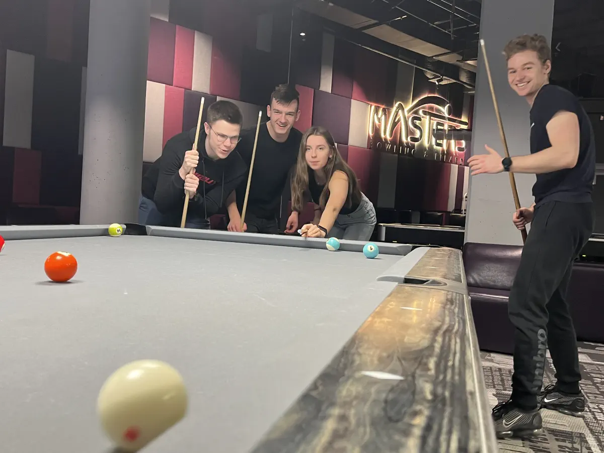 Jedną z zasad, która ułatwiła grę w bilard, jest reguła 90 stopni. Polega ona na tym, że biała bila, a także bila, która zostanie uderzona przez nią, odbiją się od siebie pod kątem 90 stopni - linia uderzenia bil jest prostopadła do linii odbicia białej. Ta reguła obowiązuje tylko, gdy biała ślizga się po stole bez górnej oraz dolnej rotacji w momencie uderzenia w inną bilę. Mimo, że dla niektórych było to pierwsze spotkanie z grą, to rywalizacja w połączeniu z dobrą zabawą dały uczniom dużo frajdy.