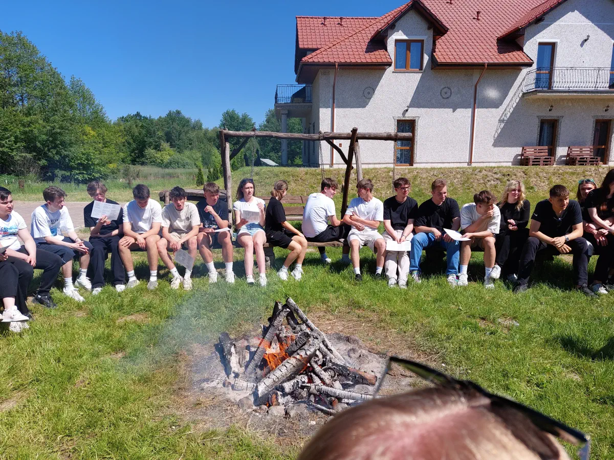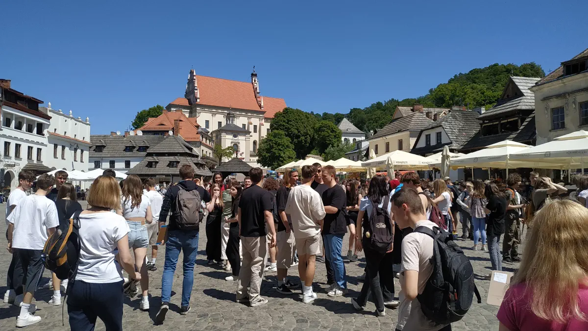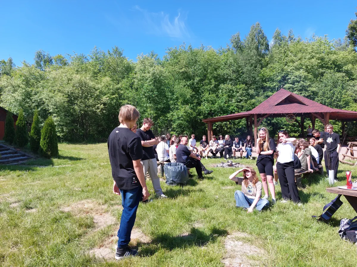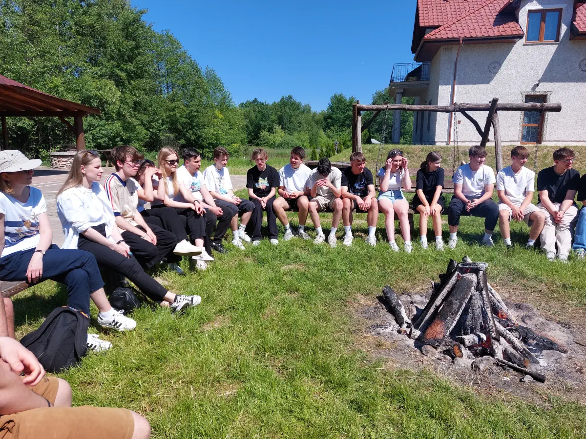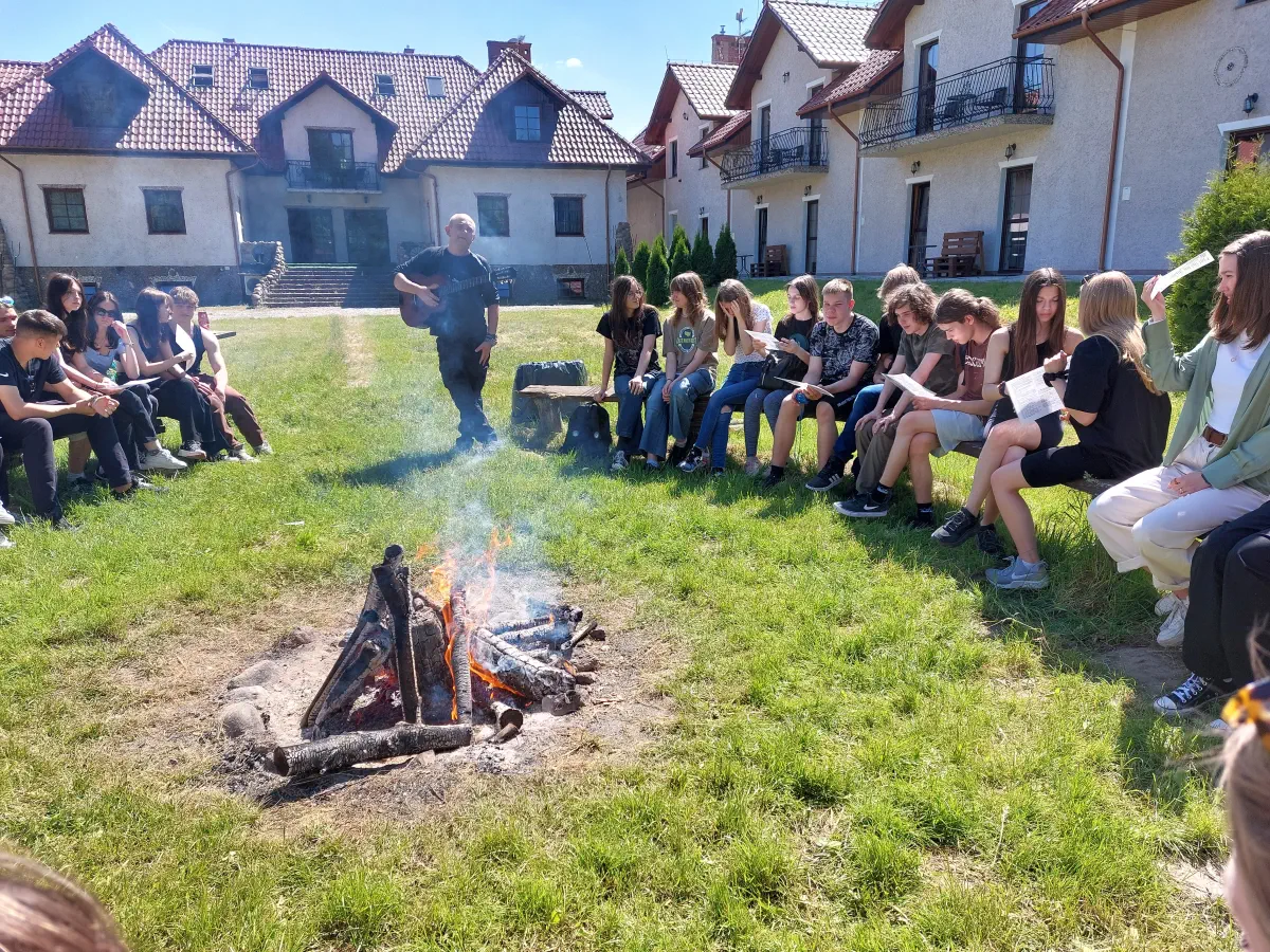 Odwiedzili także Kirkut i poznali historię dawnych mieszkańców miasta, a na rynku wzięli udział w grze miejskiej. W programie wycieczki było również ognisko z pieczeniem kiełbasek i śpiewem przy akompaniamencie gitary. Najbardziej atrakcyjne okazały się gry i zabawy sprawnościowe, w których uczniowie rywalizowali m.in. w strzelaniu z łuku, wyścigach na nartach wieloosobowych, przeciąganiu liny i rzucaniu do celu.