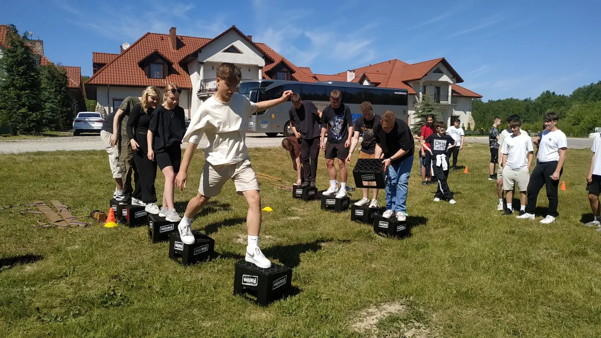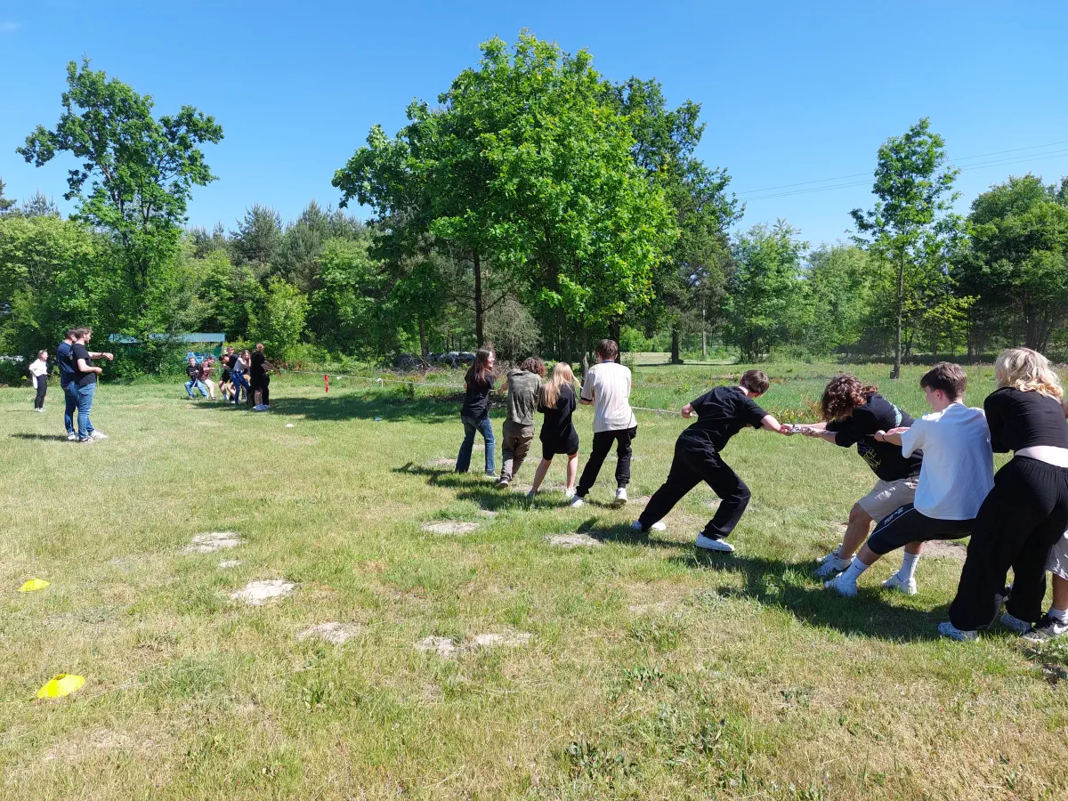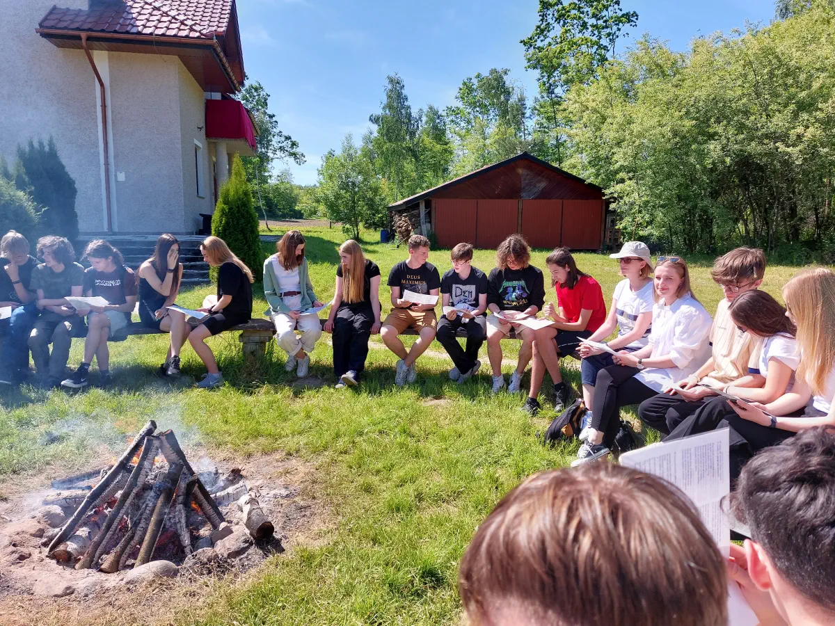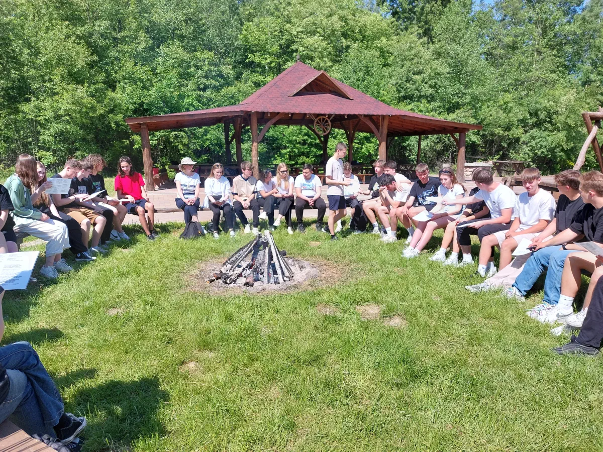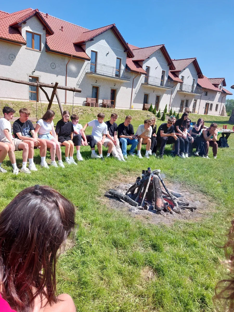 Odwiedzili także Kirkut i poznali historię dawnych mieszkańców miasta, a na rynku wzięli udział w grze miejskiej. W programie wycieczki było również ognisko z pieczeniem kiełbasek i śpiewem przy akompaniamencie gitary. Najbardziej atrakcyjne okazały się gry i zabawy sprawnościowe, w których uczniowie rywalizowali m.in. w strzelaniu z łuku, wyścigach na nartach wieloosobowych, przeciąganiu liny i rzucaniu do celu.