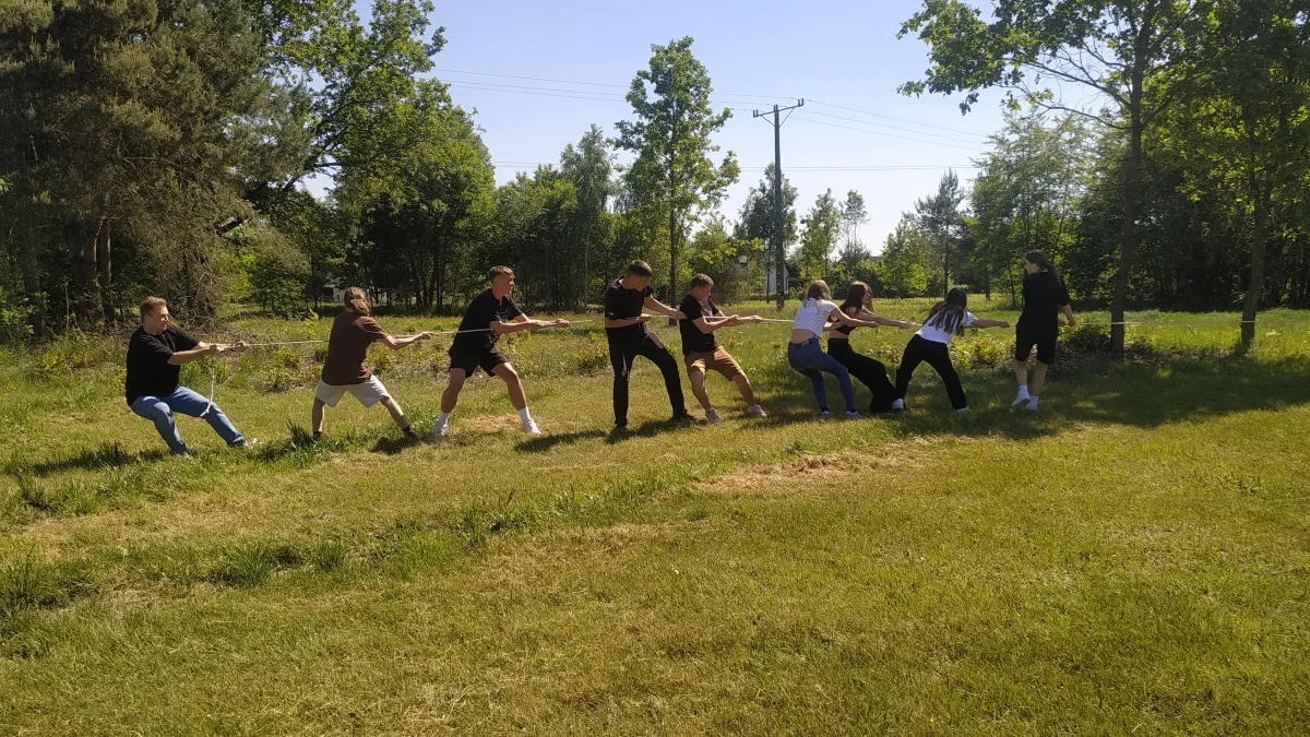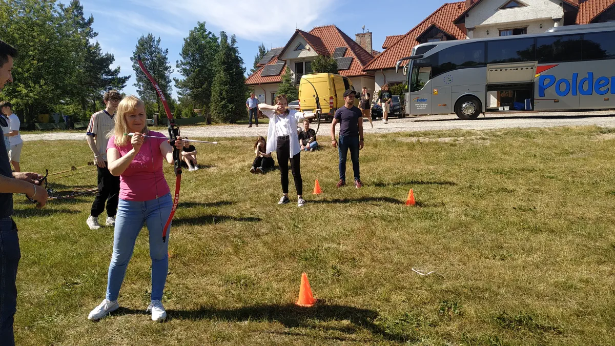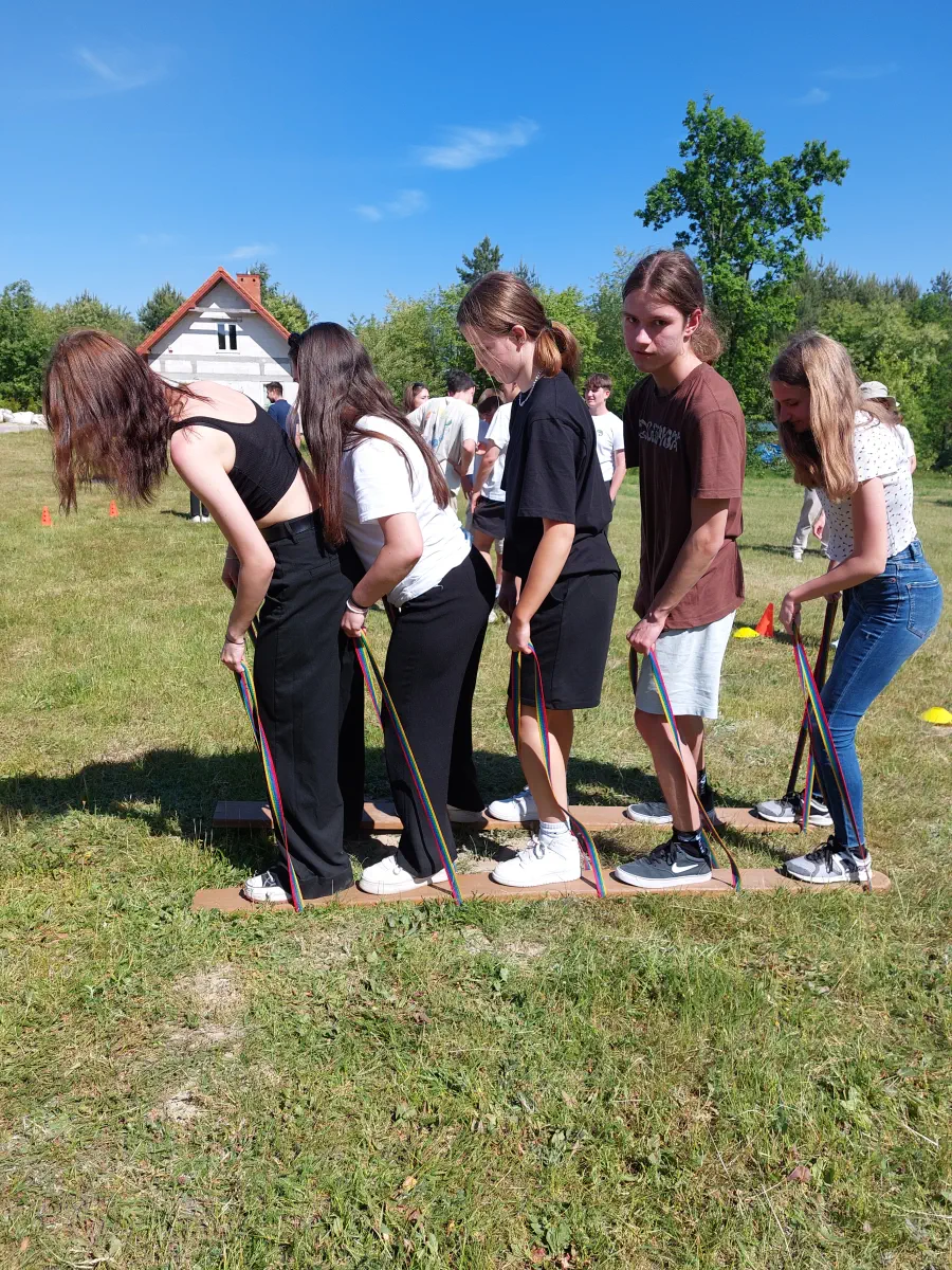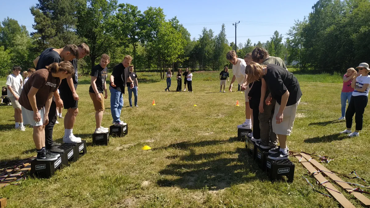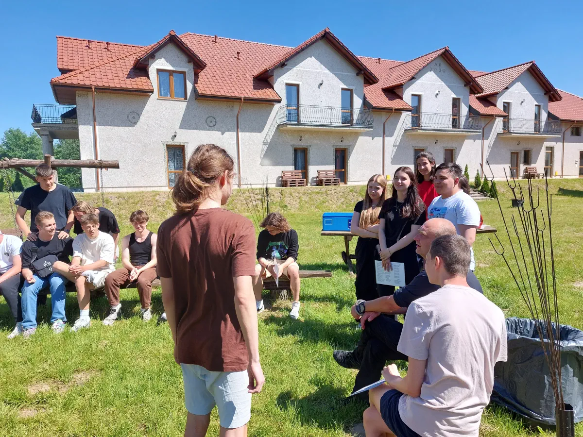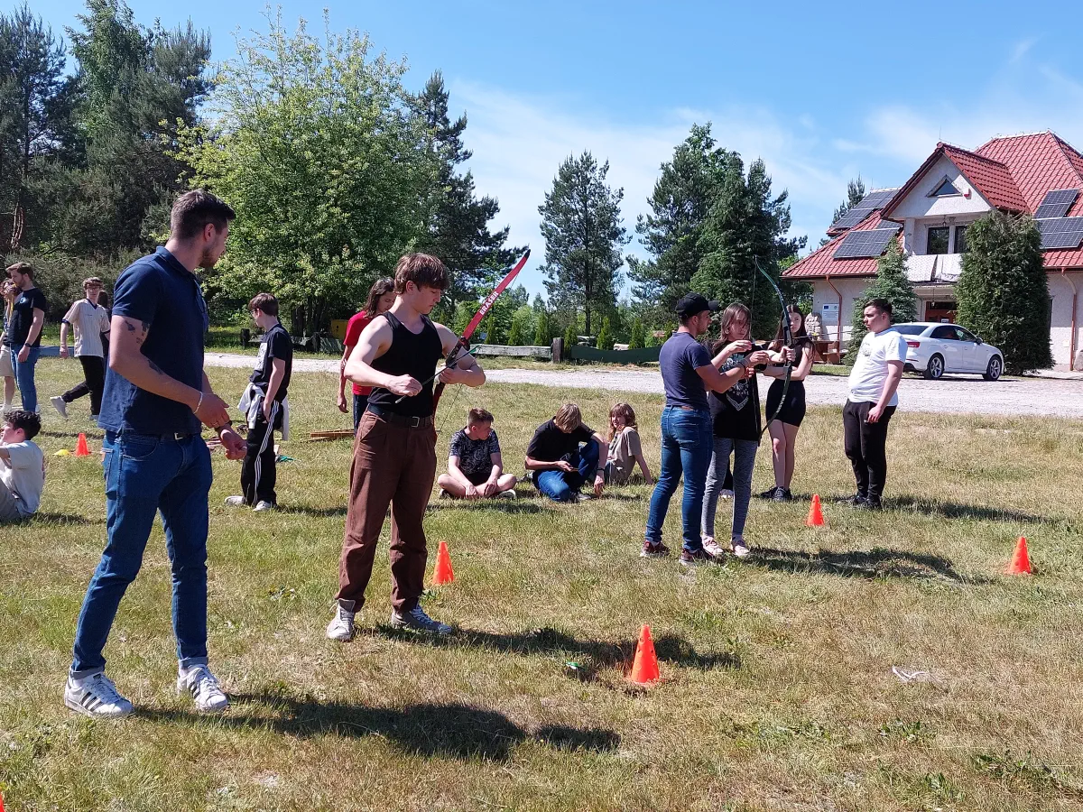 Odwiedzili także Kirkut i poznali historię dawnych mieszkańców miasta, a na rynku wzięli udział w grze miejskiej. W programie wycieczki było również ognisko z pieczeniem kiełbasek i śpiewem przy akompaniamencie gitary. Najbardziej atrakcyjne okazały się gry i zabawy sprawnościowe, w których uczniowie rywalizowali m.in. w strzelaniu z łuku, wyścigach na nartach wieloosobowych, przeciąganiu liny i rzucaniu do celu.