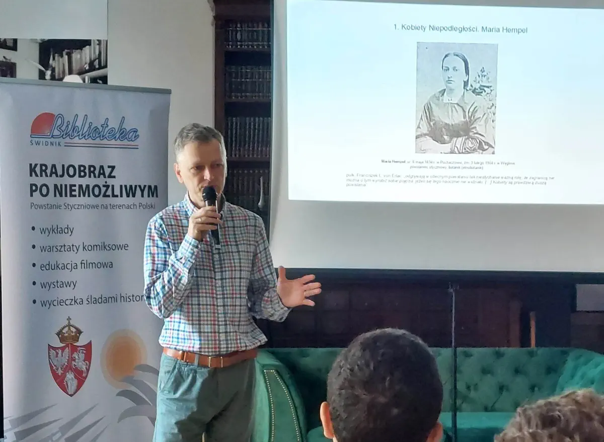 20 czerwca odwiedzili Bibliotekę Miejską w Świdniku, w której pracownik Oddziałowego Biura Upamiętniania Walk i Męczeństwa w Lublinie pan Jacek Rogala opowiedział o kobietach zaangażowanych w walkę o niepodległość Polski. W sposób szczególny skupił się na działalności Marii Hempel, pochodzącej z naszego regionu. Młodzieży towarzyszyły panie E. Derek i E. Białkowska.