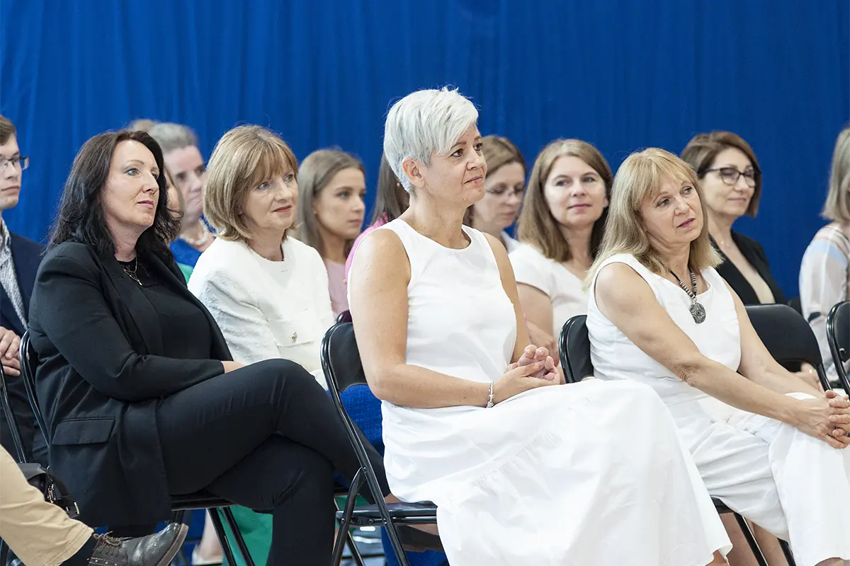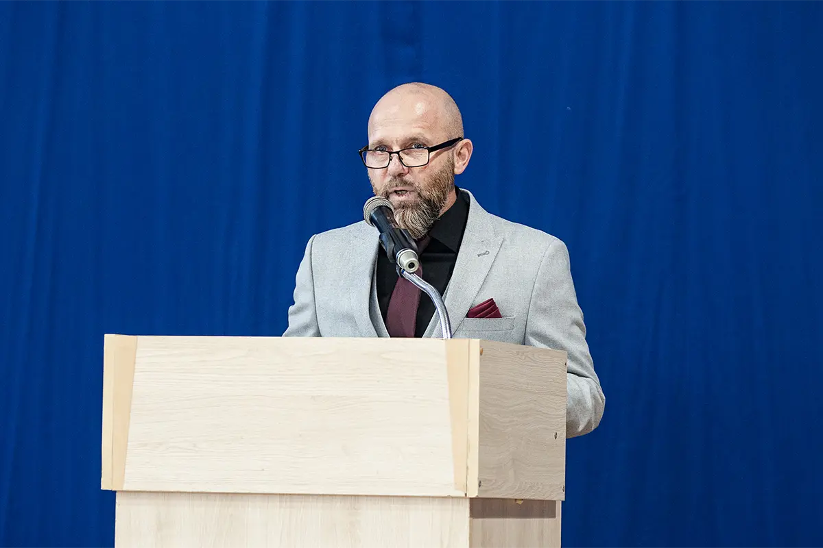 W swoim wystąpieniu nowy dyrektor szkoły p. Tomasz Król skierował słowa powitania do pierwszoklasistów podkreślając „Bardzo serdecznie chciałbym powitać w murach naszej szkoły Pierwszoklasistów. Na początek chcę Wam pogratulować, gratuluję pierwszego bardzo ważnego w waszym życiu zdanego sprawdzianu. W tych trudnych dla Was okolicznościach, dostaliście się do szkoły, którą sami wybraliście. Mam nadzieję, że szybko się tutaj zaaklimatyzujecie i stanie się ona dla Was drugim domem. Życzę wam, abyście poznali samych siebie, odkryli własne talenty i mocne strony, aby nauka sprawiała Wam przyjemność. Wierzę, że będziecie tu przychodzić z ochotą i radością i że wyniesiecie stąd wiele dobrych wspomnień. Z całego serca życzę Wam powodzenia.” Nie zabrakło również życzeń skierowanych do maturzystów „Będzie to szczególny rok dla najstarszych uczniów - maturzystów, którzy kończą pewien etap swojego życia i czeka ich następny. Drodzy maturzyści, przed Wami czas wytężonej pracy, wielu zadań i obowiązków. Jak będzie wyglądał ten rok, w dużej mierze zależy od Was, Waszych postaw, motywacji, Waszego podejścia do obowiązku, jakim jest nauka. To Wy pracujecie na to, jak będzie wyglądała Wasza przyszłość - ta najbliższa, ale i ta dalsza. Trzymam kciuki, abyście osiągnęli to co zaplanujecie i Życzę Wam wytrwałości w dążeniu do obranych celów"