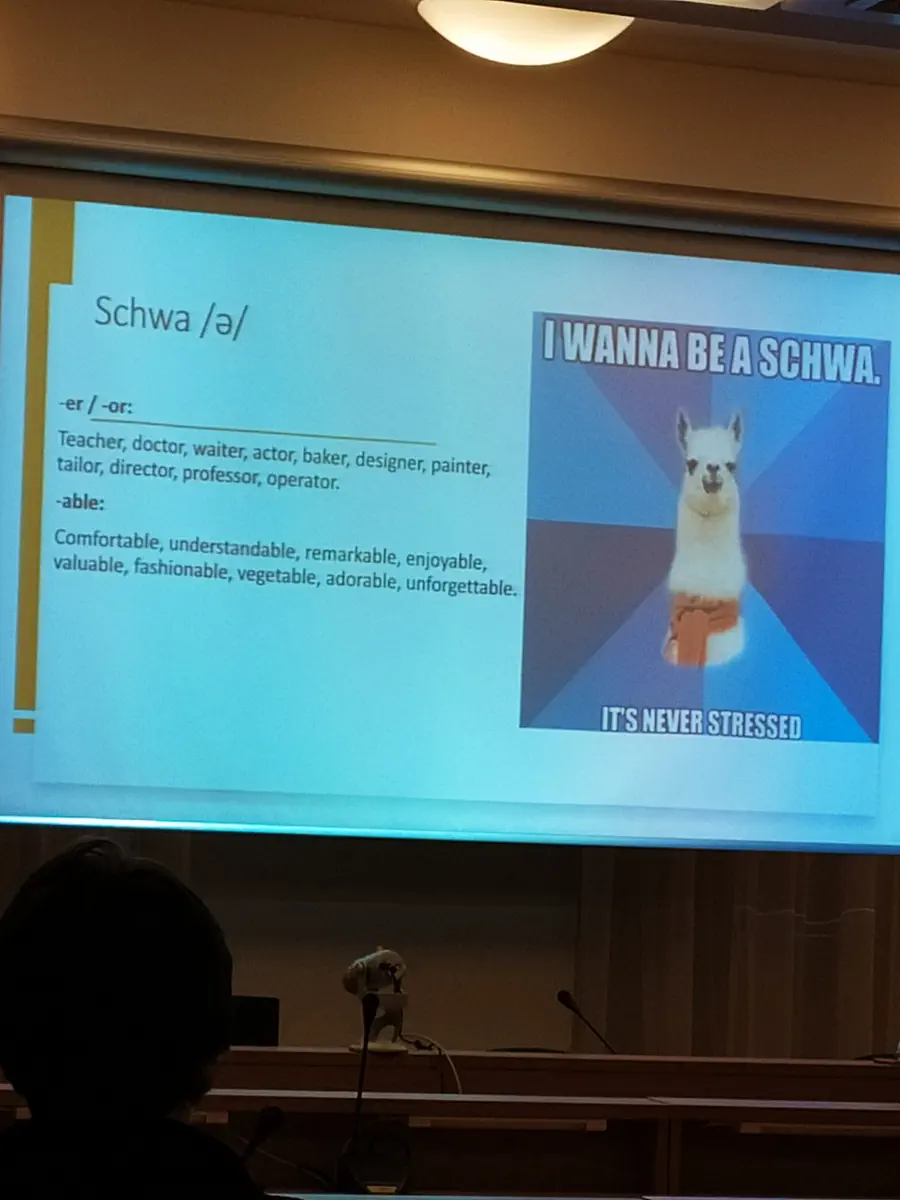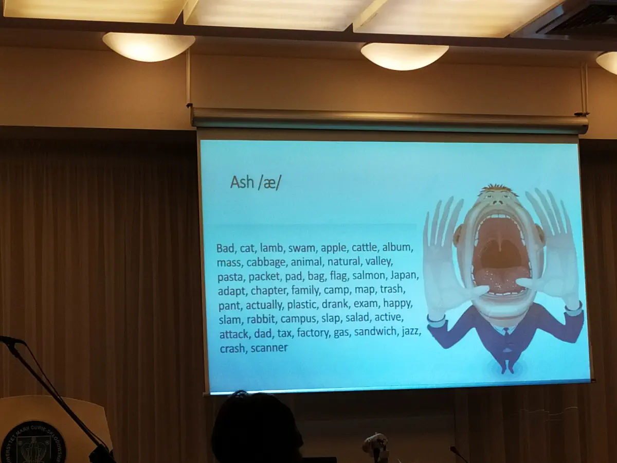 Druga część warsztatów została przygotowana na Wydziale Filologicznym UMCS i była poświęcona wymowie angielskiej. Licealiści uczyli się, jak należy poprawnie wymawiać kłopotliwe dla Polaków dźwięki stosując brytyjską odmianę języka angielskiego. Zajęcia pokazały, że poprawna artykulacja samogłoski ‘a’ w wyrazie ‘cat’ wcale nie jest taka łatwa, a wymowa popularnego słowa ‘comPUter’ również bywa kłopotliwa. Trzeba przyznać , że wymowa słów ‘leopard’, ‘lieutenant’ czy ‘ hiccough’ na pewno utkwi w pamięci uczniów.