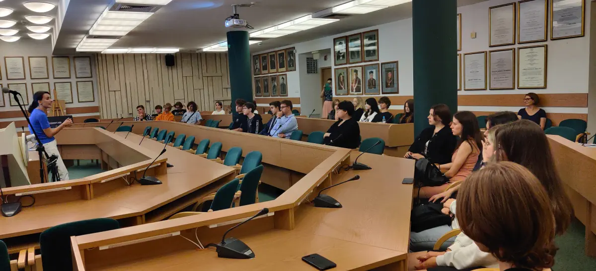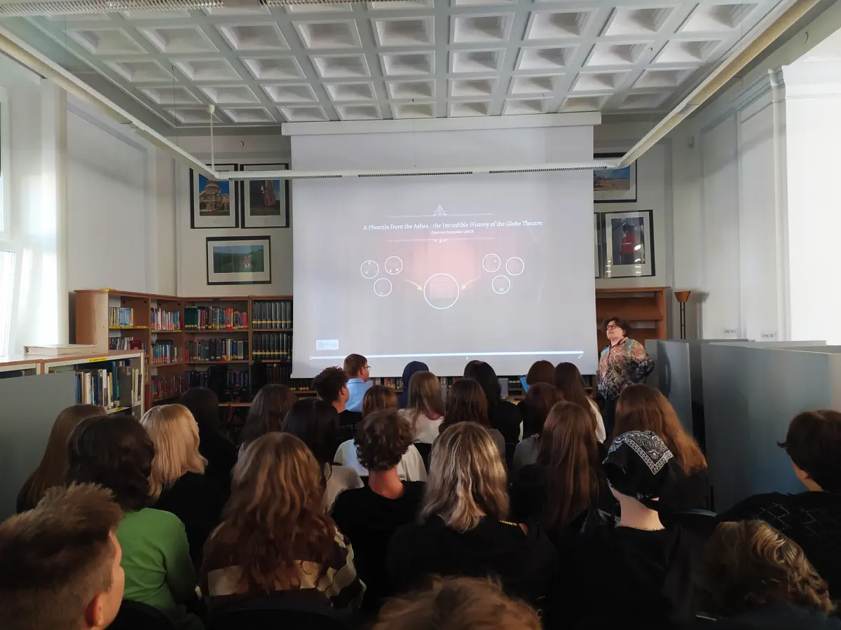 Pierwsza część spotkania odbyła się w Centrum Brytyjskim UMCS, gdzie uczniowie wysłuchali wykładu na temat historii teatru szekspirowskiego „The Globe Theatre”. Licealiści dowiedzieli się, że w teatrze szekspirowskim sztuki były wystawiane pod gołym niebem, a zgromadzona licznie publiczność wchodziła w interakcje z aktorami.