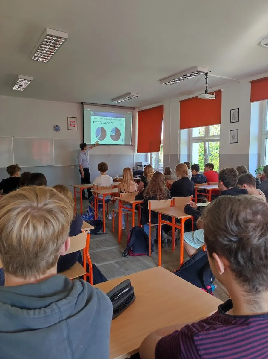 Wraz z nauczycielką fizyki p. A. Ziętek zaprosił uczniów do udziału w projekcie Ministerstwa Klimatu i Środowiska oraz Fundacji Instytut Zrównoważonej Energetyki o transformacji energetycznej uwzględniającej w szczególności energetykę jądrową oraz jej wpływ na środowisko naturalne. Uczniowie zapoznali się z szeregiem ciekawych i ważnych informacji na temat roli transformacji energetycznej w ograniczaniu skutków zmian klimatu i bezemisyjnych źródłach energii.