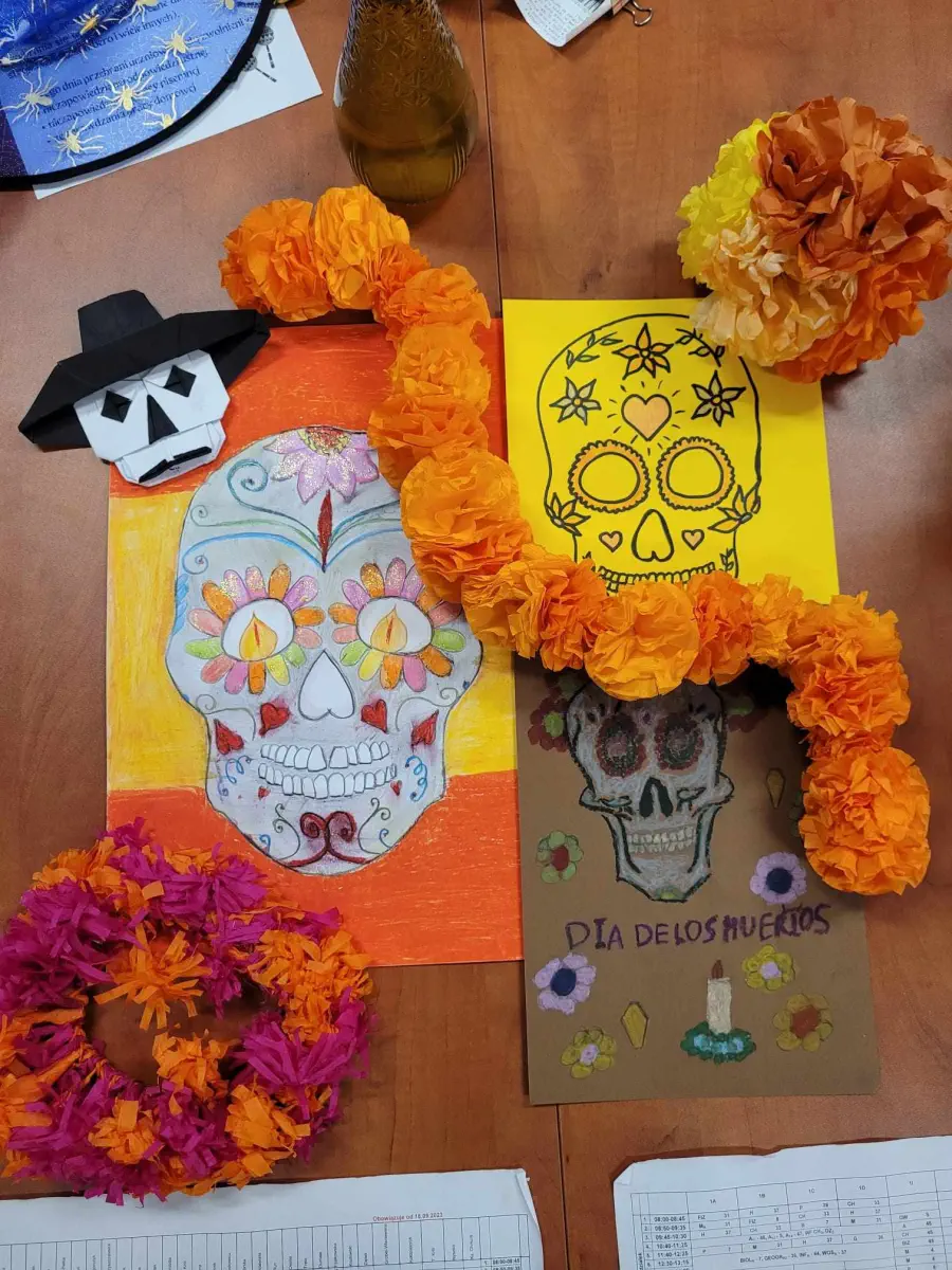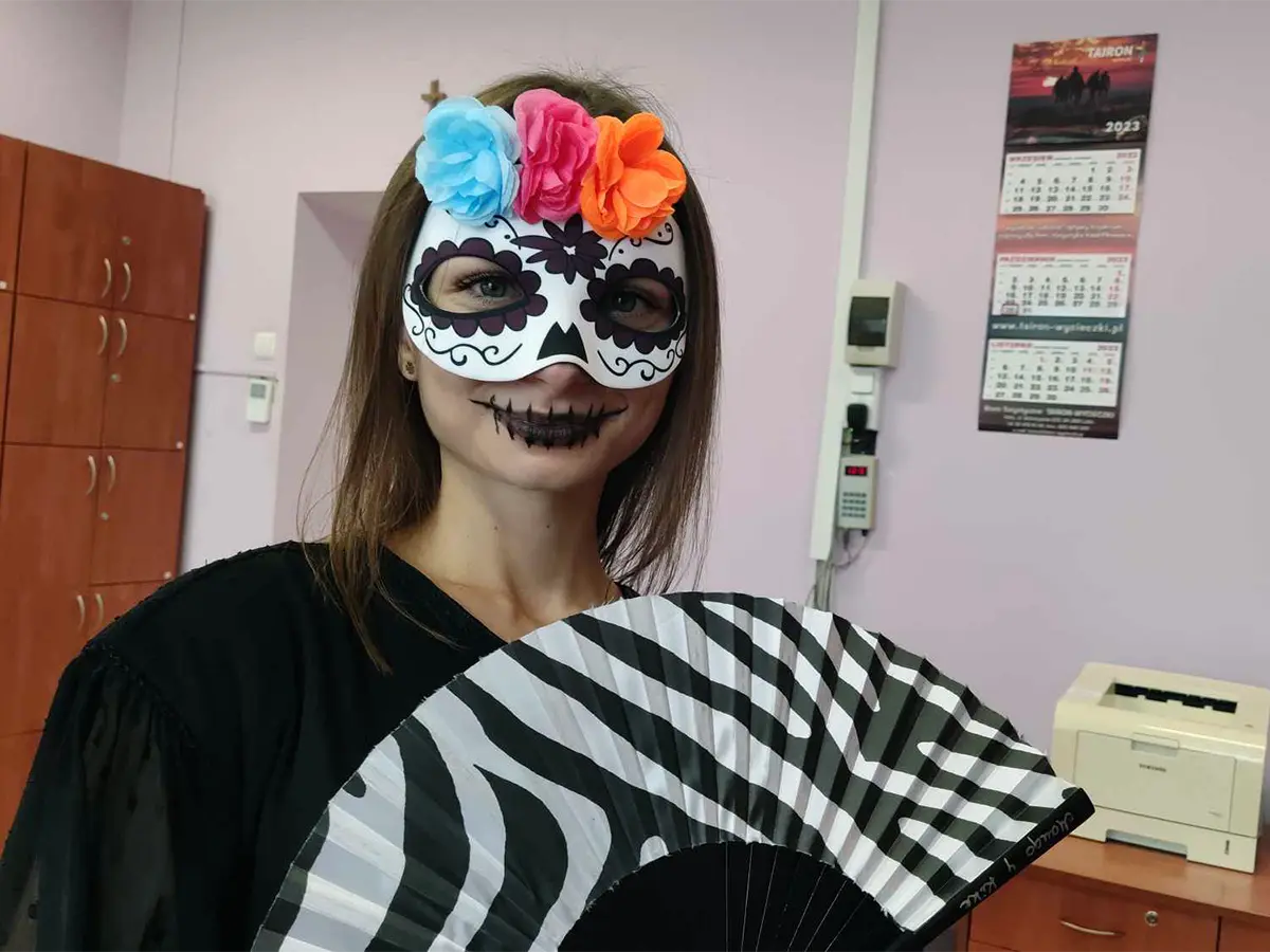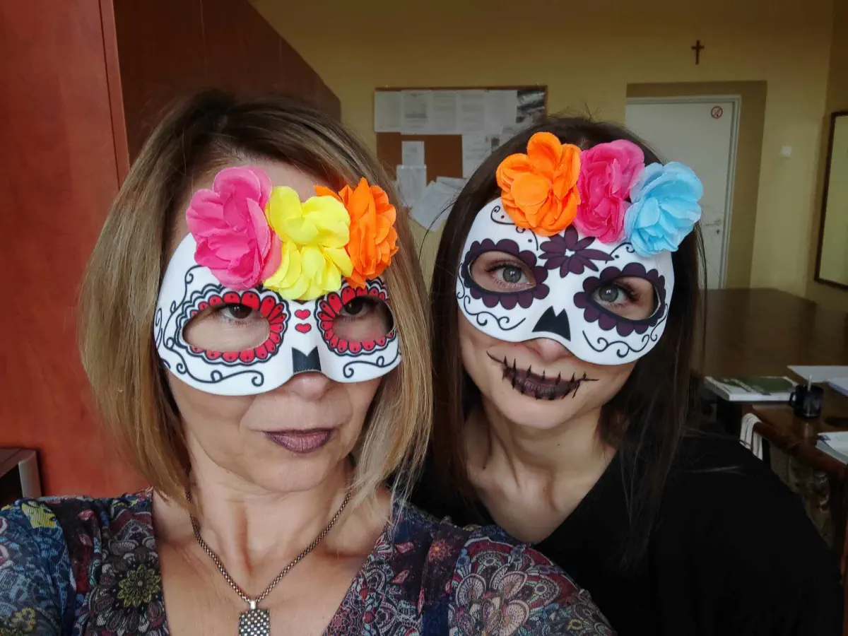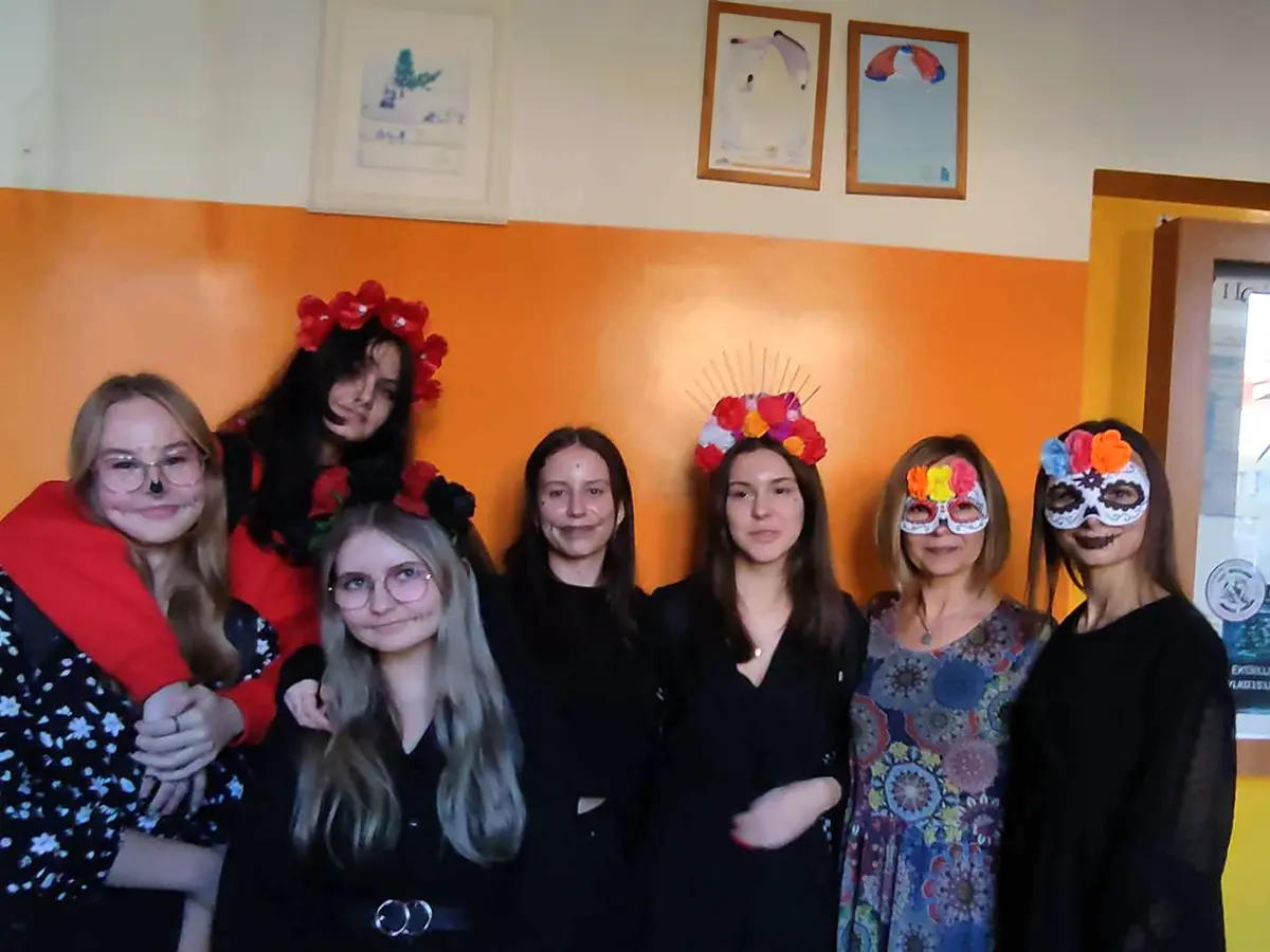 Hola! W ramach poznawania kultury krajów hiszpańskojęzycznych nauczycielki tego języka panie Z. Grzegorczyk i M. Stępień zaprosiły uczniów i nauczycieli do wspólnego świętowania "Dia de Muertos" –obrzędu wywodzącego się z Meksyku.