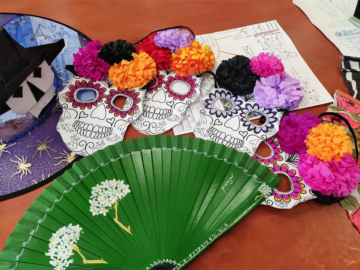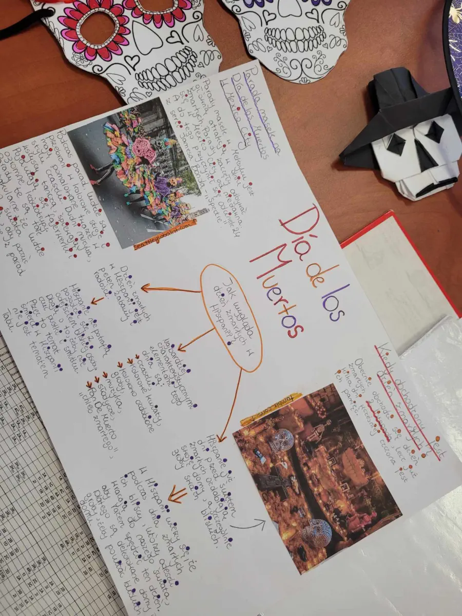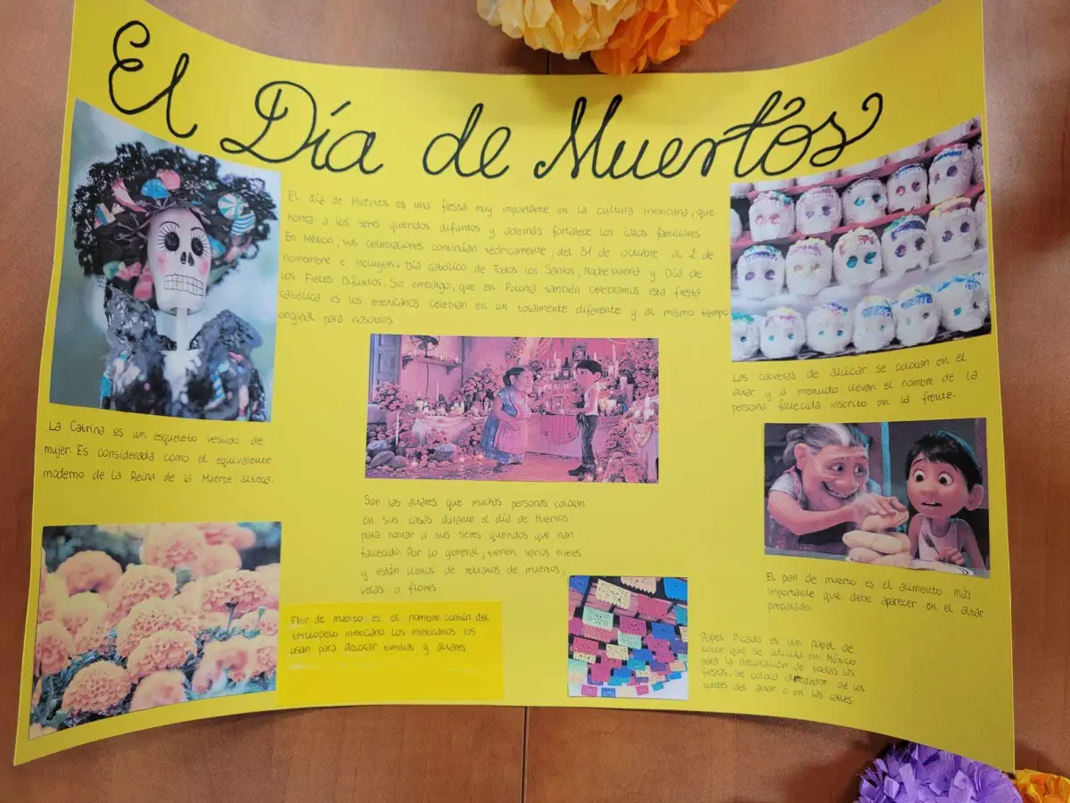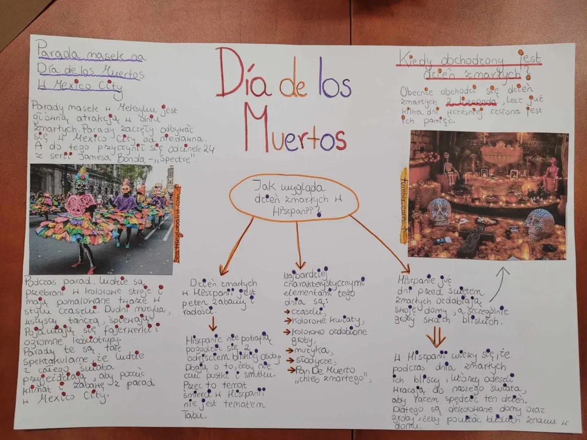 Hola! W ramach poznawania kultury krajów hiszpańskojęzycznych nauczycielki tego języka panie Z. Grzegorczyk i M. Stępień zaprosiły uczniów i nauczycieli do wspólnego świętowania "Dia de Muertos" –obrzędu wywodzącego się z Meksyku.