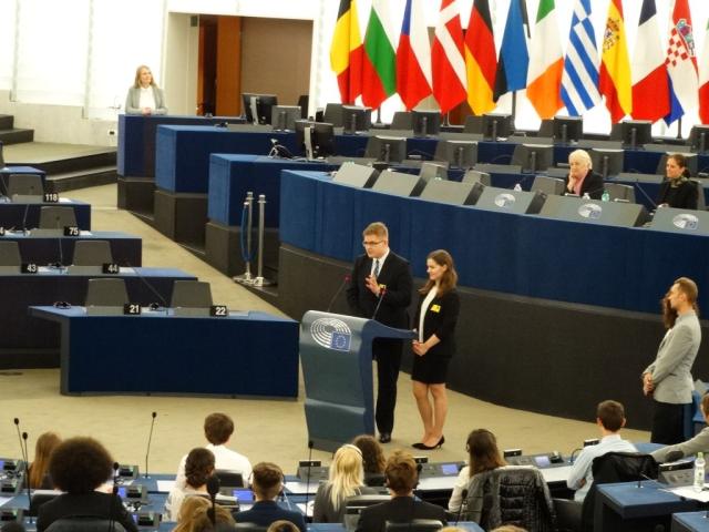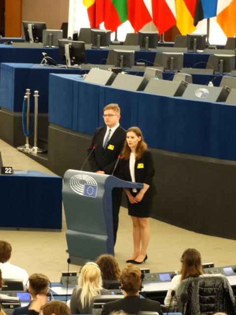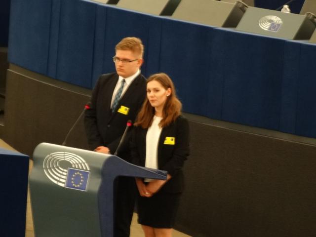 Naszymi przedstawicielami (speakerami) byli Sara Pastusiak i Michał Ciozda. Uczniowie zajmowali się także w zespołach roboczych ważnymi dla Europy problemami: środowisko naturalne i energia odnawialna, bezpieczeństwo i prawa człowieka, pomoc rozwojowa, przyszłość Europy, migracja i integracja oraz zatrudnienie ludzi młodych.