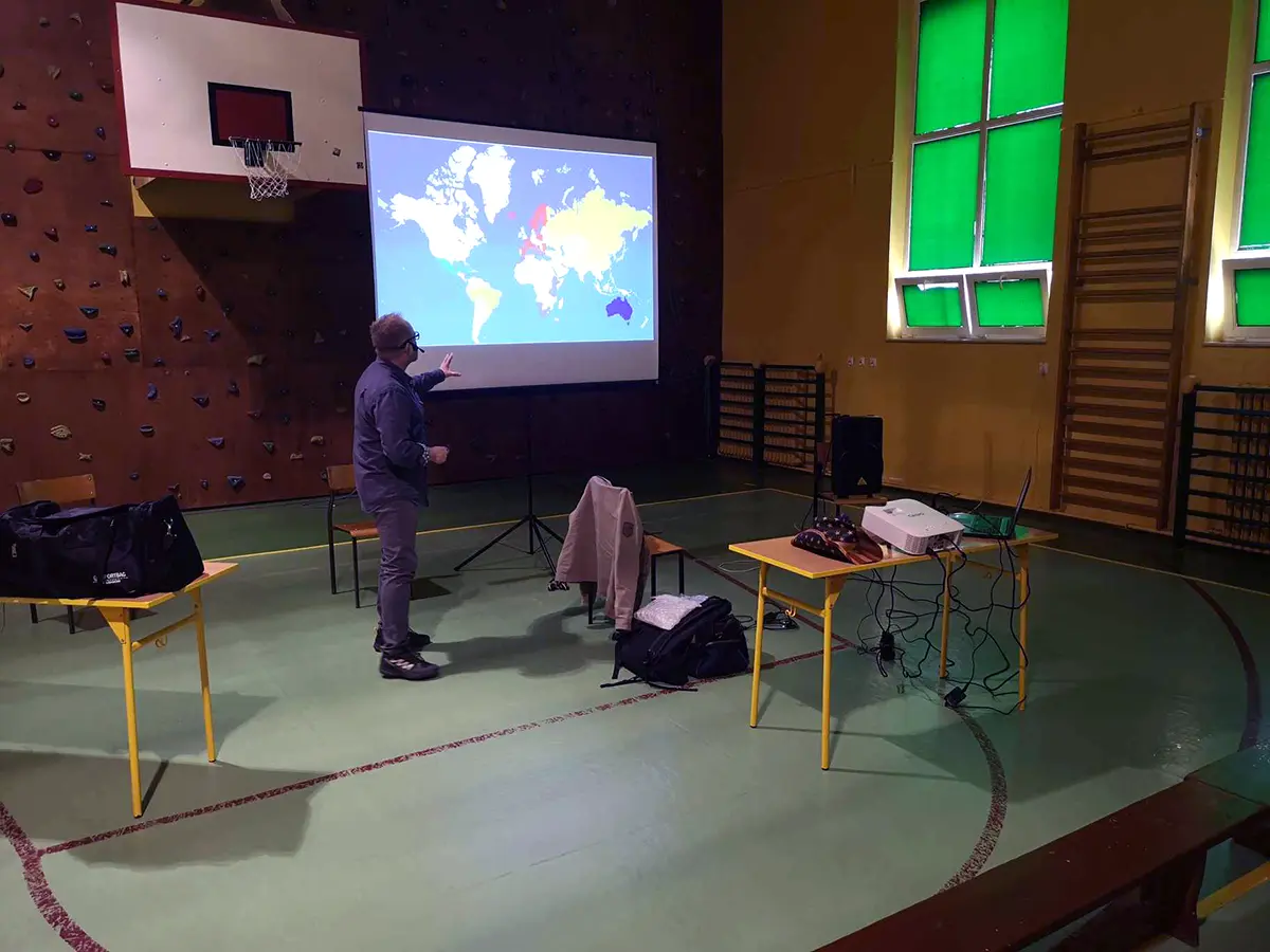 8 listopada drugoklasiści wybrali się w niesamowitą podróż na Zachodnie Wybrzeże USA. Tego dnia odwiedził podróżnik Maciej Kras z firmy trzask.pl. Podczas półtoragodzinnego spotkania uczniowie mieli okazję wysłuchać wciągającej prelekcji.