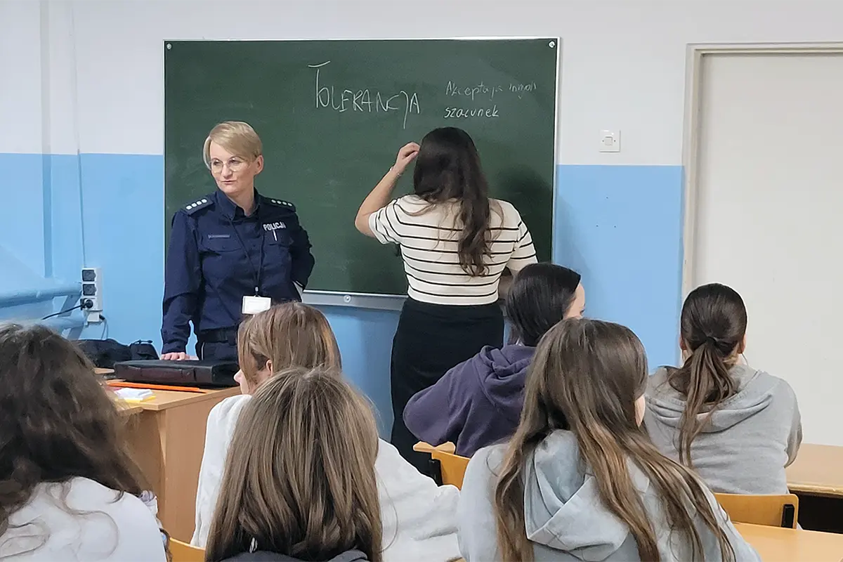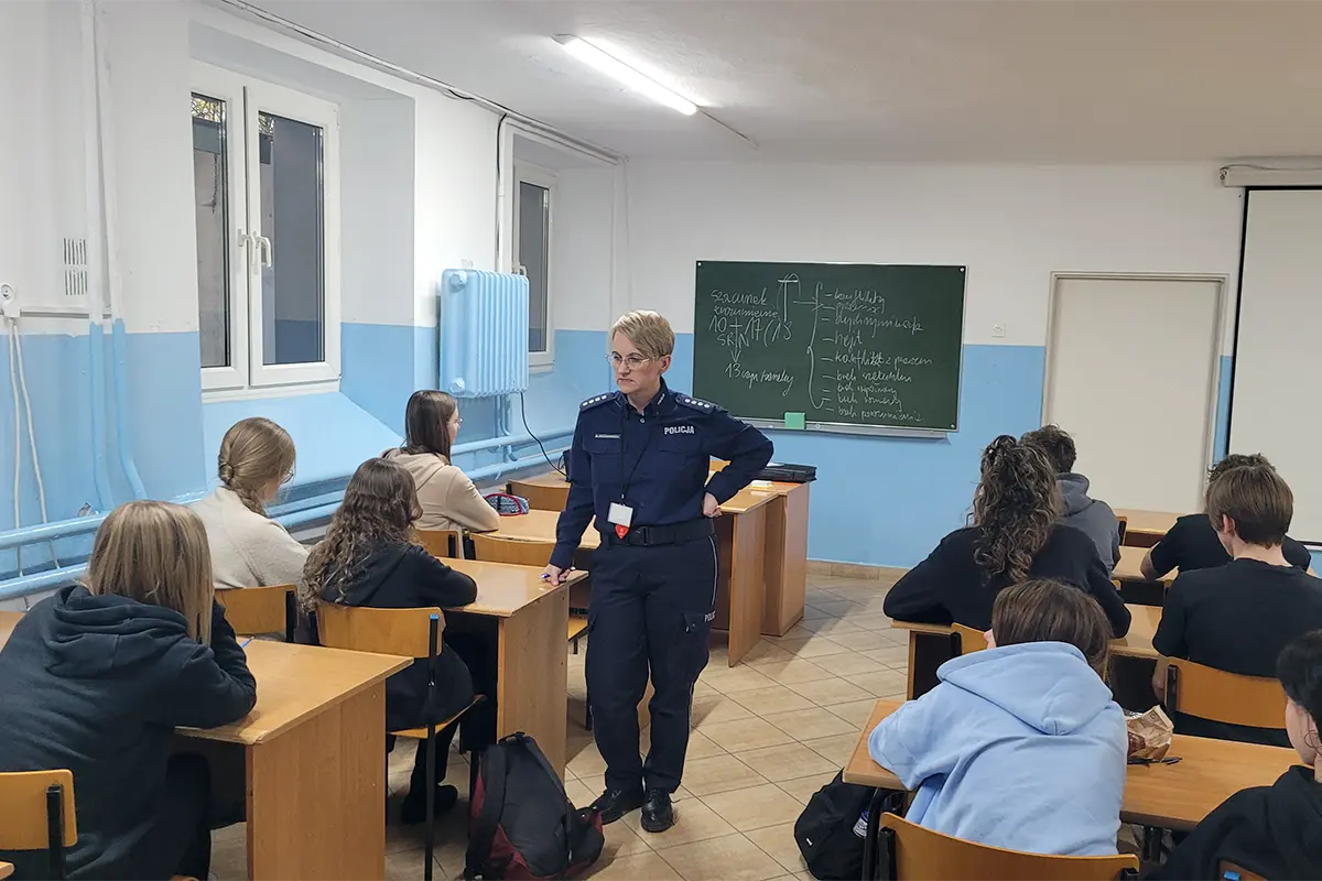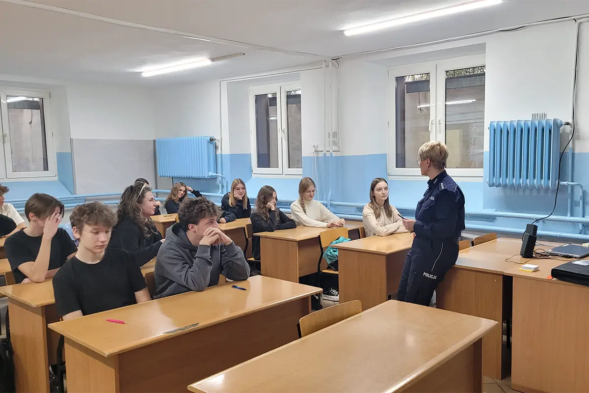 17 listopada zakończył się w klasach pierwszych cykl spotkań z nadkomisarz Magdaleną Szczepanowską. Zajęcia dotyczyły odpowiedzialności prawnej nieletnich i miały na celu zapoznać naszych uczniów z ochroną osób małoletnich, pokrzywdzonych, dotkniętych przemocą rówieśniczą.