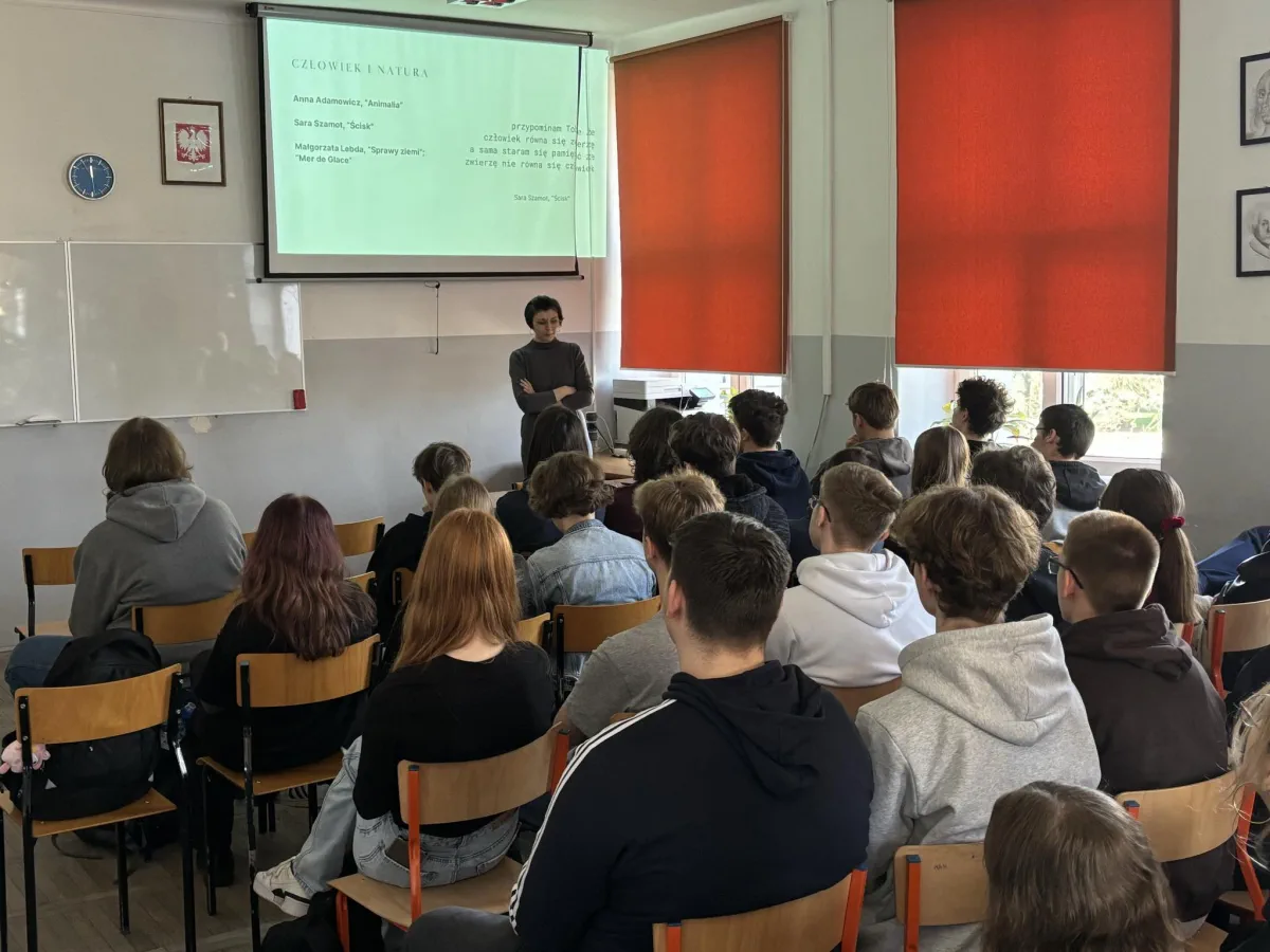 Z tej okazji nauczyciele języka polskiego p. J. Kupa i p. A. Grzesiuk zorganizowali spotkanie poetki Sary Akram z uczniami naszej szkoły. Sara przybliżyła licealistom istotę poezji współczesnej, omówiła tematy, wokół których tworzone są obecnie utwory literackie, przedstawiła sylwetki innych współczesnych poetów, oraz wydarzenia literackie związane z lubelską poezją. Uczniowie mogli także zapoznać się z konkursami literackimi organizowanymi w całym kraju oraz w Lublinie. Poetka zachęcała zebranych, aby nie bali się prezentować swojej twórczości.