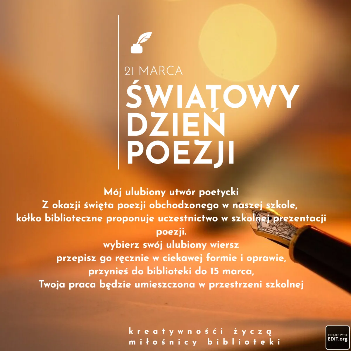 Światowy Dzień Poezji jest świętem obchodzonym 21 marca od 1999 roku. Jego celem jest promocja czytania, pisania, publikowania i nauczania poezji na całym świecie.