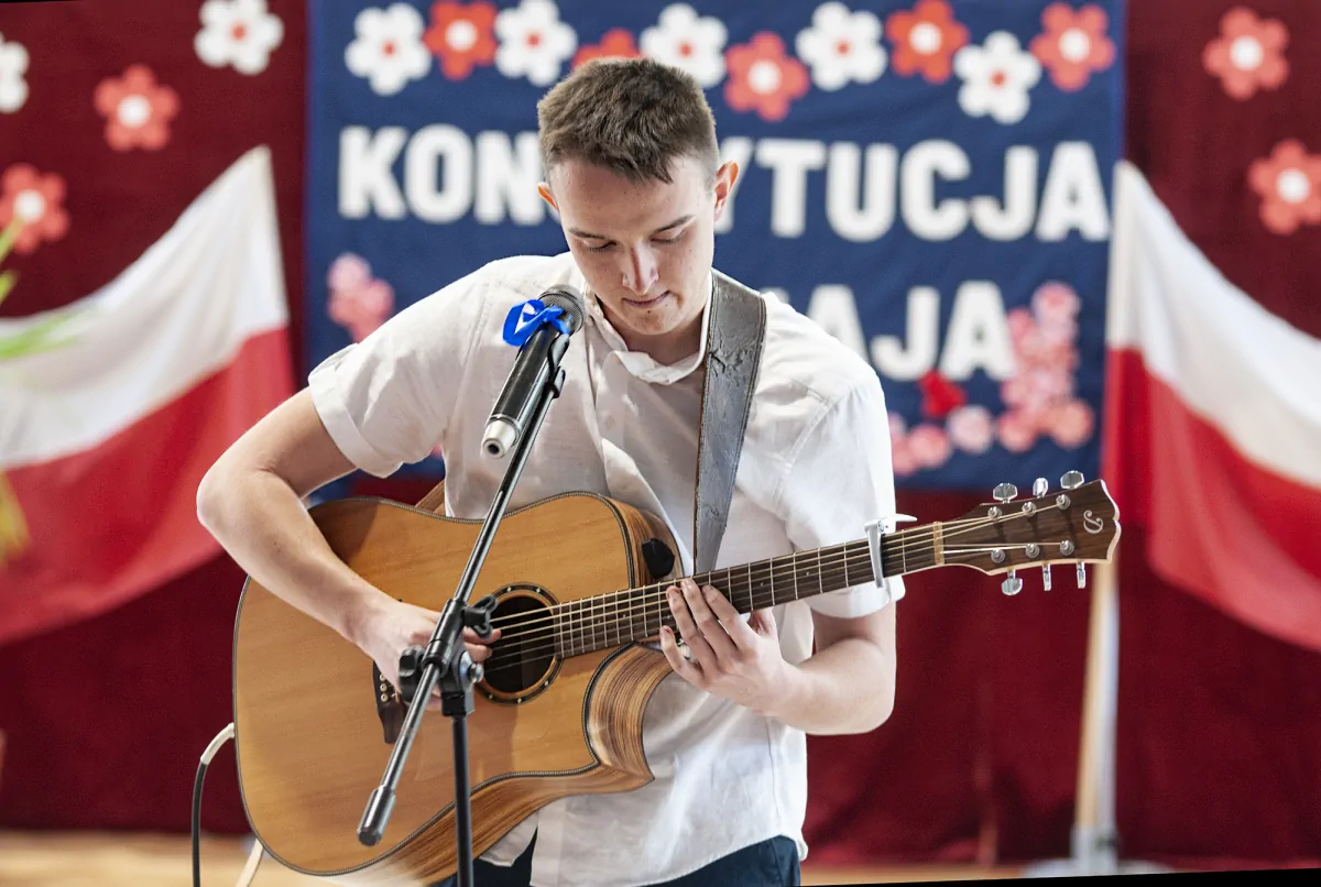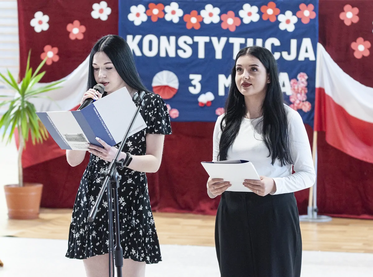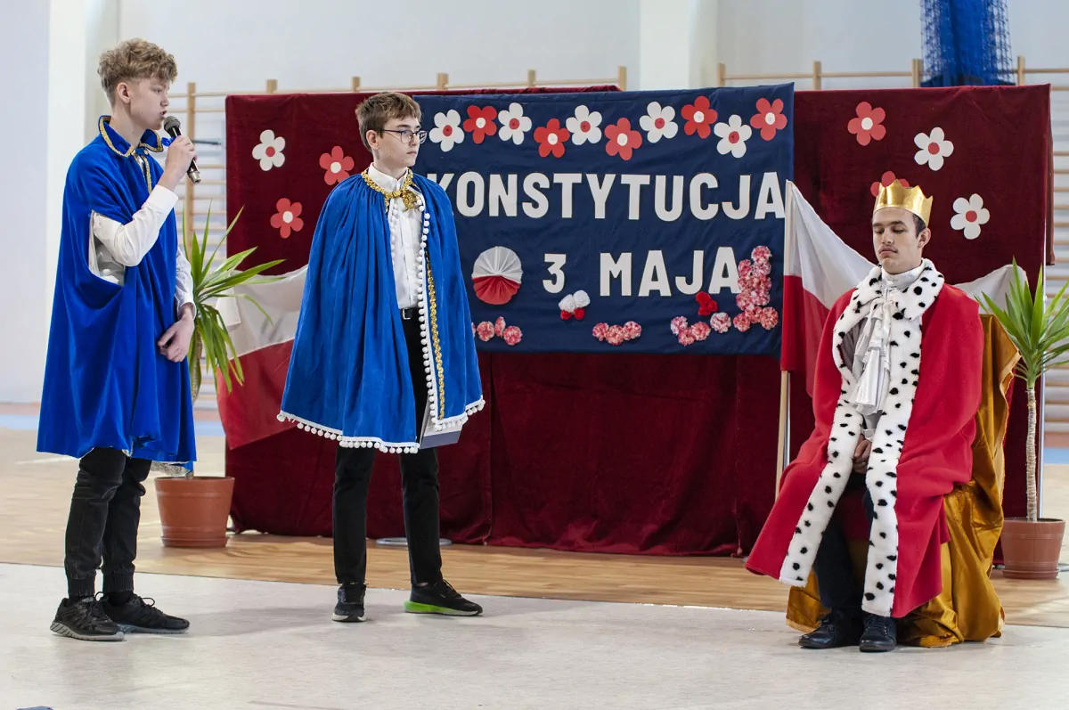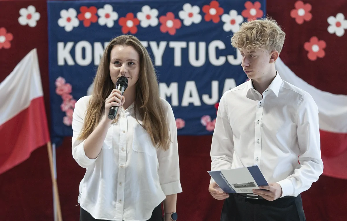 W ostatnim dniu przed długim weekendem społeczność I Liceum uczciła kolejną rocznicę uchwalenia Konstytucji 3 Maja. Z tej okazji młodzież przygotowała inscenizację sejmiku uczniowskiego, w którym wybrzmiały najważniejsze fakty z historii Polski, a także utwory poetyckie podkreślające rangę wolności. Uroczystość swoim występem uświetnili Krzysztof Michałek i Szymon Bożek.