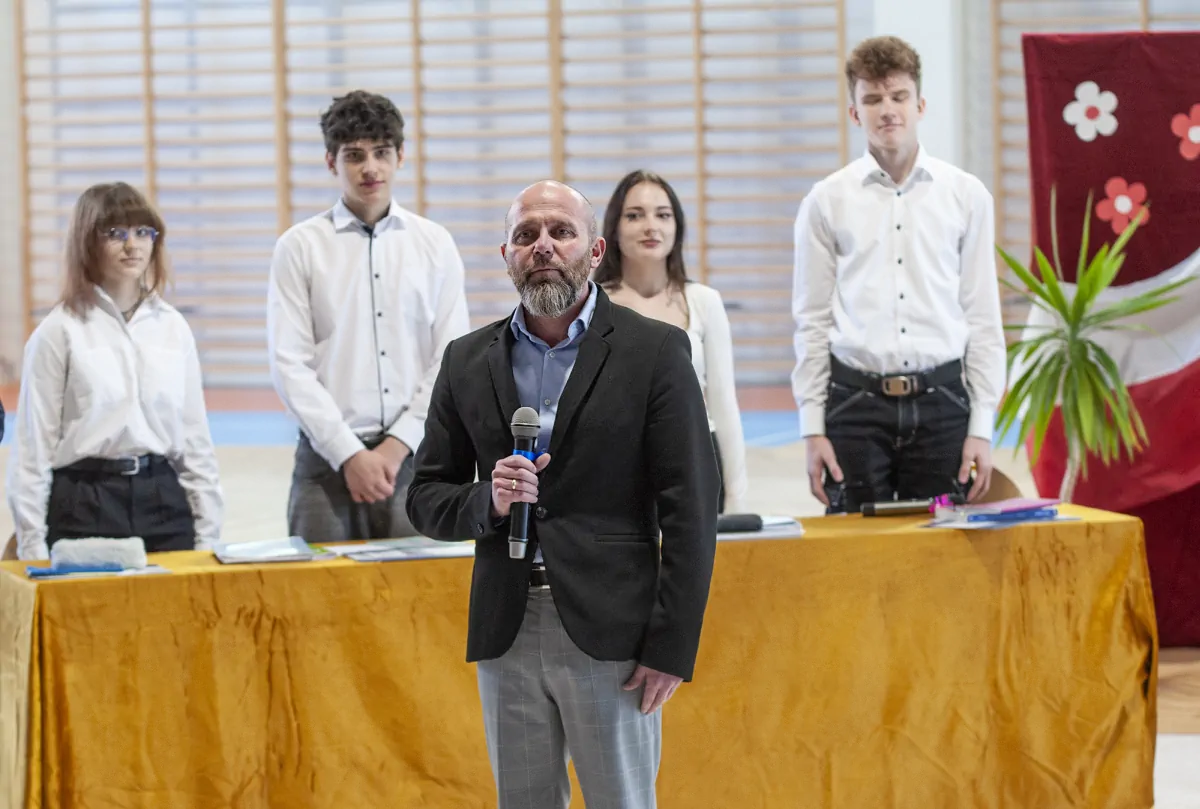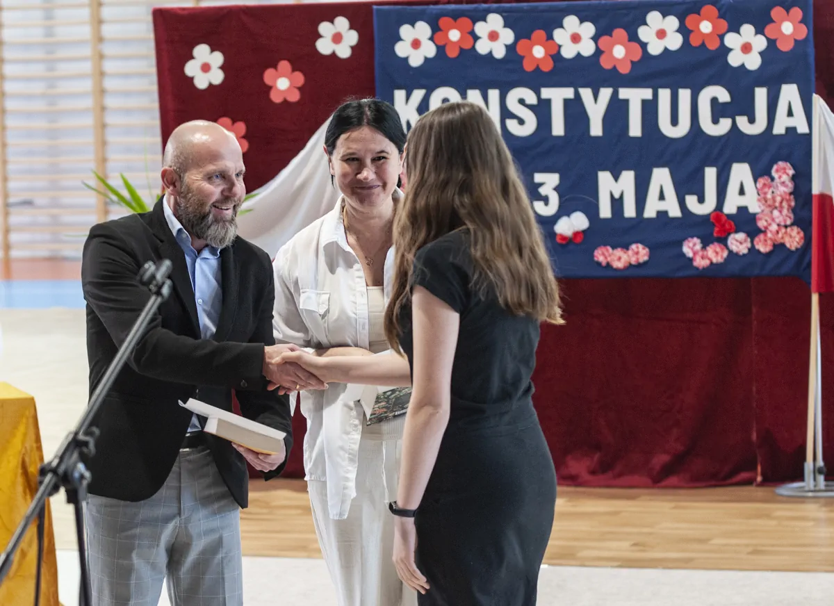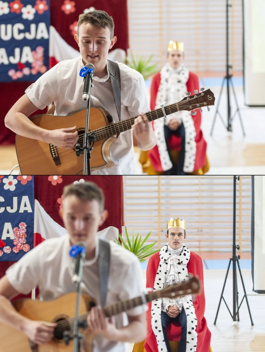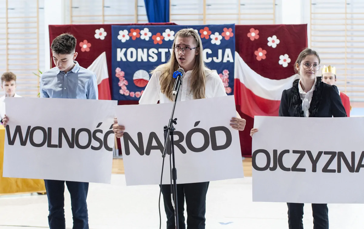 W ostatnim dniu przed długim weekendem społeczność I Liceum uczciła kolejną rocznicę uchwalenia Konstytucji 3 Maja. Z tej okazji młodzież przygotowała inscenizację sejmiku uczniowskiego, w którym wybrzmiały najważniejsze fakty z historii Polski, a także utwory poetyckie podkreślające rangę wolności. Uroczystość swoim występem uświetnili Krzysztof Michałek i Szymon Bożek.