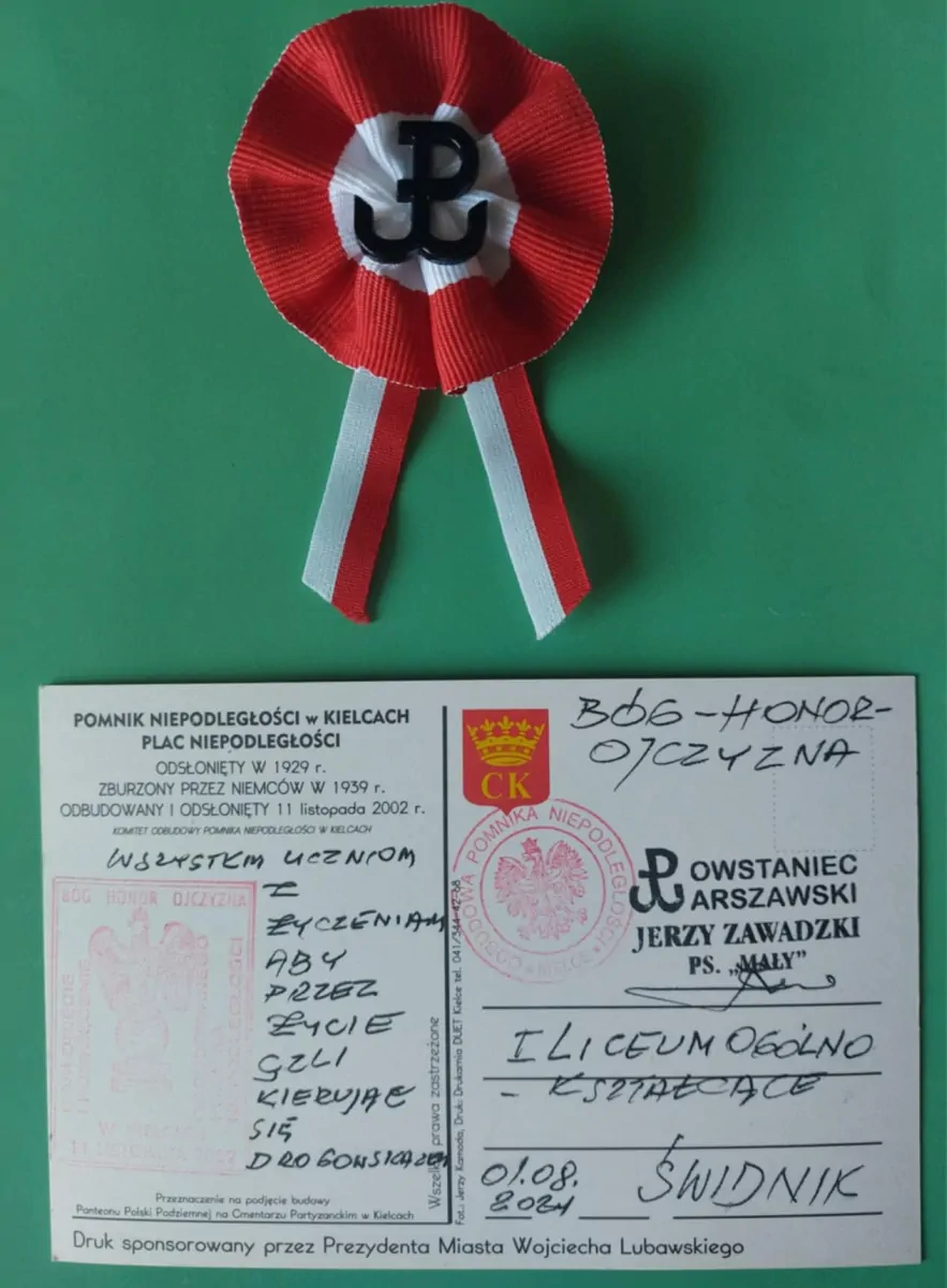 Uczniowie oglądali także zdjęcia z prywatnego archiwum rodzinnego oraz fotografie powstańcze. Pan Zawadzki przedstawił pełne emocji i wzruszeń osobiste przeżycia, losy najbliższej rodziny, sąsiadów i kolegów. Przekazał pozdrowienia i życzenia dla uczniów I LO, '"aby przez życie szli kierując się drogowskazami". Dla wszystkich będzie to niazapomniana żywa lekcja historii i patriotyzmu.