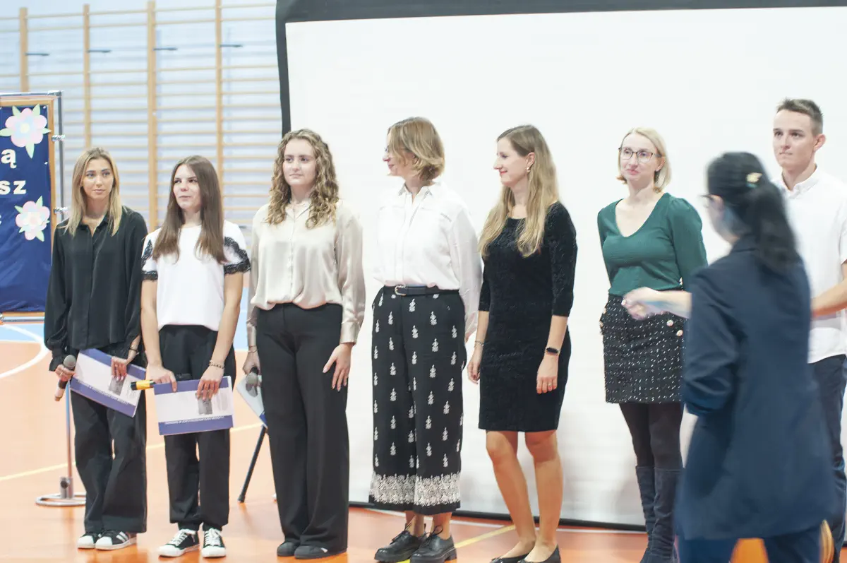 Z okazji Dnia Nauczyciela pragniemy wyrazić naszą wdzięczność nauczycielom języka polskiego: pani Anecie Jagieła, pani Dorocie Jaśkowskiej, pani Julii Kupie, panu Łukaszowi Maciągowi i panu Adrianowi Grzesiukowi. Za Państwa niestrudzoną pracę, cierpliwość i pasję, którą zarażacie nas na lekcjach języka polskiego. Dzięki Wam odkrywamy piękno literatury, uczymy się wyrażać myśli i zgłębiać świat języka. Dziękujemy za każdy omawiany wiersz, każdą dyskusję o literaturze i za to, że nieustannie inspirujecie nas Państwo do rozwijania swoich umiejętności. Dziękujemy za inspirujące rozmowy, które skłaniają nas do refleksji, oraz za motywowanie nas do sięgania po książki i odkrywania nowych światów.