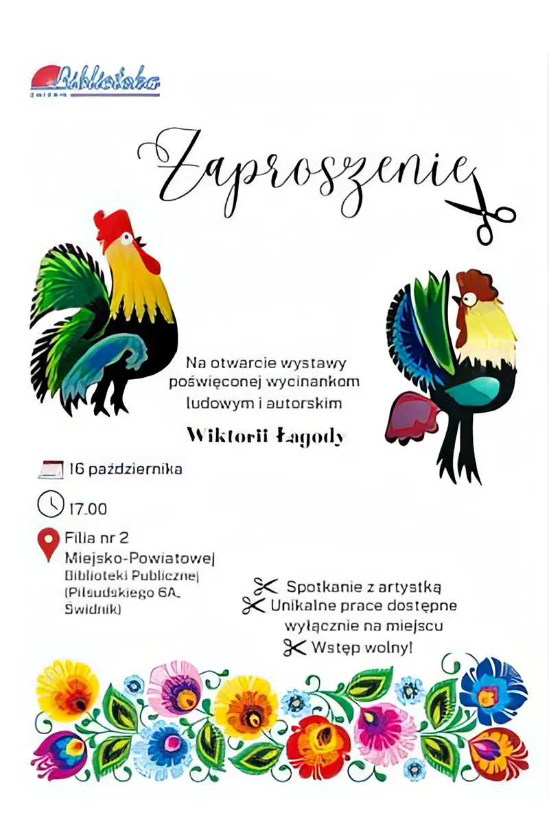 Miniona środa była dla naszej uczennicy Wiktorii Łagody pamiętnym dniem, bowiem w Filii nr 2 Miejsko-Powiatowej Biblioteki Publicznej otworzyła swoją wystawę wycinanek.